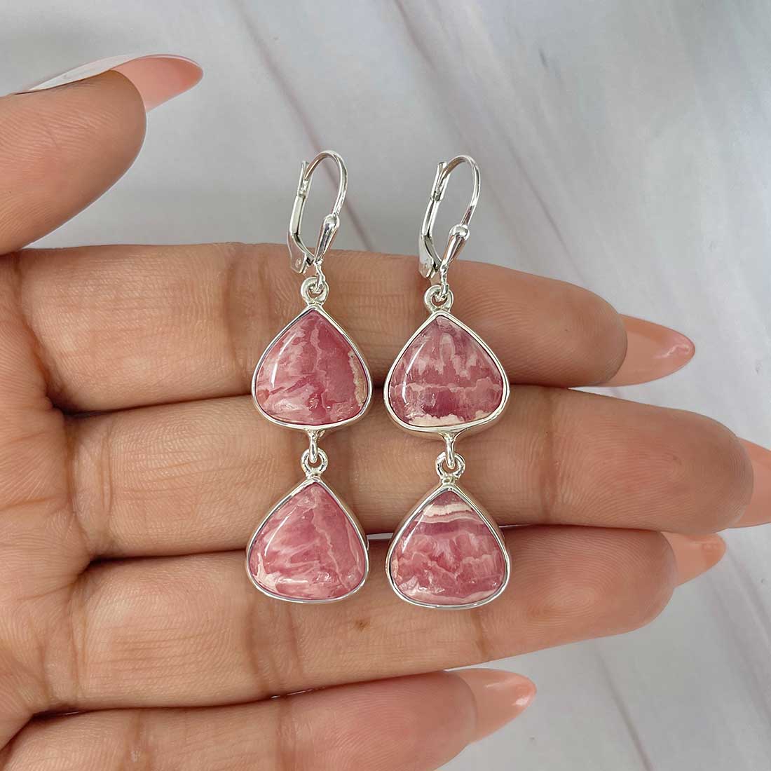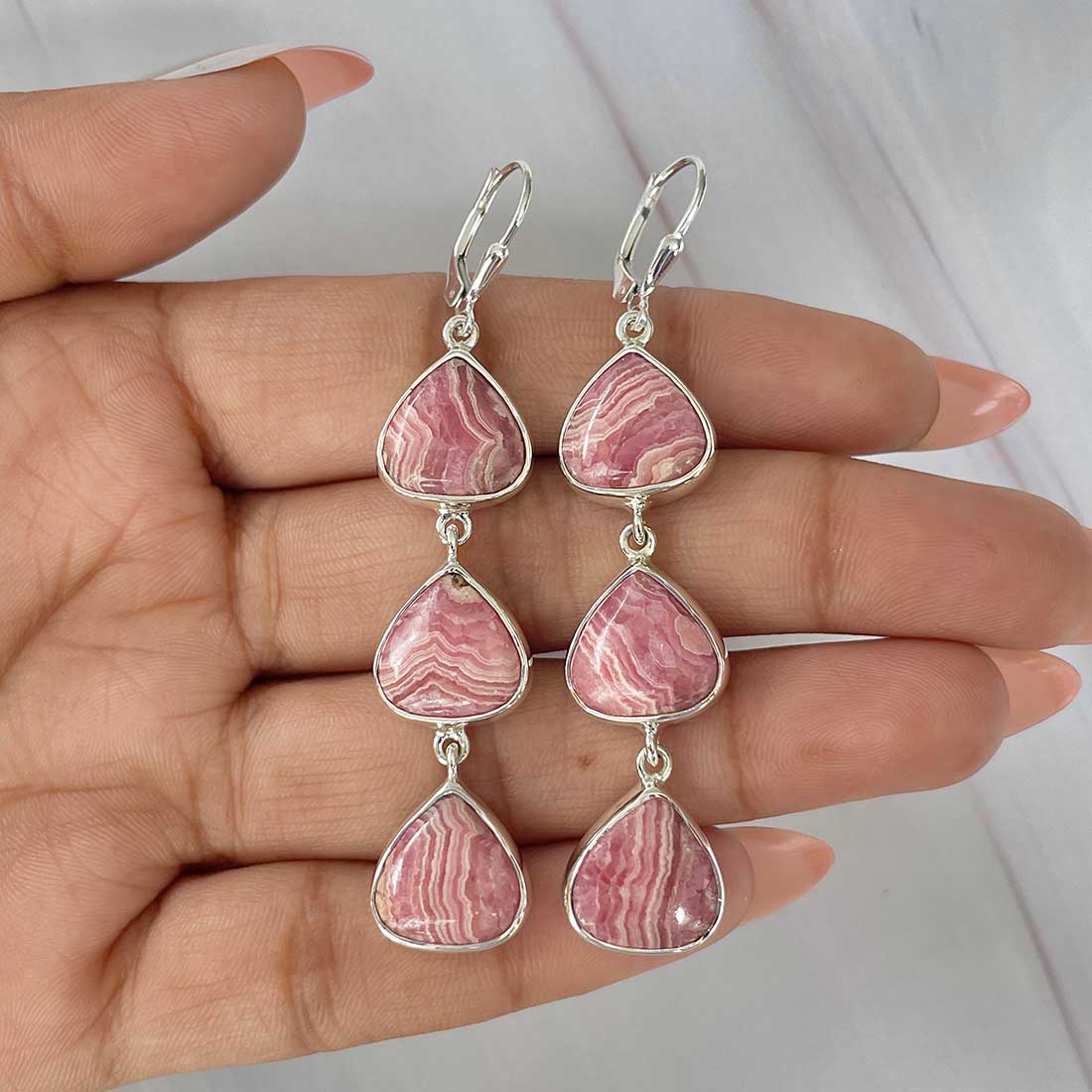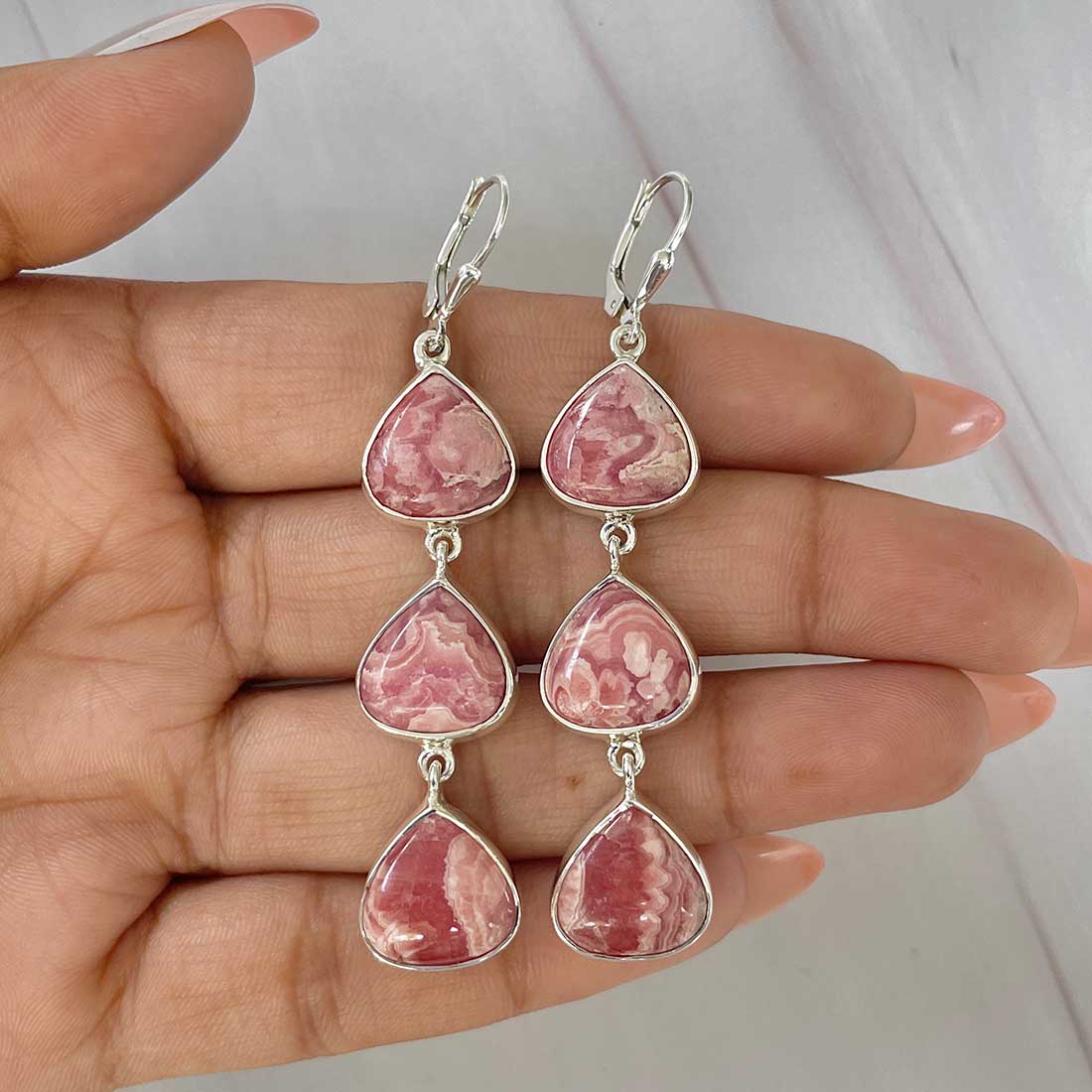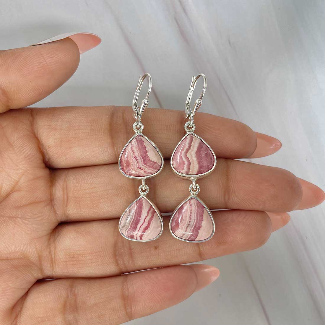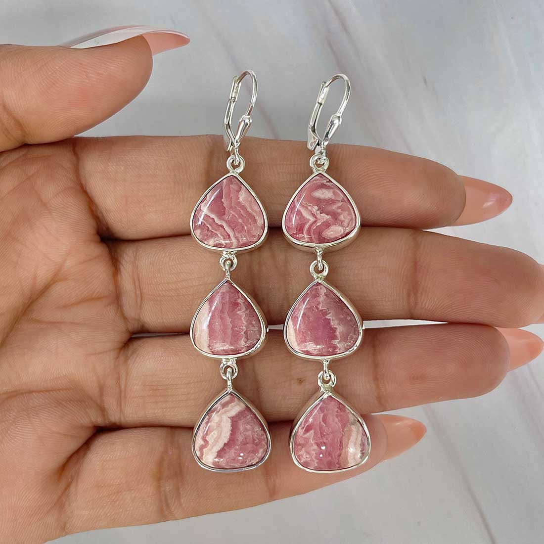 There are lots of interesting and fashionable ways to wear Rhodochrosite jewelry. Wear your spectacular statement Rhodochrosite earrings with complementary or opposing clothing for a distinctive and stylish look. Keep the rest of your ensemble modest and monochrome to allow the gentle pink tones of the Rhodochrosite gemstones to shine out. Wear a statement Rhodochrosite ring with flowing, earthy-toned clothing and organic textures to embrace a boho look. Styling a Rhodochrosite bracelet with formal outfits is a great idea to slay your board meetings elegantly. You can pair it with a tuxedo or plan blazer and trousers. If you are going for a staycation, register your presence with a Rhodochrosite pendant. You can go for a stackable look by teaming it with dainty silver or gold chains.