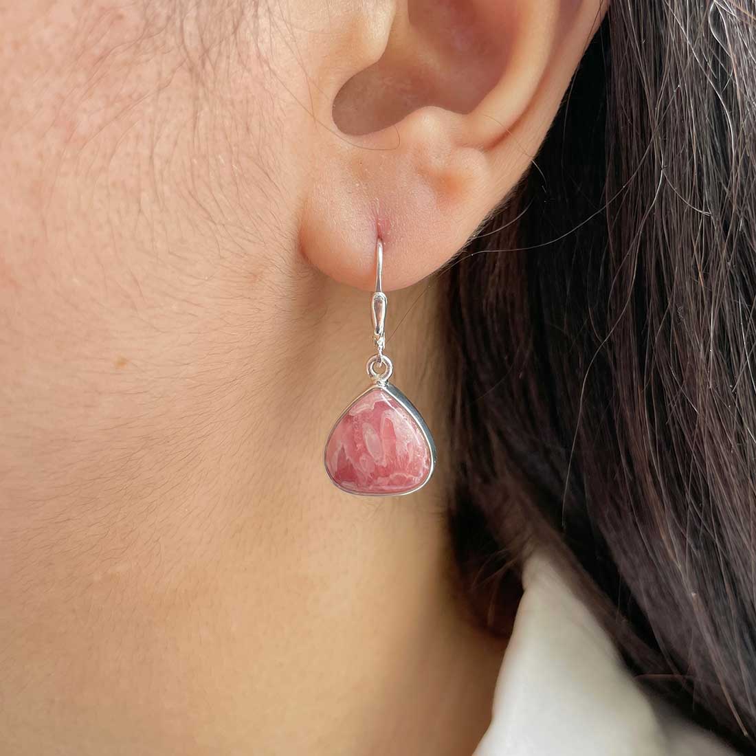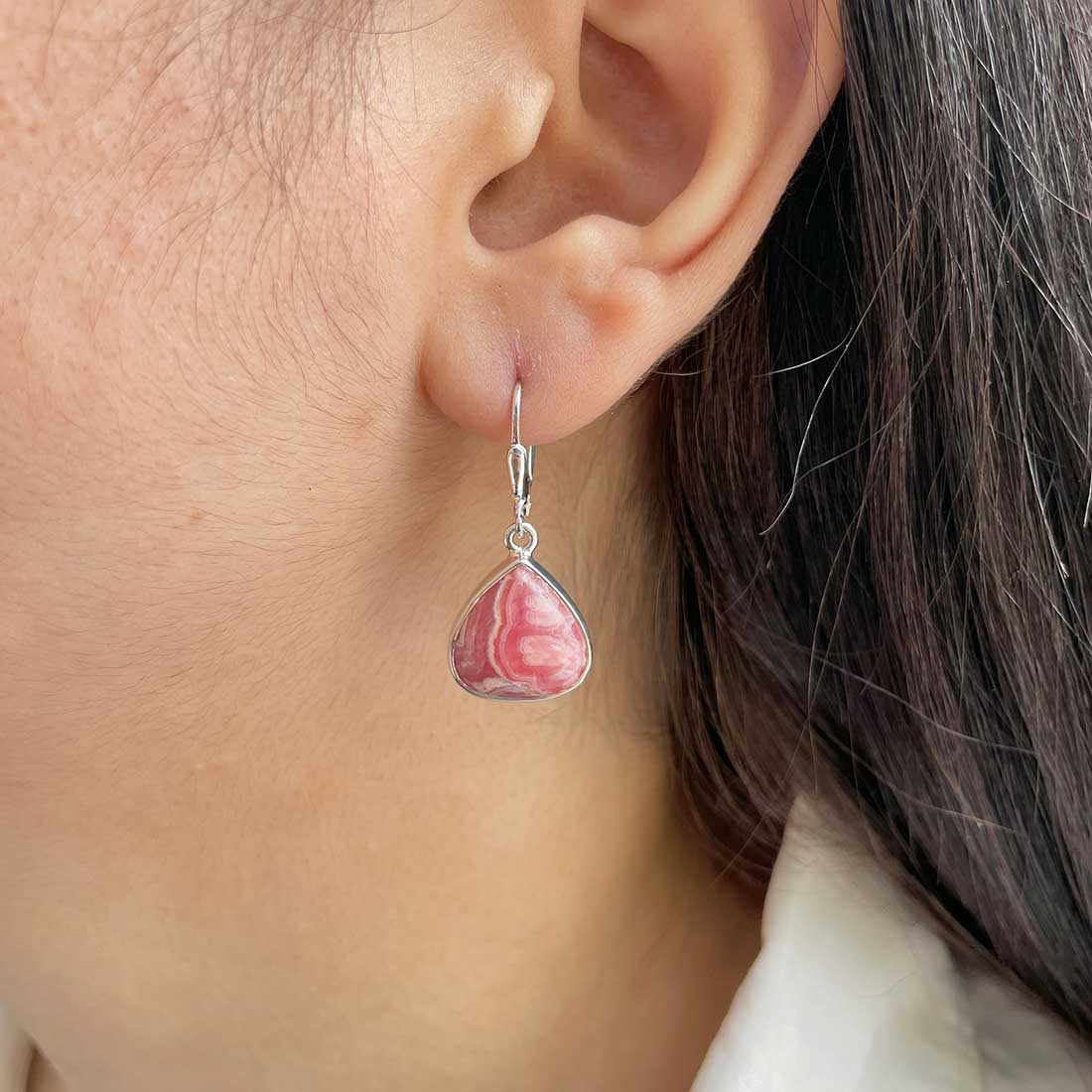 There are lots of interesting and fashionable ways to wear Rhodochrosite jewelry. Wear your spectacular statement Rhodochrosite earrings with complementary or opposing clothing for a distinctive and stylish look. Keep the rest of your ensemble modest and monochrome to allow the gentle pink tones of the Rhodochrosite gemstones to shine out. Wear a statement Rhodochrosite ring with flowing, earthy-toned clothing and organic textures to embrace a boho look. Styling a  Rhodochrosite bracelet with formal outfits is a great idea to slay your board meetings elegantly. You can pair it with a tuxedo or plan blazer and trousers. If you are going for a staycation, register your presence with a Rhodochrosite pendant. You can go for a stackable look by teaming it with dainty silver or gold chains.