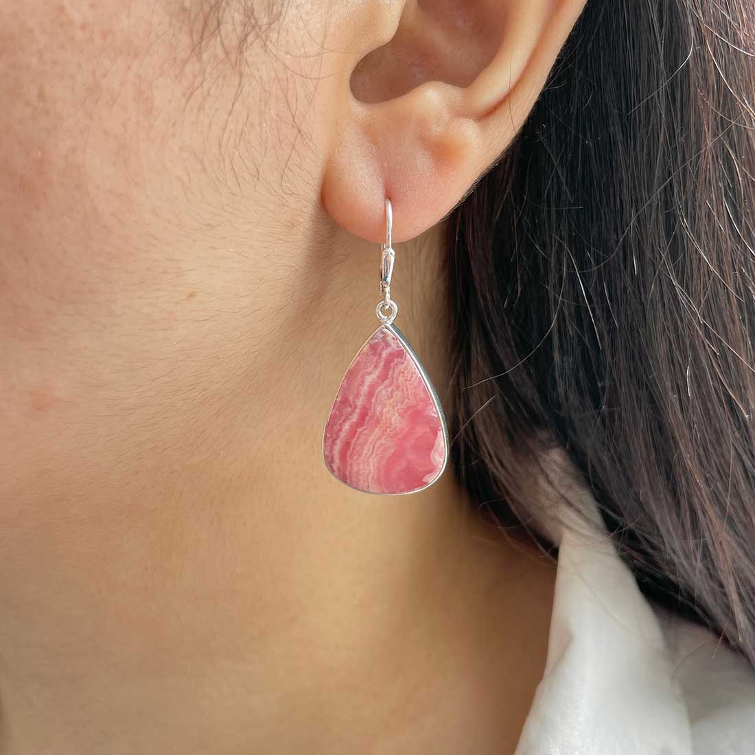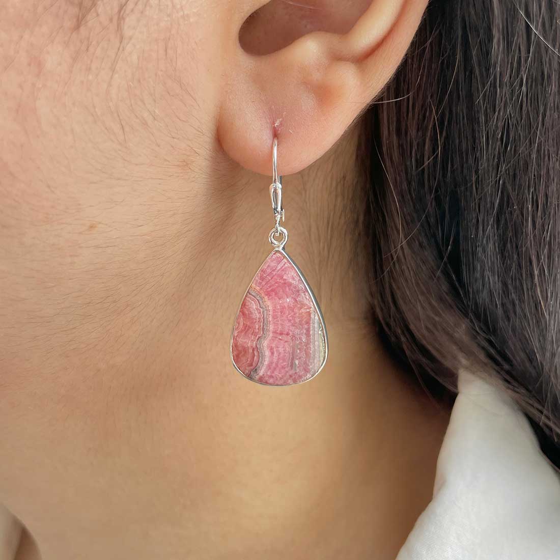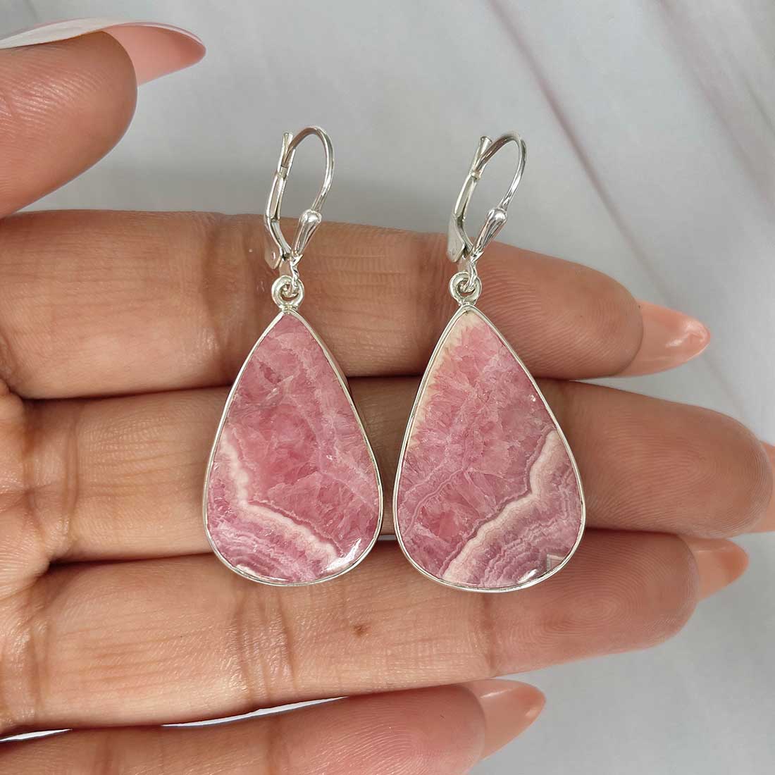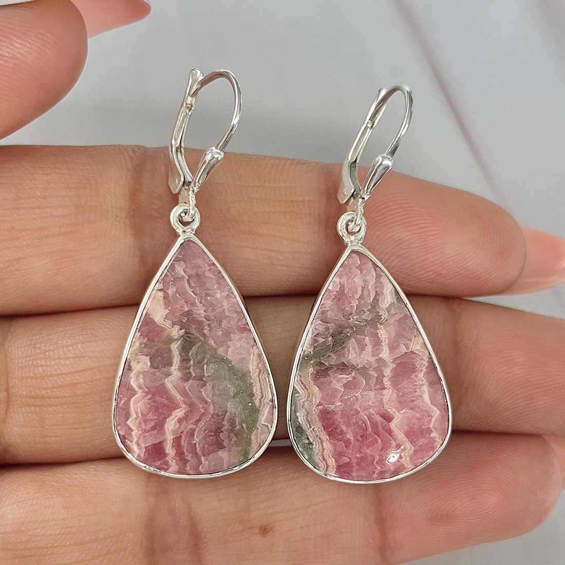 There are lots of interesting and fashionable ways to wear Rhodochrosite jewelry. Wear your spectacular statement Rhodochrosite earrings with complementary or opposing clothing for a distinctive and stylish look. Keep the rest of your ensemble modest and monochrome to allow the gentle pink tones of the Rhodochrosite gemstones to shine out. Wear a statement Rhodochrosite ring with flowing, earthy-toned clothing and organic textures to embrace a boho look. Styling a  Rhodochrosite bracelet with formal outfits is a great idea to slay your board meetings elegantly. You can pair it with a tuxedo or plan blazer and trousers. If you are going for a staycation, register your presence with a Rhodochrosite pendant. You can go for a stackable look by teaming it with dainty silver or gold chains.