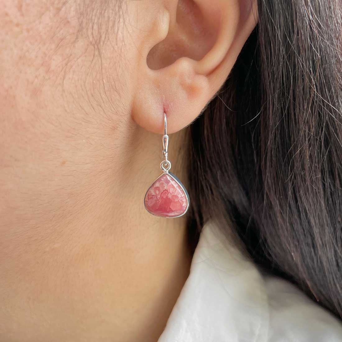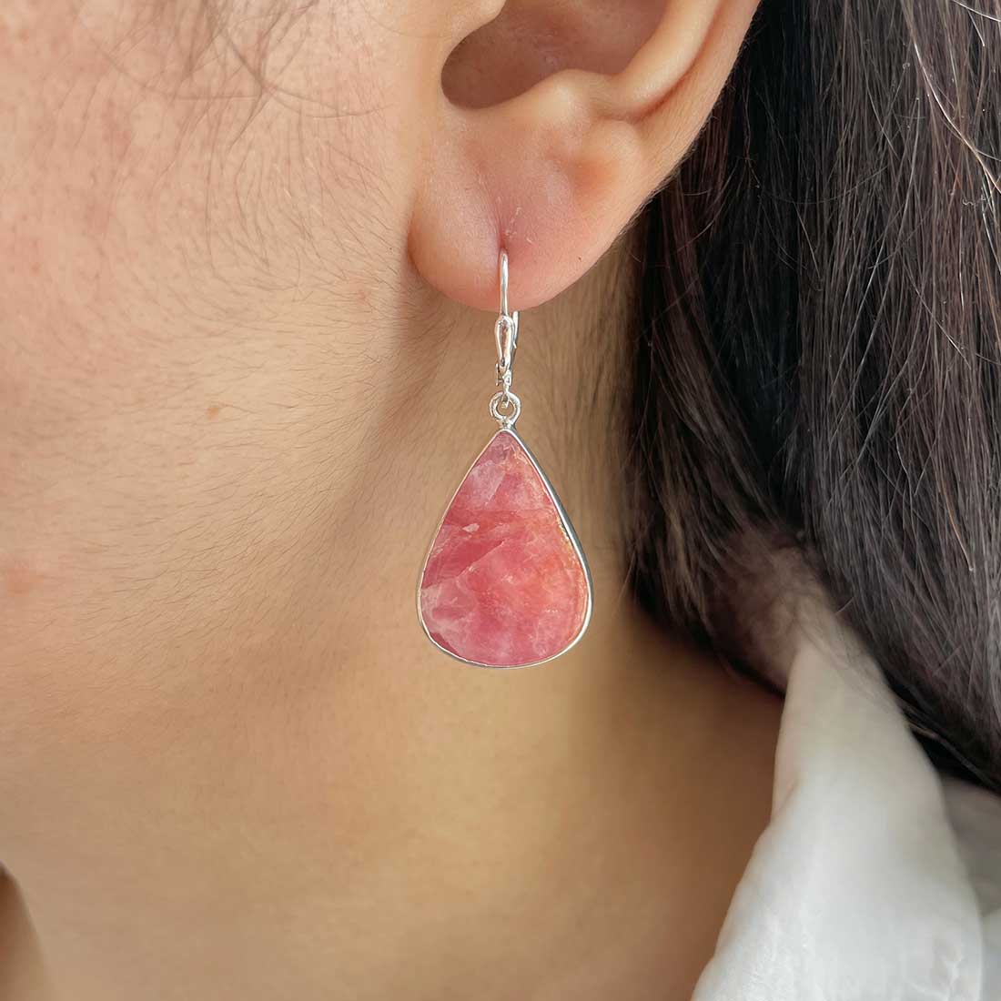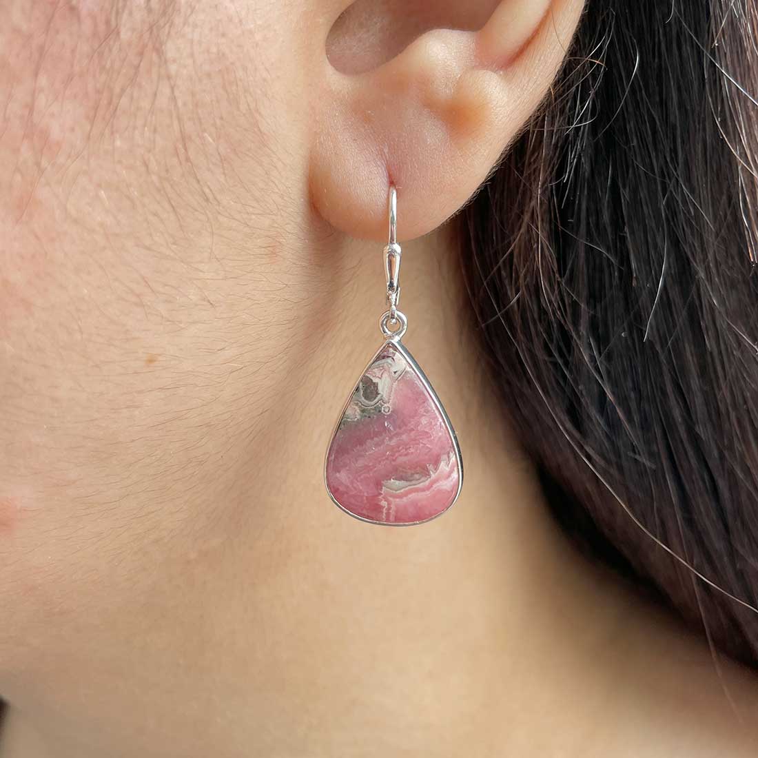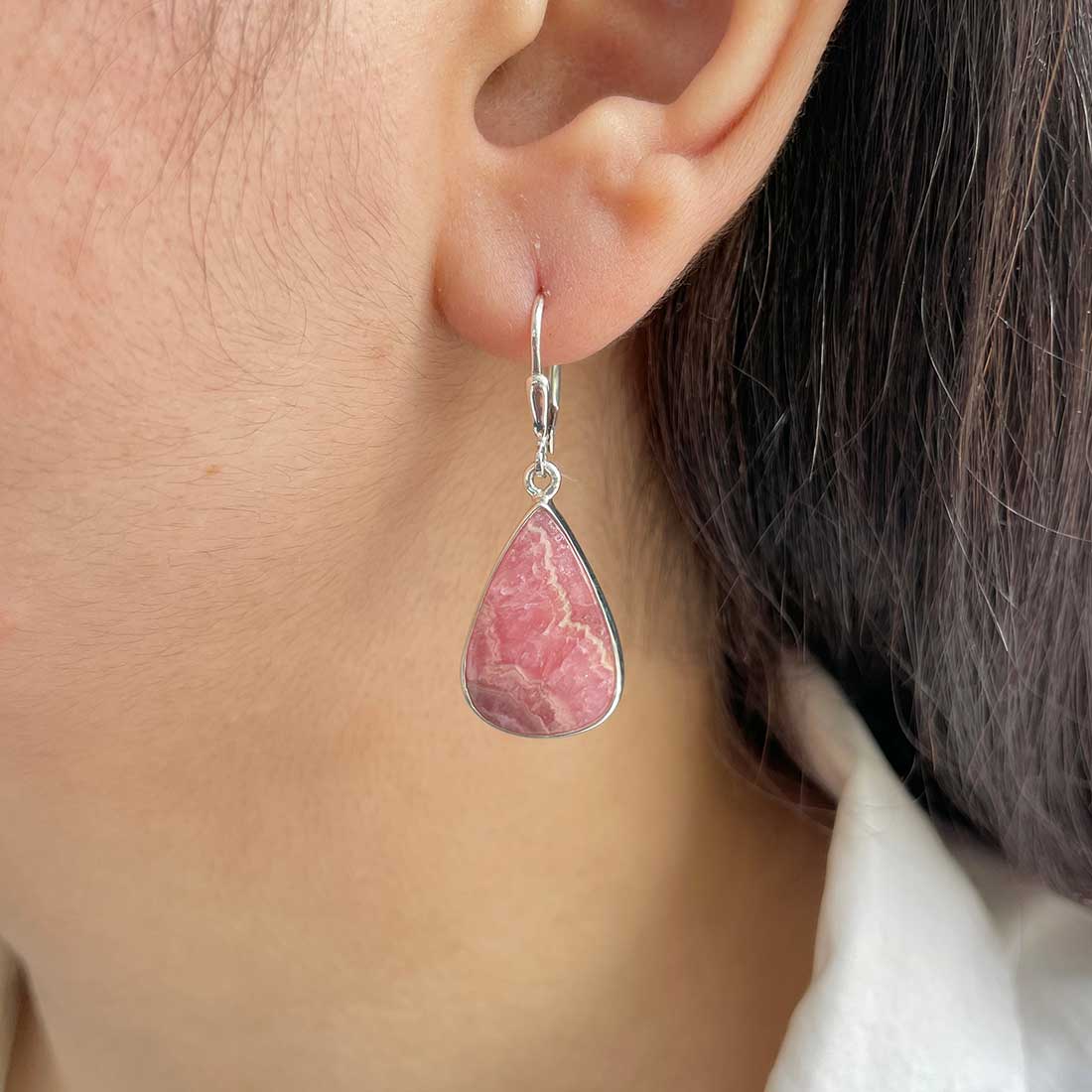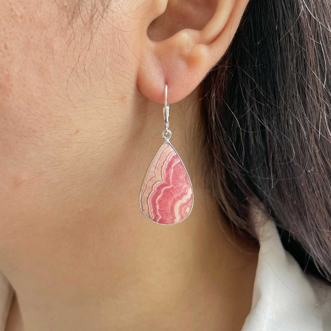 There are lots of interesting and fashionable ways to wear Rhodochrosite jewelry. Wear your spectacular statement Rhodochrosite earrings with complementary or opposing clothing for a distinctive and stylish look. Keep the rest of your ensemble modest and monochrome to allow the gentle pink tones of the Rhodochrosite gemstones to shine out. Wear a statement Rhodochrosite ring with flowing, earthy-toned clothing and organic textures to embrace a boho look. Styling a  Rhodochrosite bracelet with formal outfits is a great idea to slay your board meetings elegantly. You can pair it with a tuxedo or plan blazer and trousers. If you are going for a staycation, register your presence with a Rhodochrosite pendant. You can go for a stackable look by teaming it with dainty silver or gold chains.