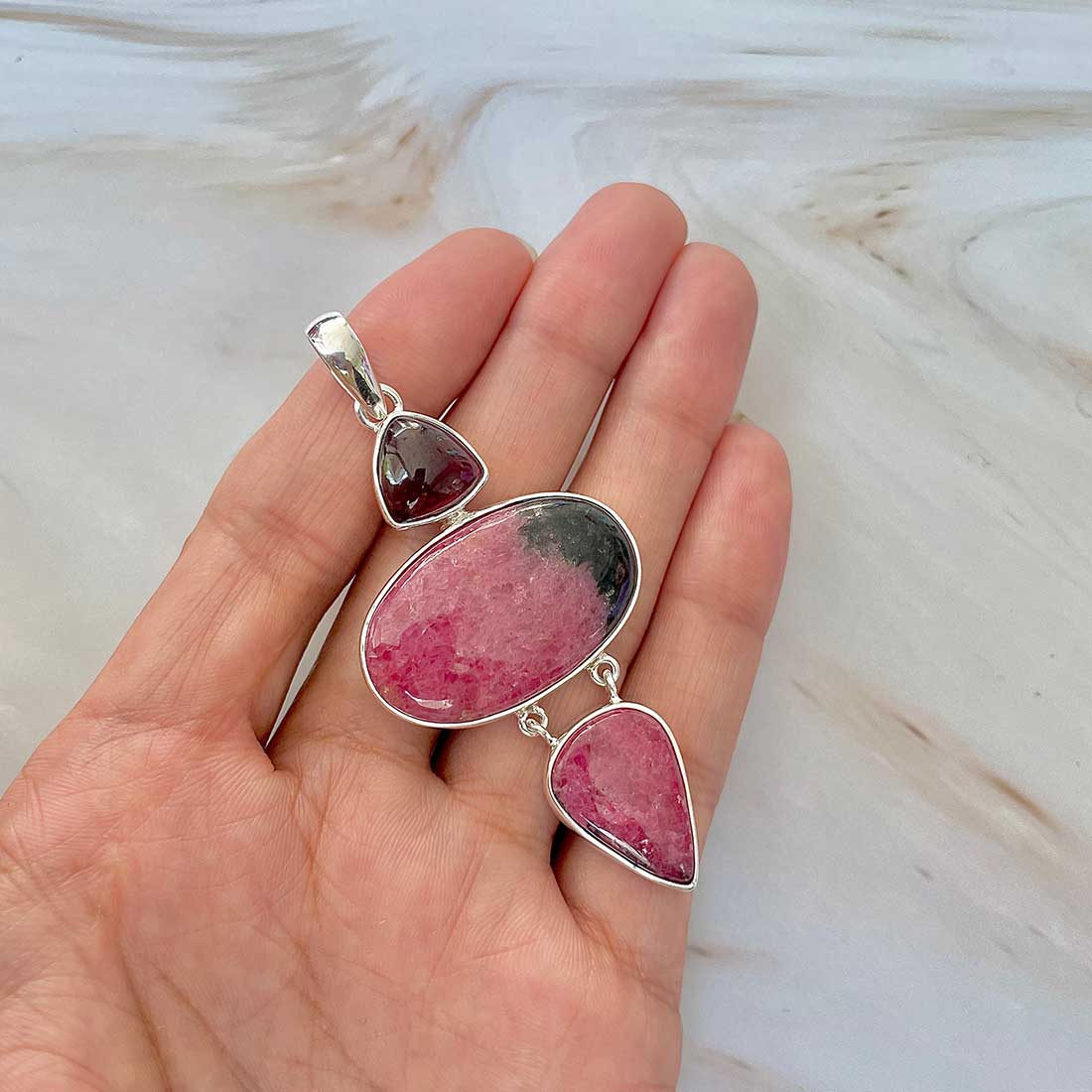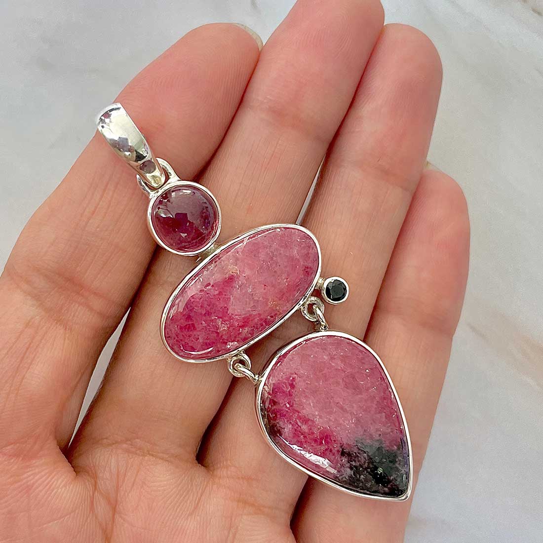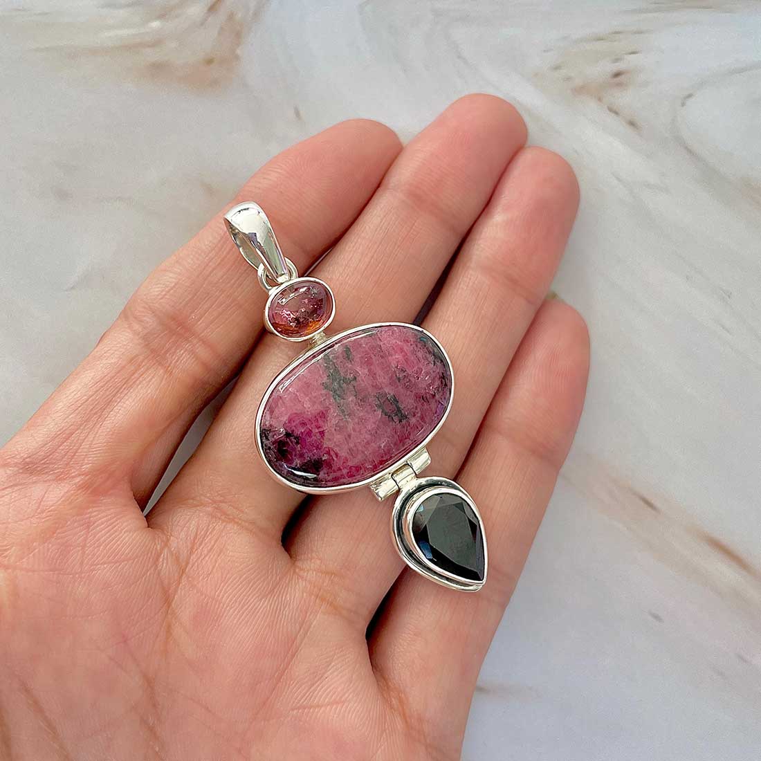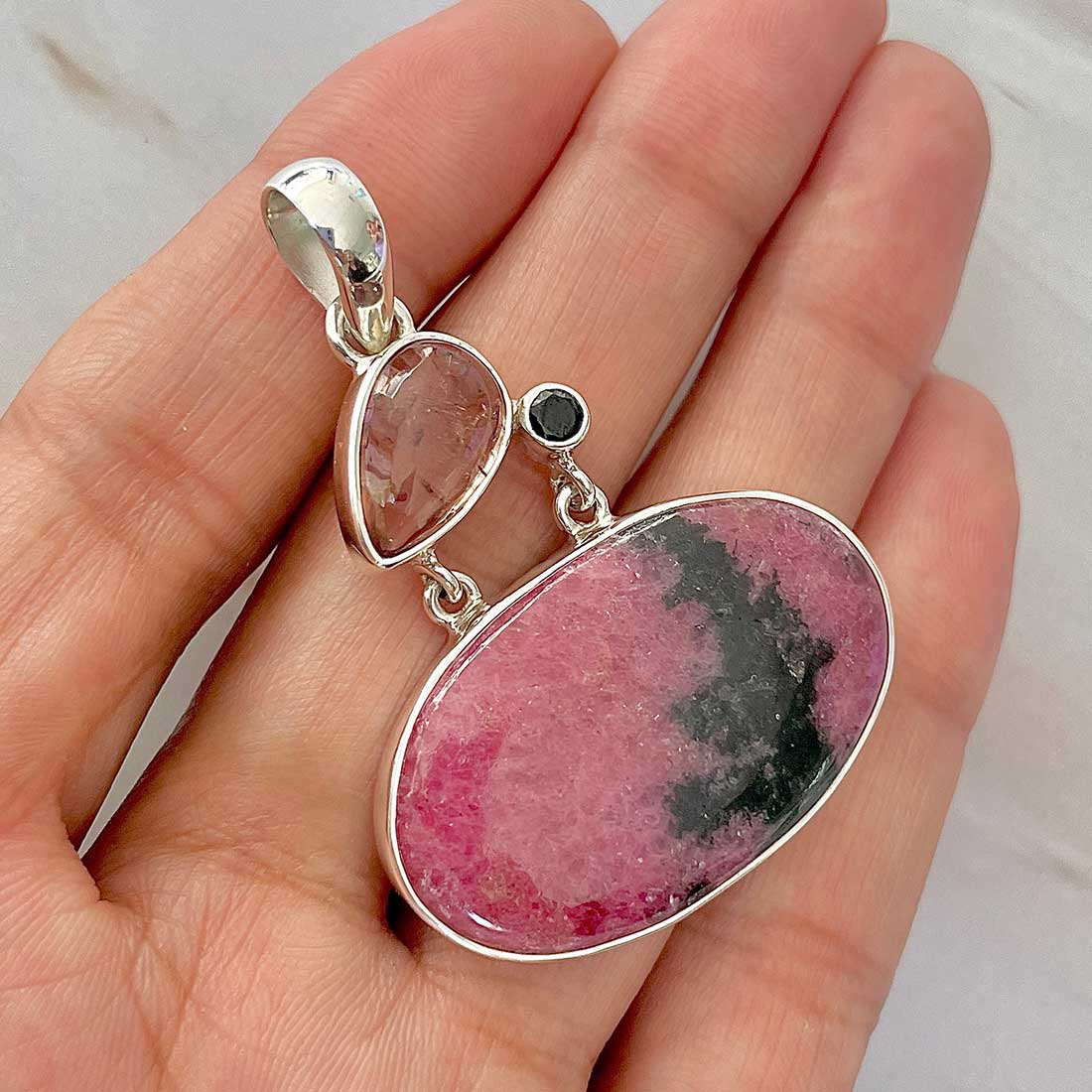 Why not use the alluring elegance of Rhodonite jewelry to boost your look? For a distinctive and earthy style, use a statement Rhodonite pendant with other gemstone necklaces to embrace a bohemian attitude. Invest in a statement Rhodonite ring to accentuate your hands and add a splash of color to your ensemble. Put on a pair of Rhodonite earrings for a more understated way to elevate your wardrobe. To create a customized and layered effect, try mixing and combining Rhodonite ring. Rhodonite jewelry can seamlessly match your style and add a touch of natural beauty to any ensemble, whether you are striving for a dramatic or simple appearance.