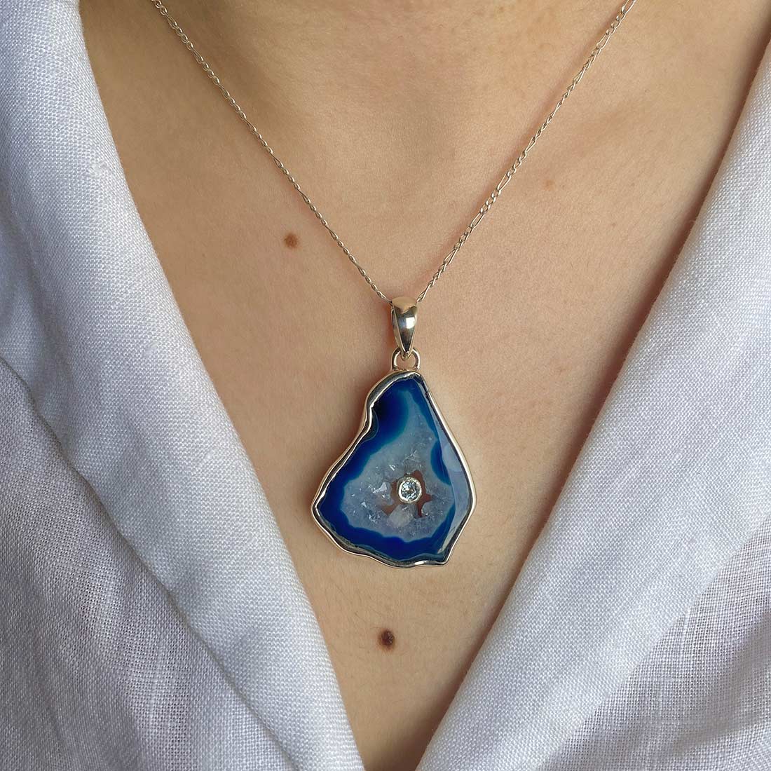 We know what you are worried about, that your special day is about to come, and you still don’t have any clue how you will make your special day the best. Don't worry; we, Sagacia Jewelry, are present to celebrate your special day with our most astonishing collection of blue agate jewelry more prominently, the statement blue agate pendant. The mesmerizing gemstone blue agate is not the one that is appreciated only for its aesthetic beauty but also for its symbolic meaning, dense history, and potent healing properties. So, to know more about this beautiful crystal let’s continue your journey with us.