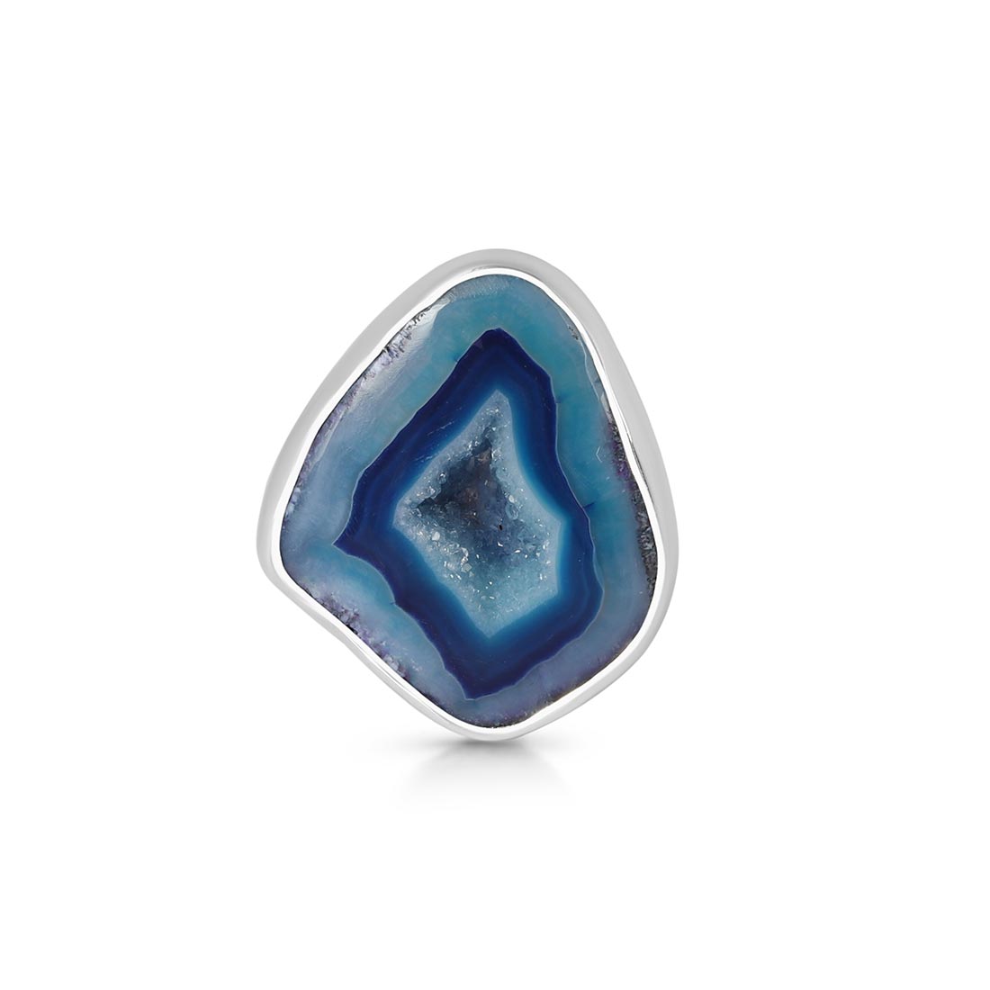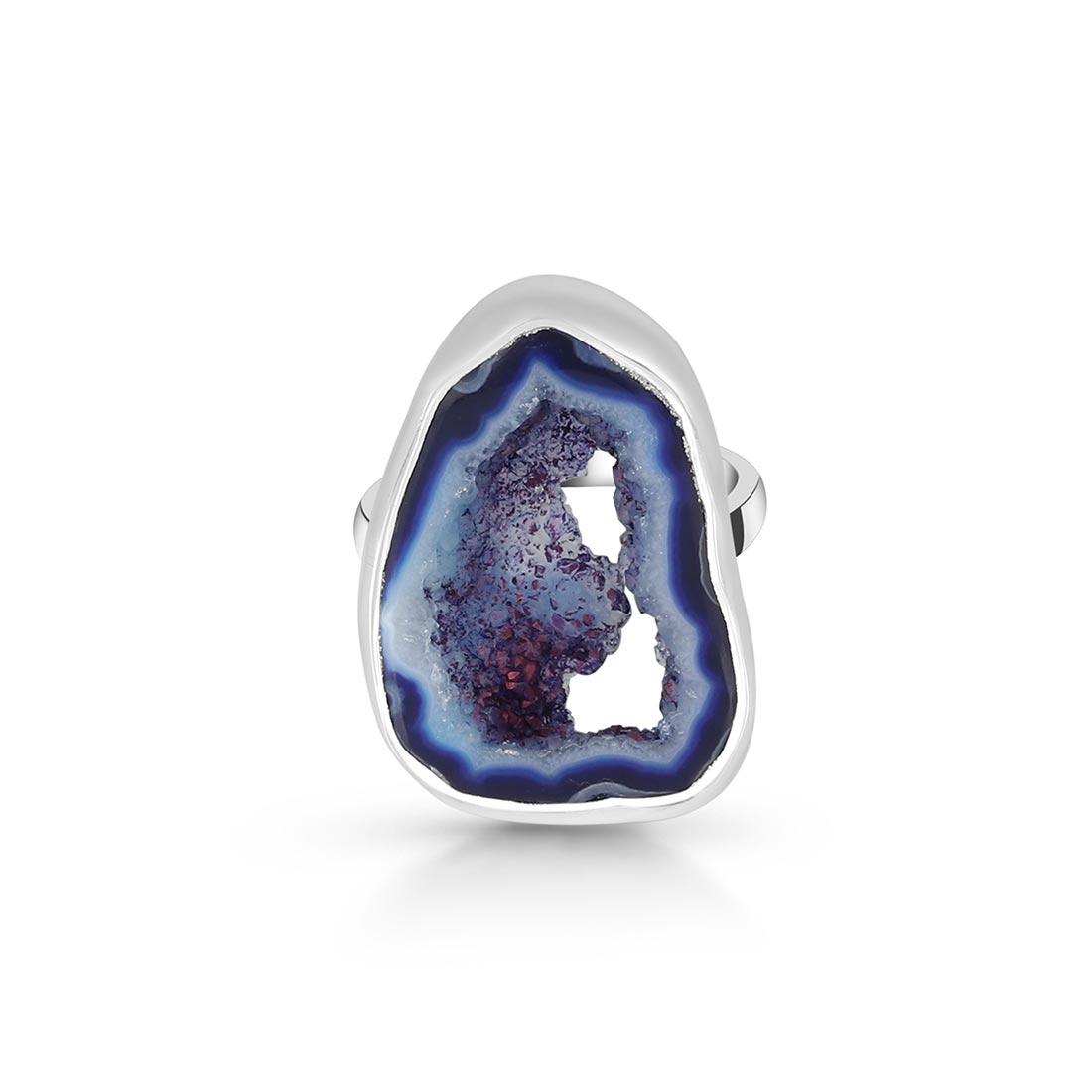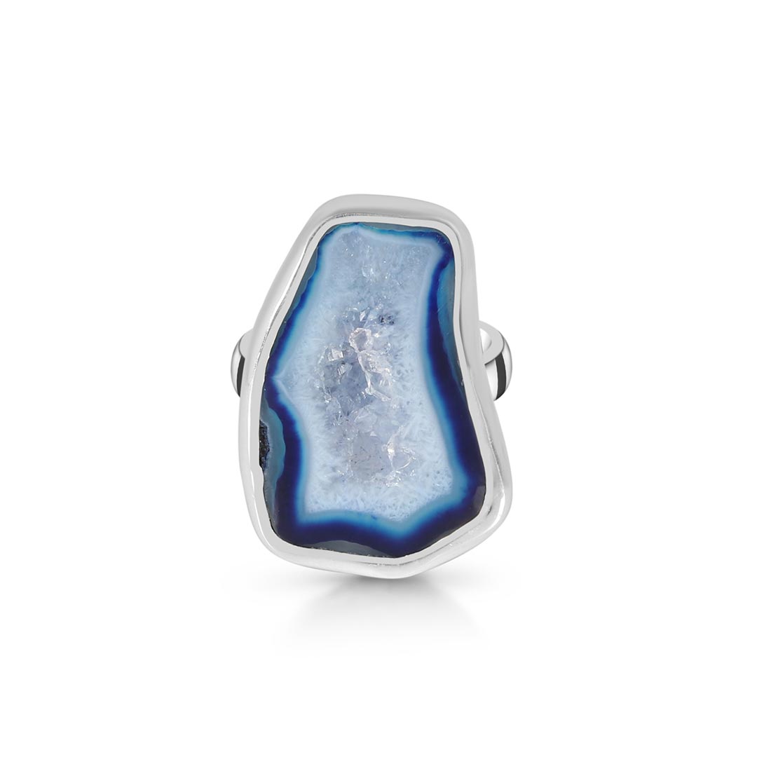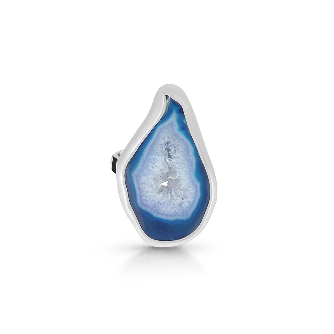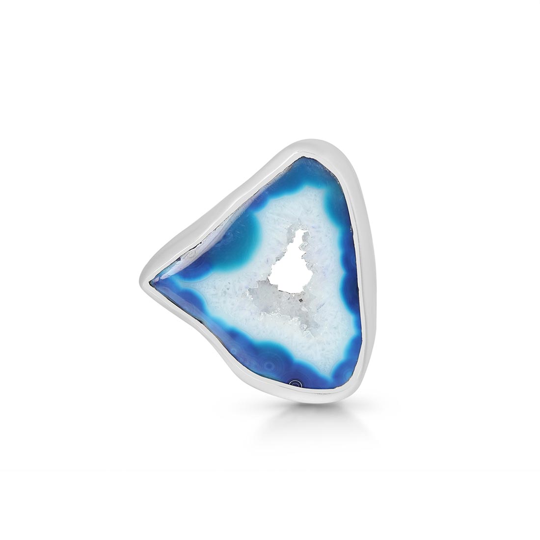 Blue Agate has several positive effects on the human body and soul: It is beneficial for the organism, can help with illnesses, and opens one's eyes to new ideas. In terms of physical properties, wearing this alluring gemstone heals nervous system ailments such as neuralgia and multiple sclerosis. Energizing the intellect through wearing a Blue Agate ring shall help reduce tension, anxiety, and any disturbance by emotions to help achieve mental calmness.