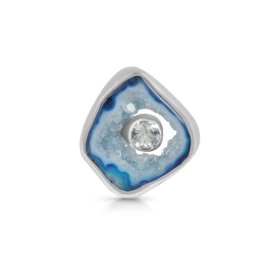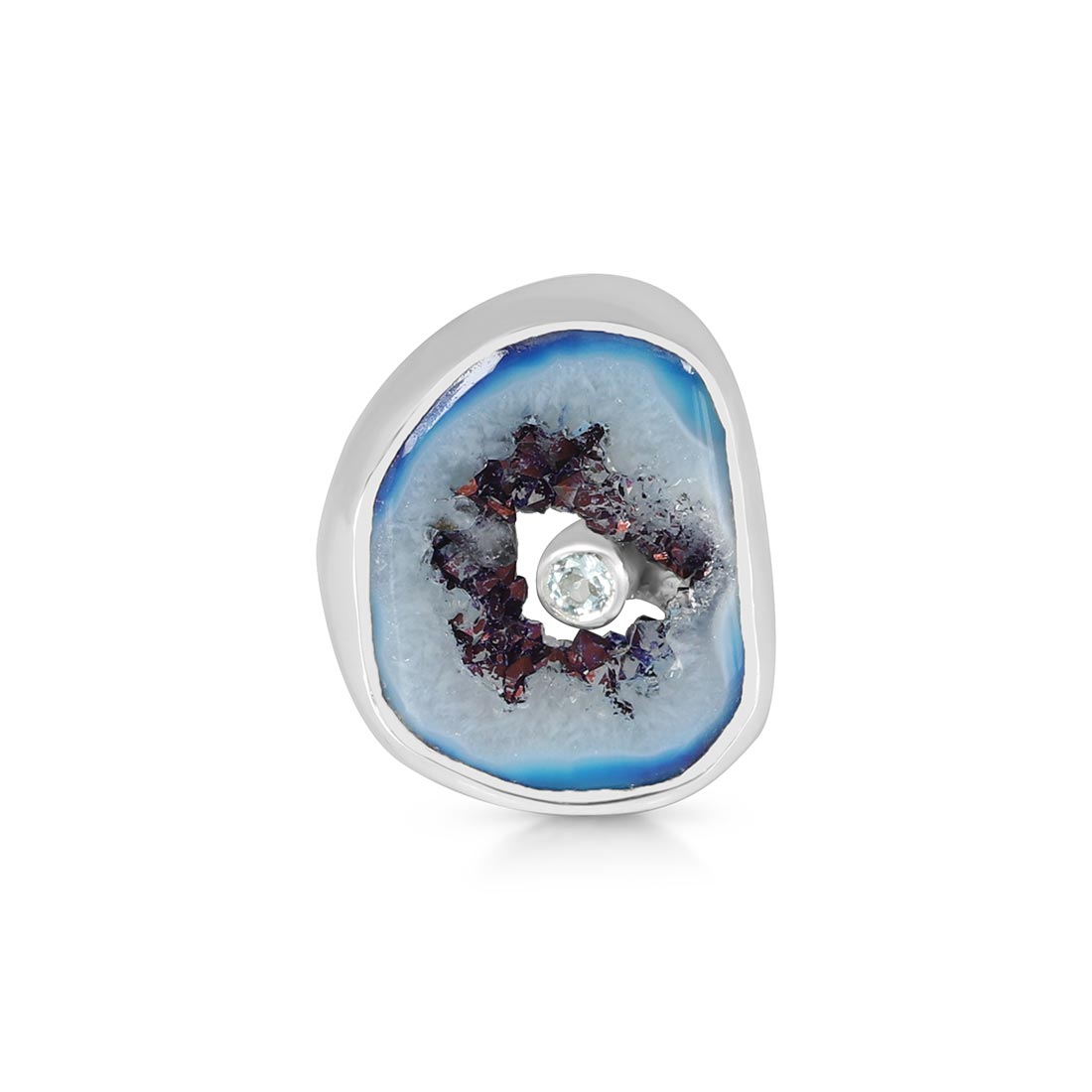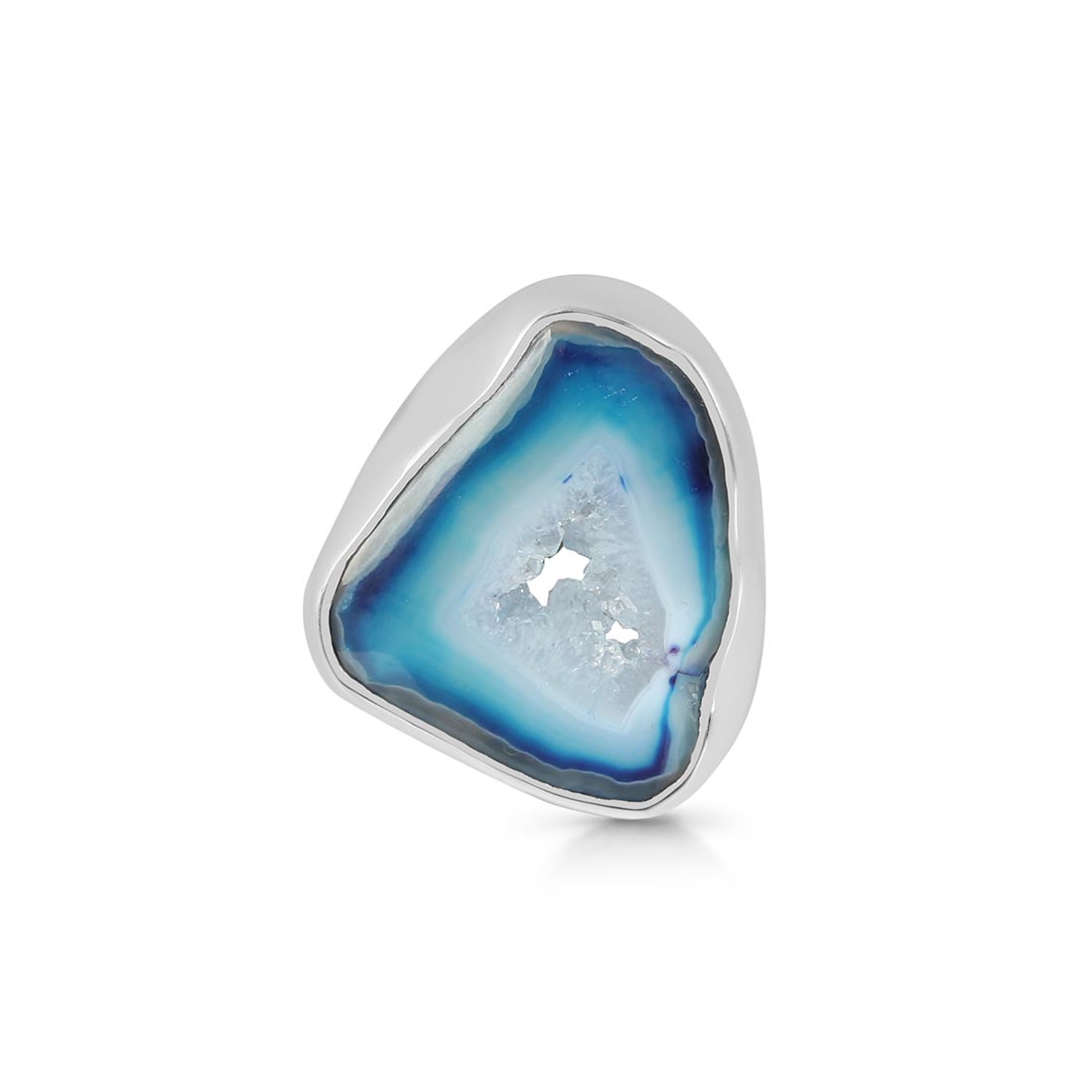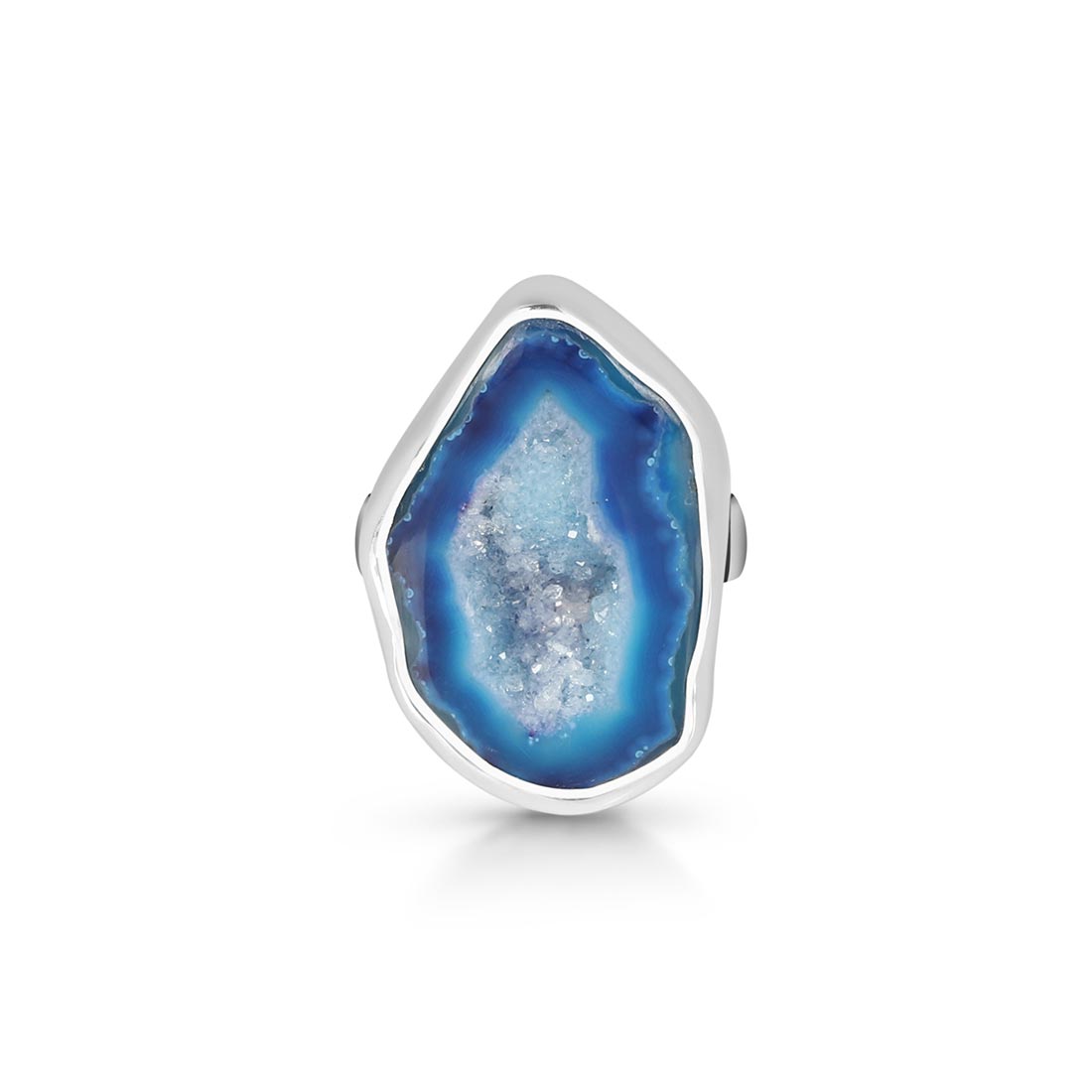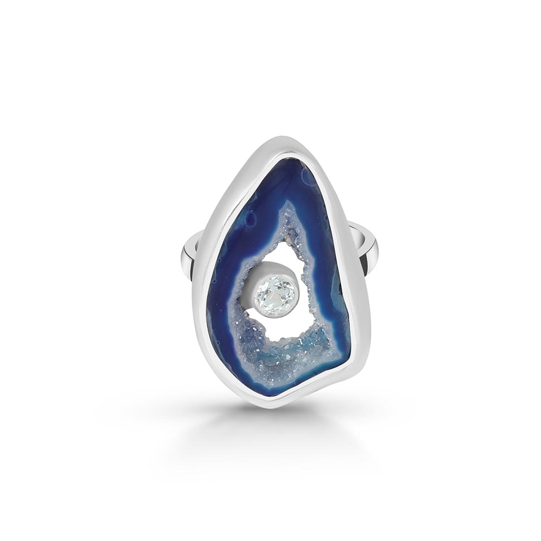 Blue Agate has several positive effects on the human body and soul: It is beneficial for the organism, can help with illnesses, and opens one's eyes to new ideas. In terms of physical properties, wearing this alluring gemstone heals nervous system ailments such as neuralgia and multiple sclerosis. Energizing the intellect through wearing a Blue Agate ring shall help reduce tension, anxiety, and any disturbance by emotions to help achieve mental calmness.