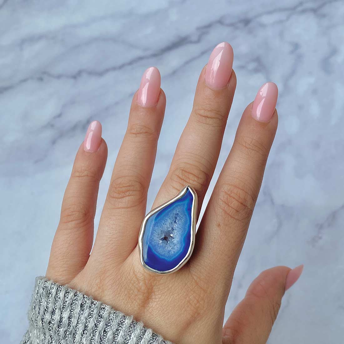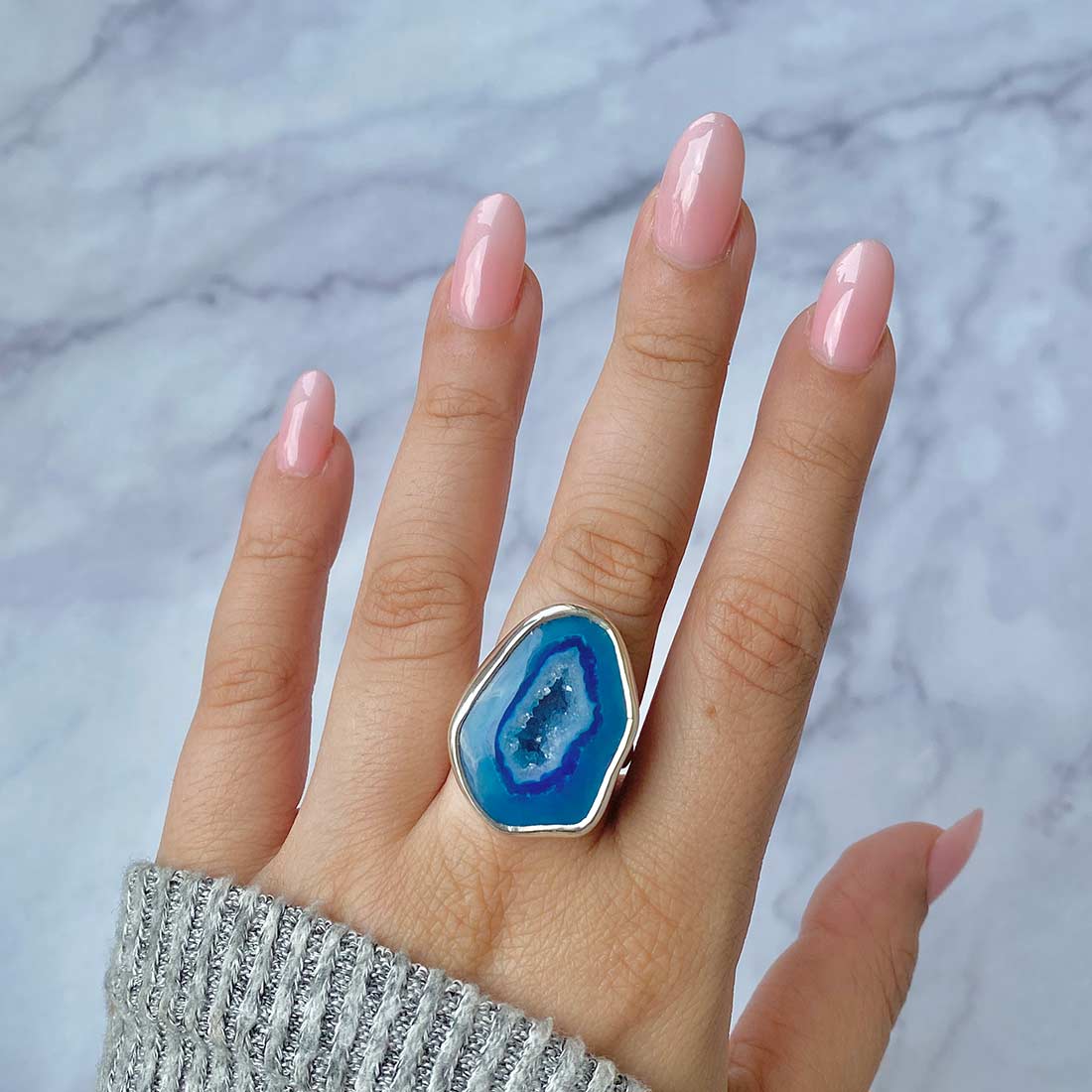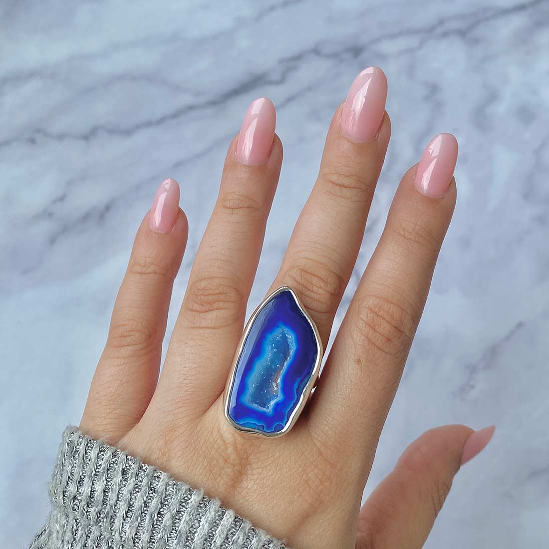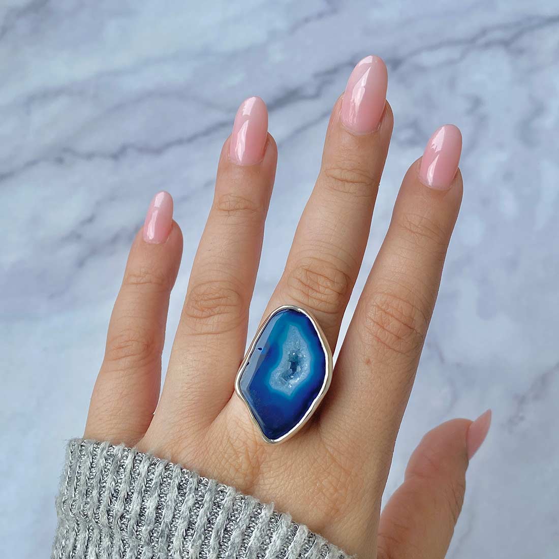 Serene Azure Beauty: Statement Blue Agate Rings