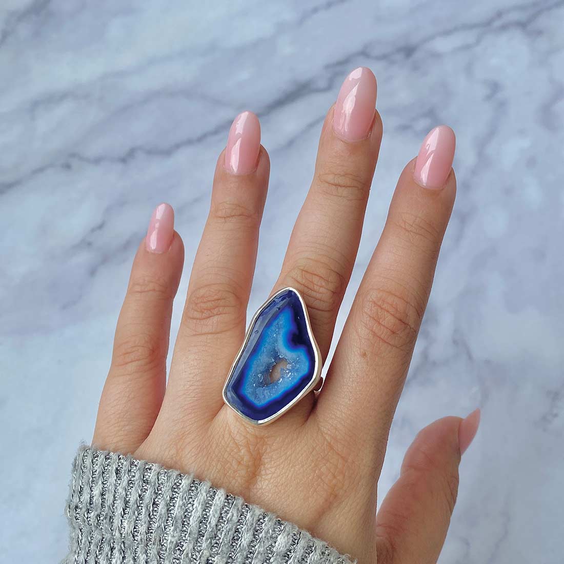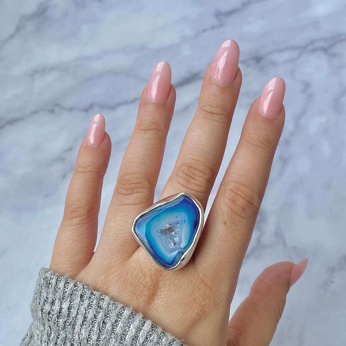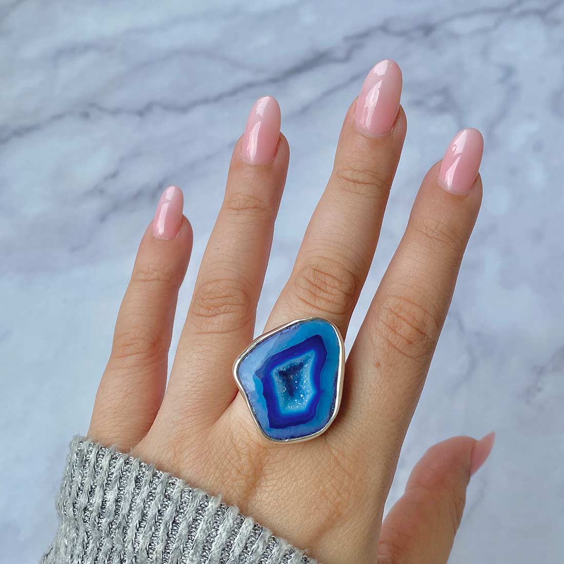 Serene Azure Beauty: Statement Blue Agate Rings
