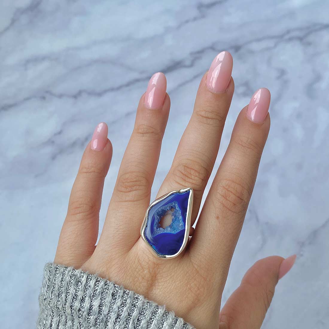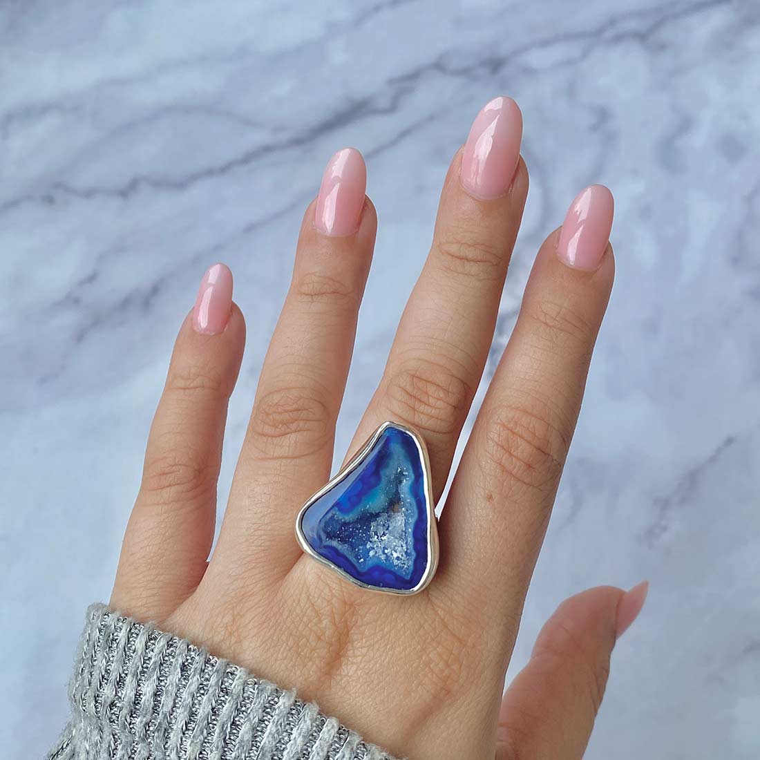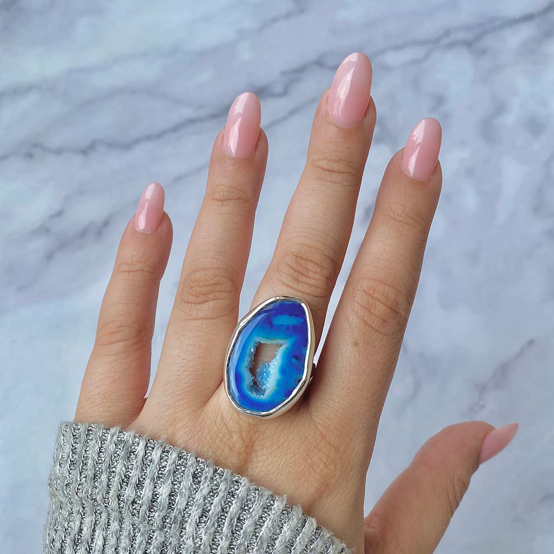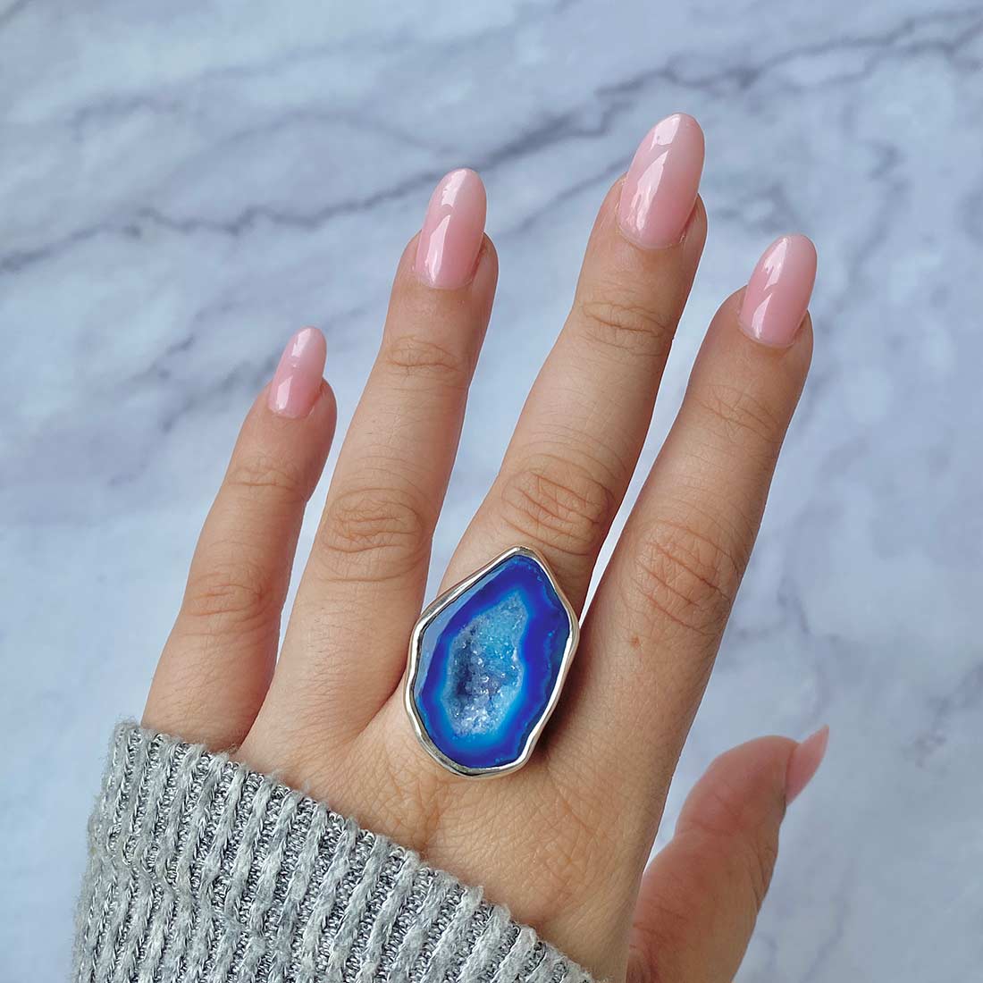 Serene Azure Beauty: Statement Blue Agate Rings