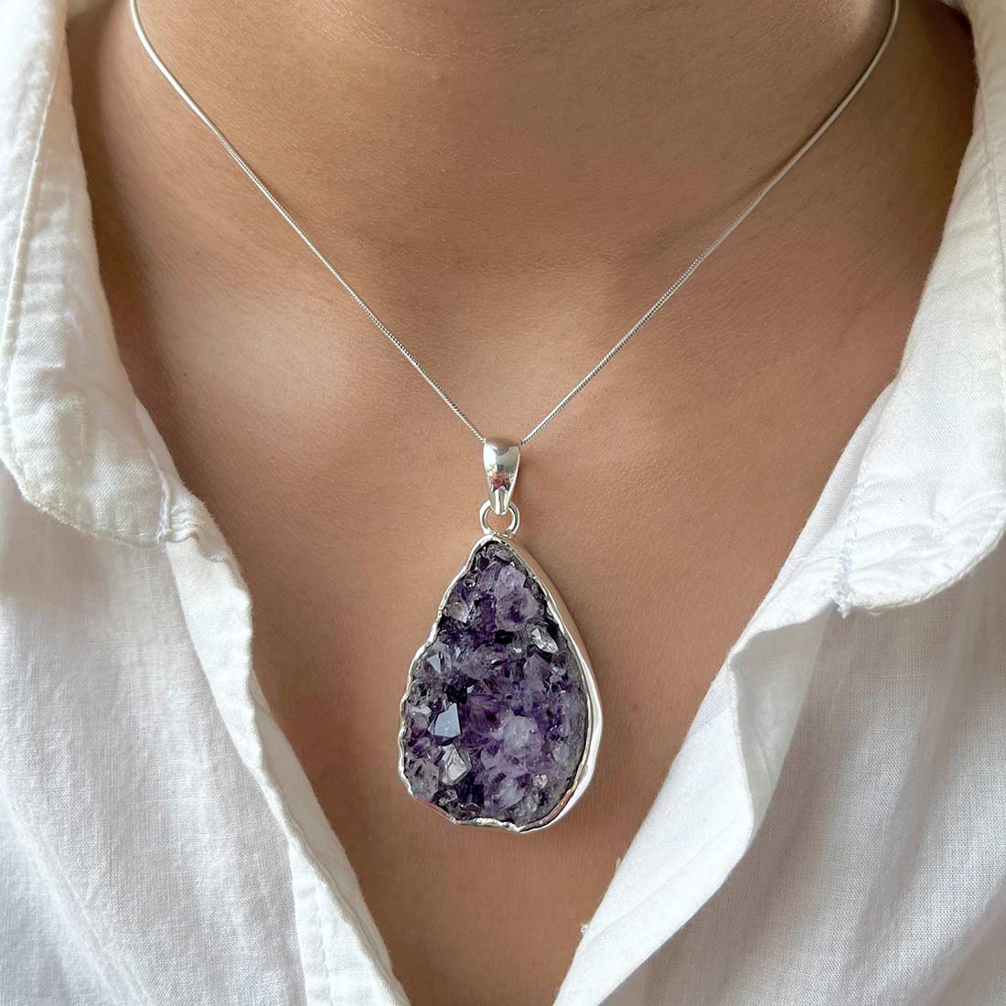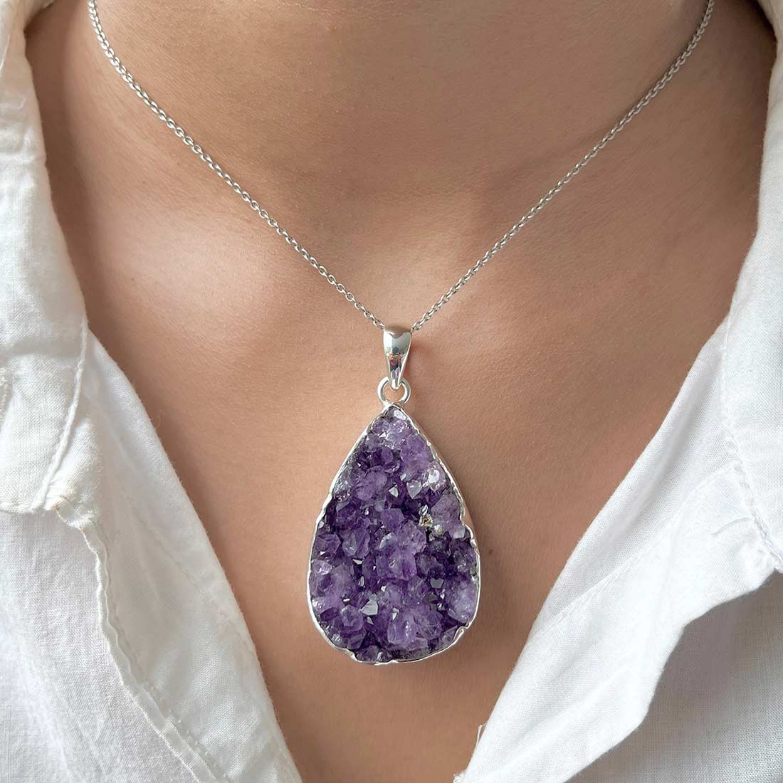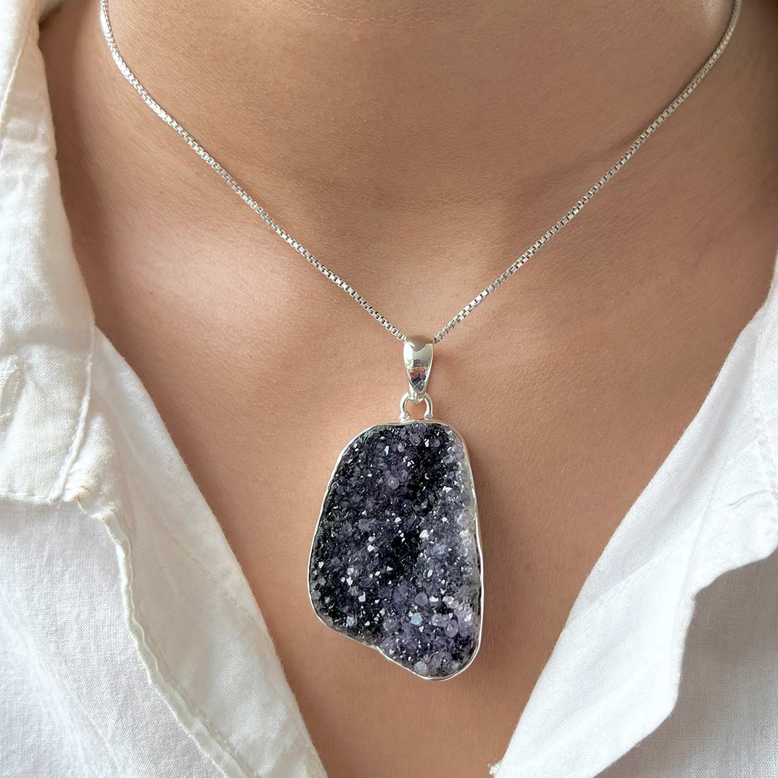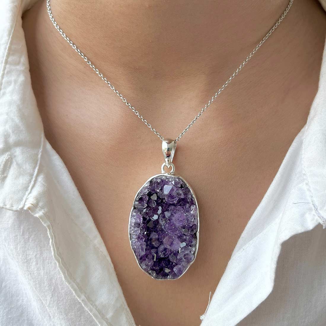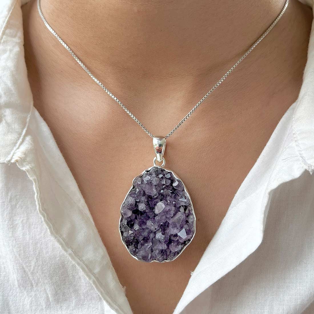 Pendants - the minimalist kind of jewelry. Pendants are the love for ladies. Gifting a classy pendant to your lady love seems like decorating your house with orchids on the occasion of your marriage anniversary. Well, we all know for women, jewelry is love. A single bracelet, ring, or even a pair of earrings can change the whole look. And these accessories capture the shine of eyes more effectively. Even going for a casual office meeting, a woman might forget their makeup but never forgets to style her hair and carry a jewelry piece. And a simple pair of gemstone earrings can add more sparkle to any look. So, let's analyze the deepness of the statement amethyst druzy pendant.