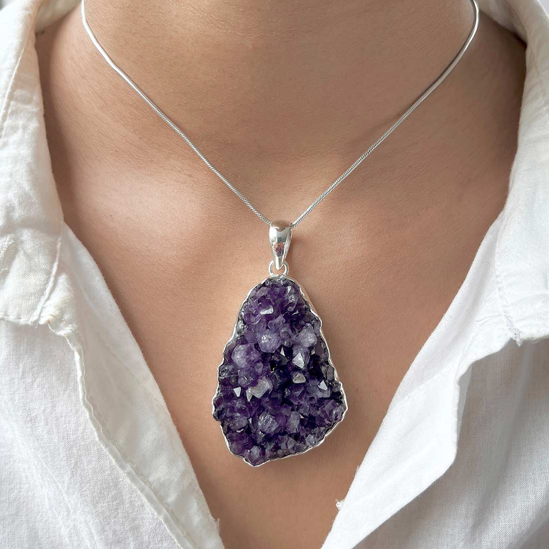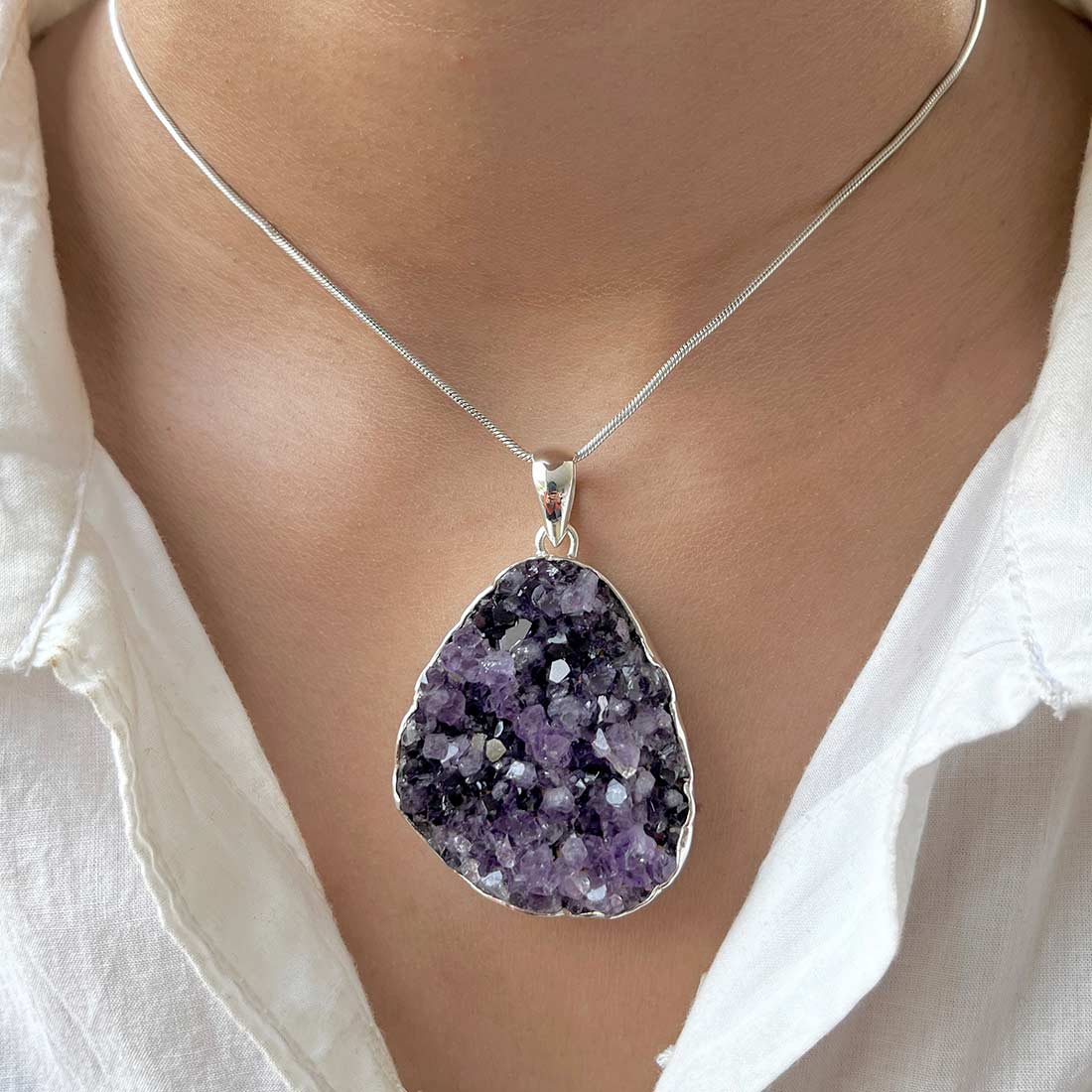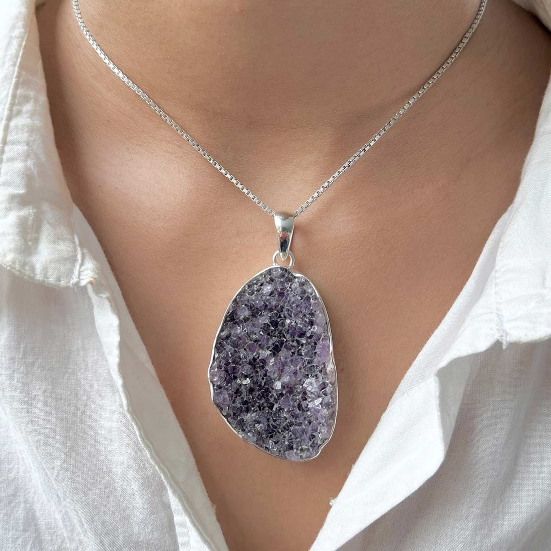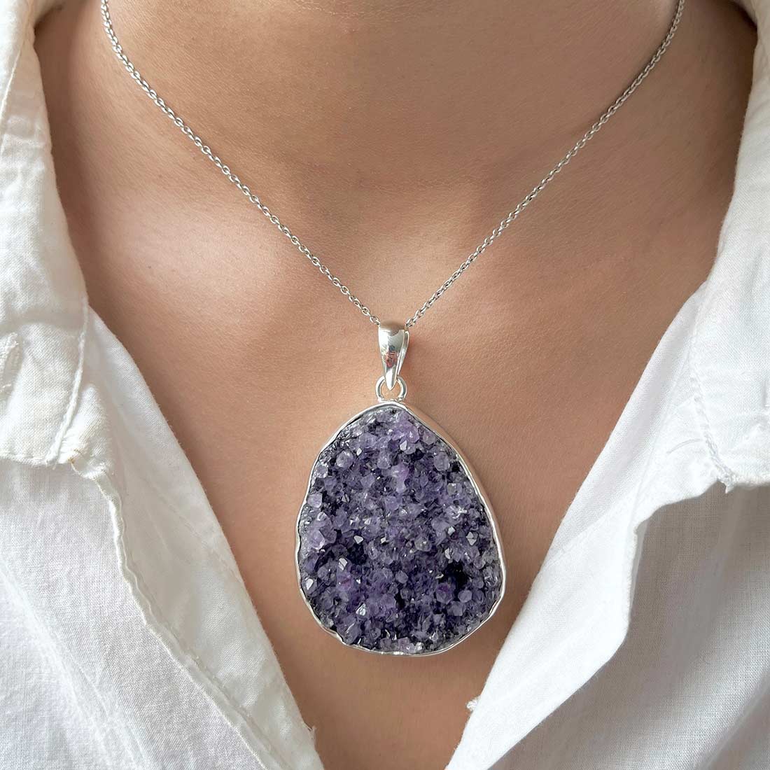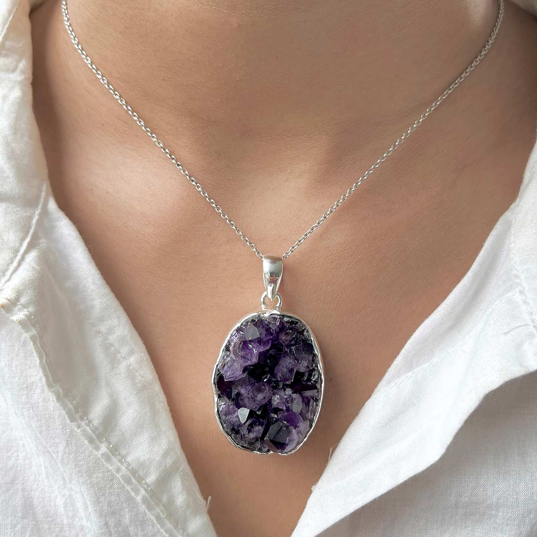 Pendants - the minimalist kind of jewelry. Pendants are the love for ladies. Gifting a classy pendant to your lady love seems like decorating your house with orchids on the occasion of your marriage anniversary. Well, we all know for women, jewelry is love. A single bracelet, ring, or even a pair of earrings can change the whole look. And these accessories capture the shine of eyes more effectively. Even going for a casual office meeting, a woman might forget their makeup but never forgets to style her hair and carry a jewelry piece. And a simple pair of gemstone earrings can add more sparkle to any look. So, let's analyze the deepness of the statement amethyst druzy pendant.
