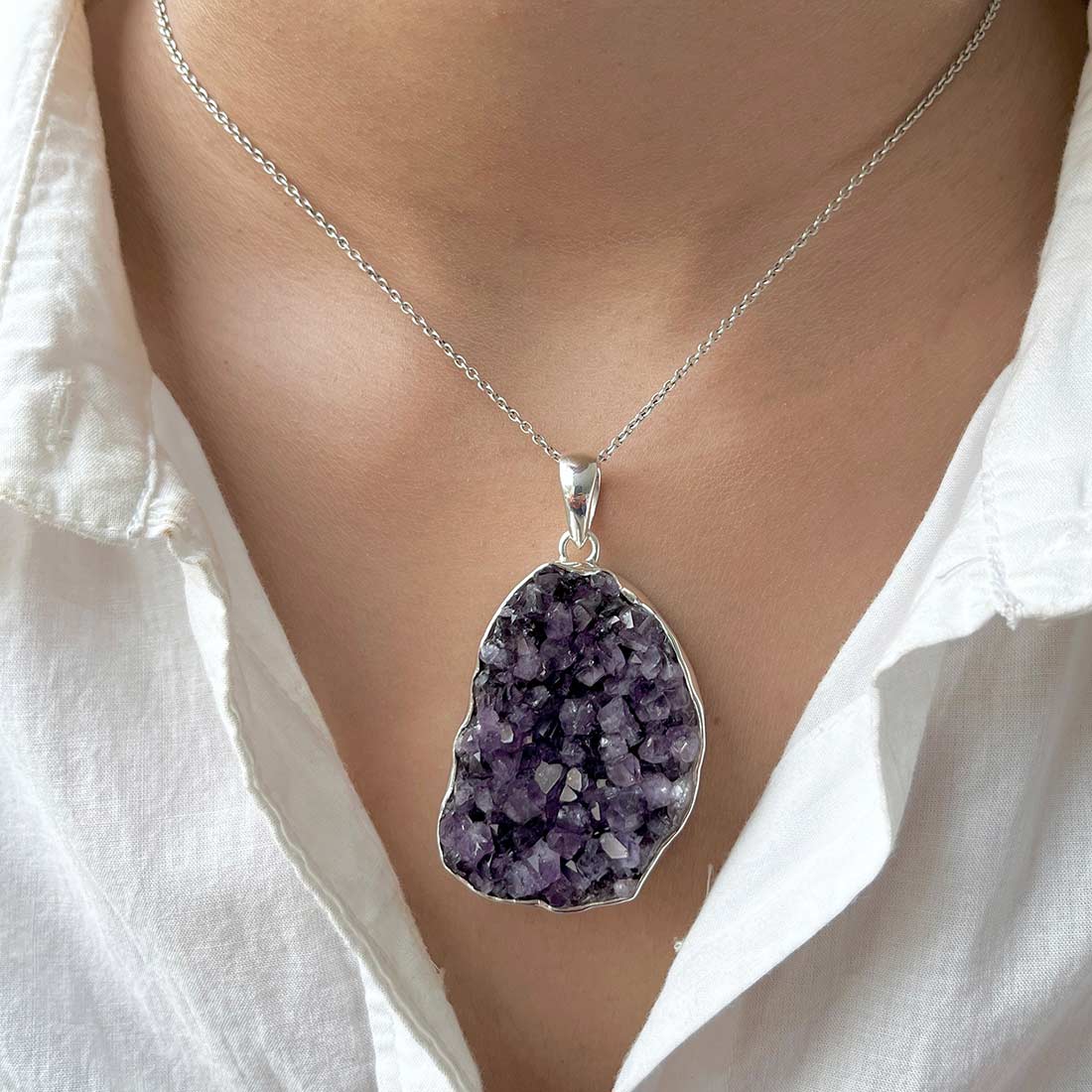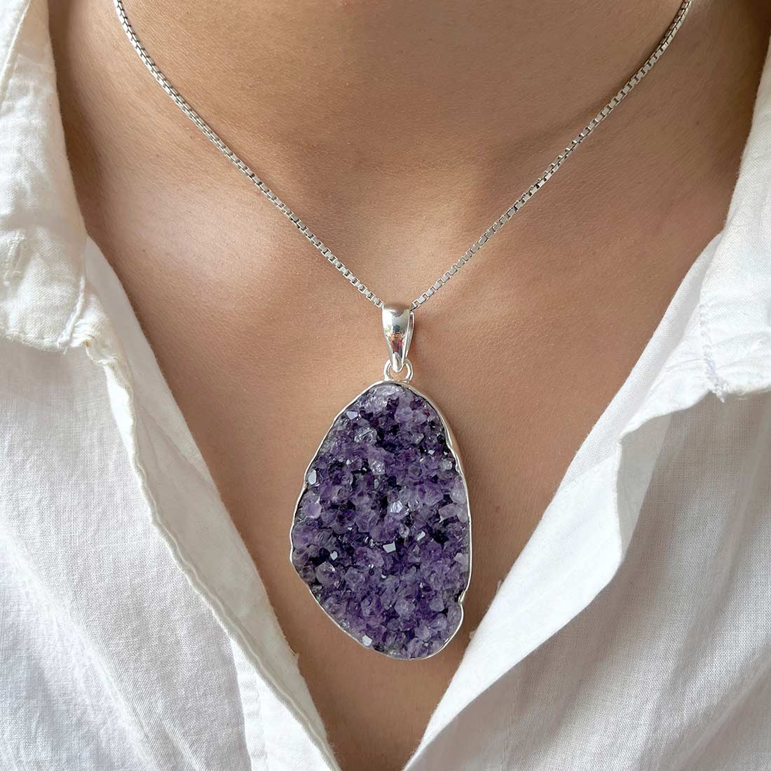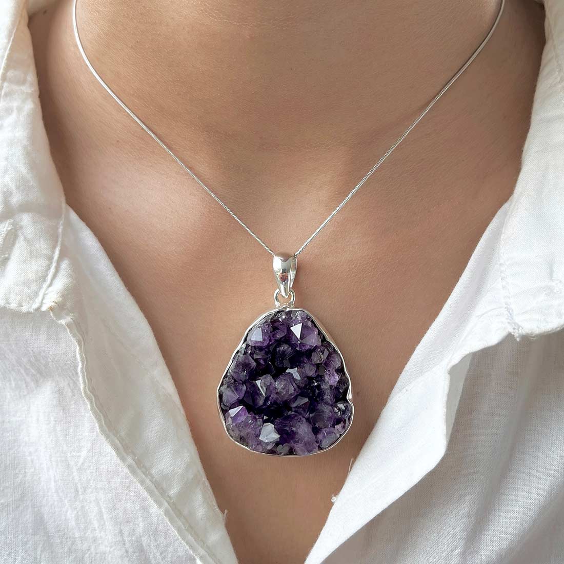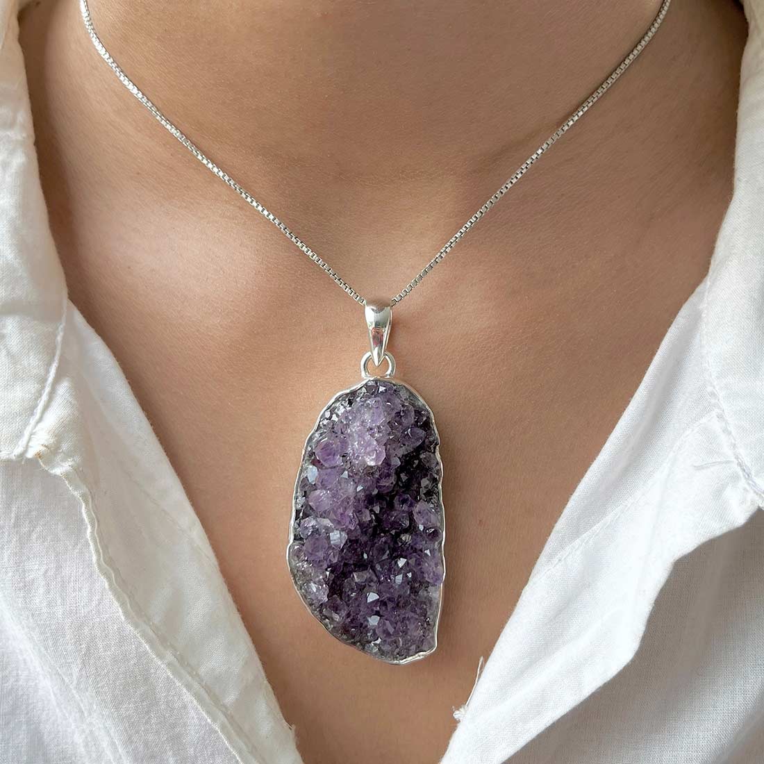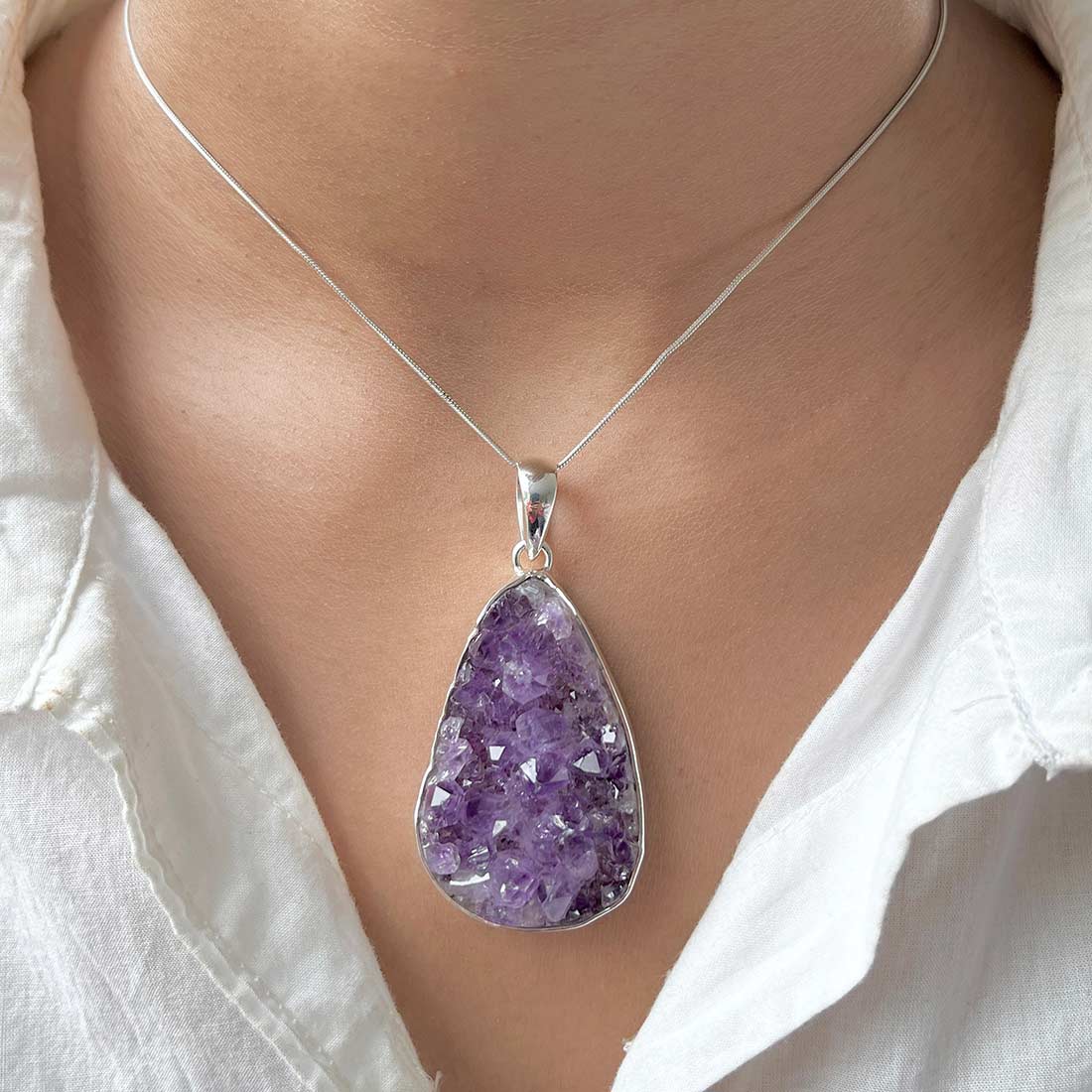 Pendants - the minimalist kind of jewelry. Pendants are the love for ladies. Gifting a classy pendant to your lady love seems like decorating your house with orchids on the occasion of your marriage anniversary. Well, we all know for women, jewelry is love. A single bracelet, ring, or even a pair of earrings can change the whole look. And these accessories capture the shine of eyes more effectively. Even going for a casual office meeting, a woman might forget their makeup but never forgets to style her hair and carry a jewelry piece. And a simple pair of gemstone earrings can add more sparkle to any look. So, let's analyze the deepness of the statement amethyst druzy pendant.