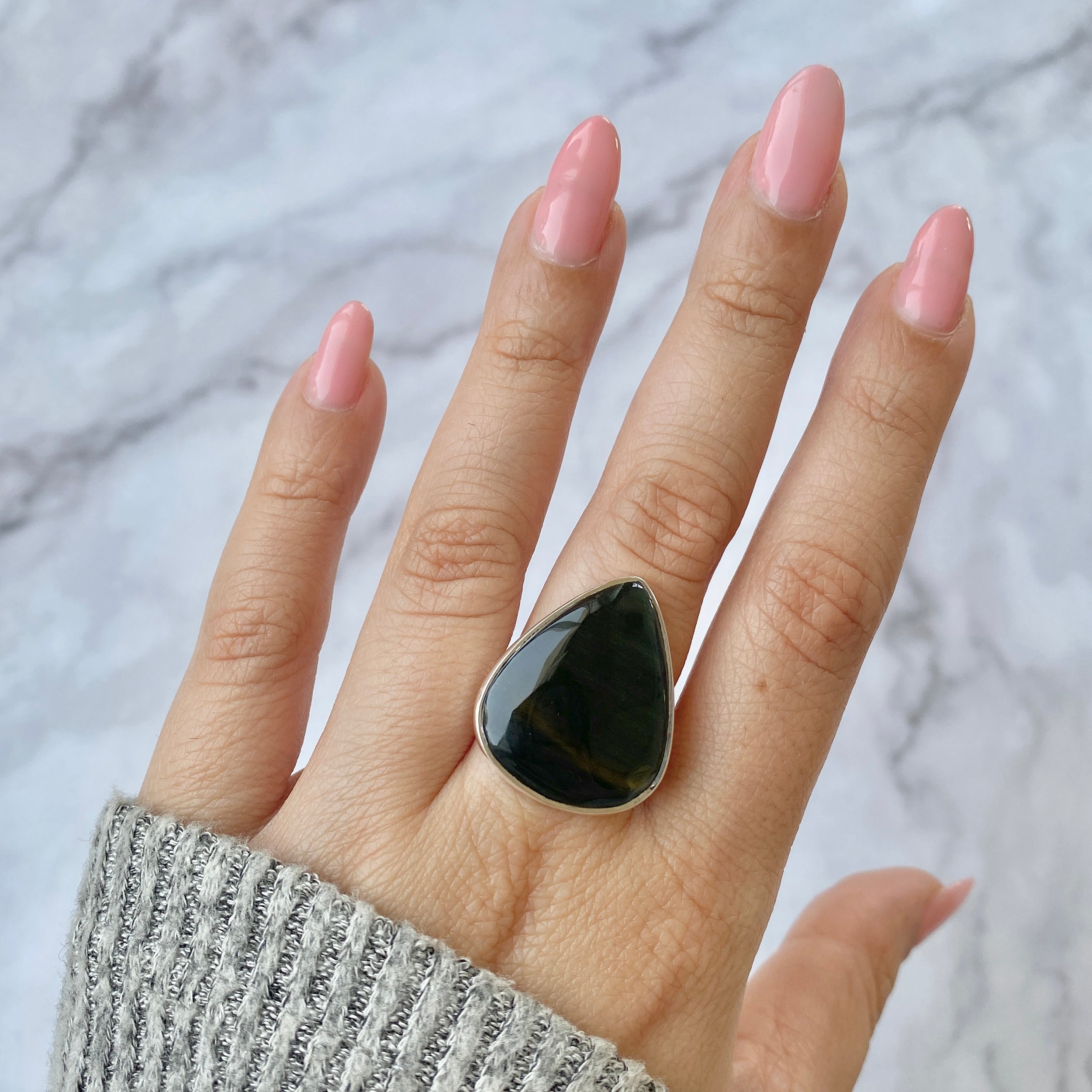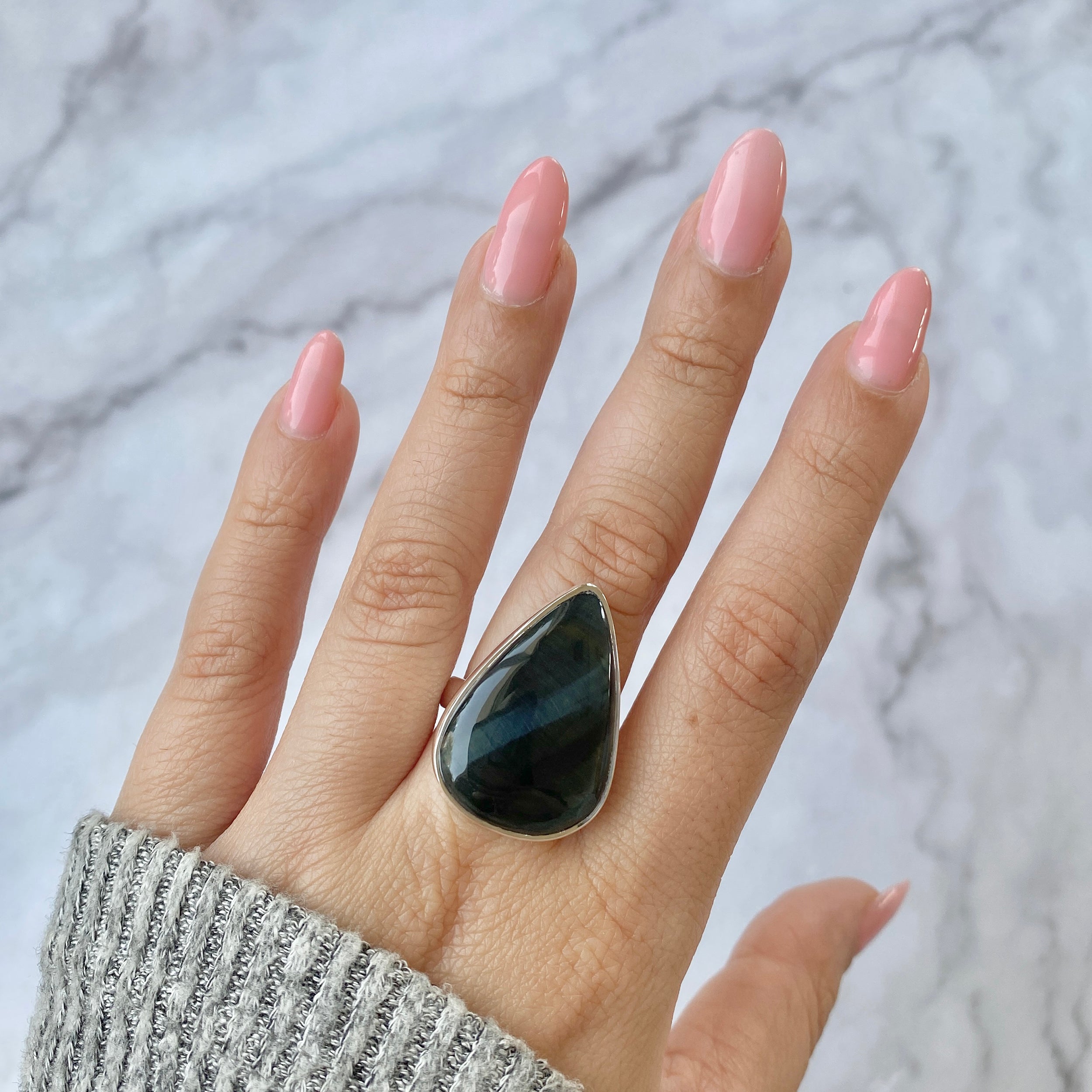 Blue Tiger Eye is a potent healing property that promotes deep healing to the wearer. It is known as the stone of security, which helps to protect while wearing blue tiger eye rings.. It is a famous stone for those who want to heal their physical and mental health. It is said to bring mental clarity. Blue tiger eye is prized for its anchoring and relaxing properties if paired with other crystals. For example, wearing it with Moss Agate rings relieves stress and brings peace into your life. Additionally, Black Tourmaline rings and Blue Topaz rings are a good idea to bring balance, and protection against psychic attacks. It is thought to provide a calm state of being by calming the mind and reducing tension. Deep blue tones in the stone are linked to the throat chakra, which promotes self-expression and communication. Wearers frequently describe feeling concentrated and in control, as well as that they can speak their minds with confidence. Each Blue Tiger Eye ring is painstakingly made to capture the stone's inherent energies, providing a beautiful piece of jewelry and a pathway to emotional harmony and spiritual development.