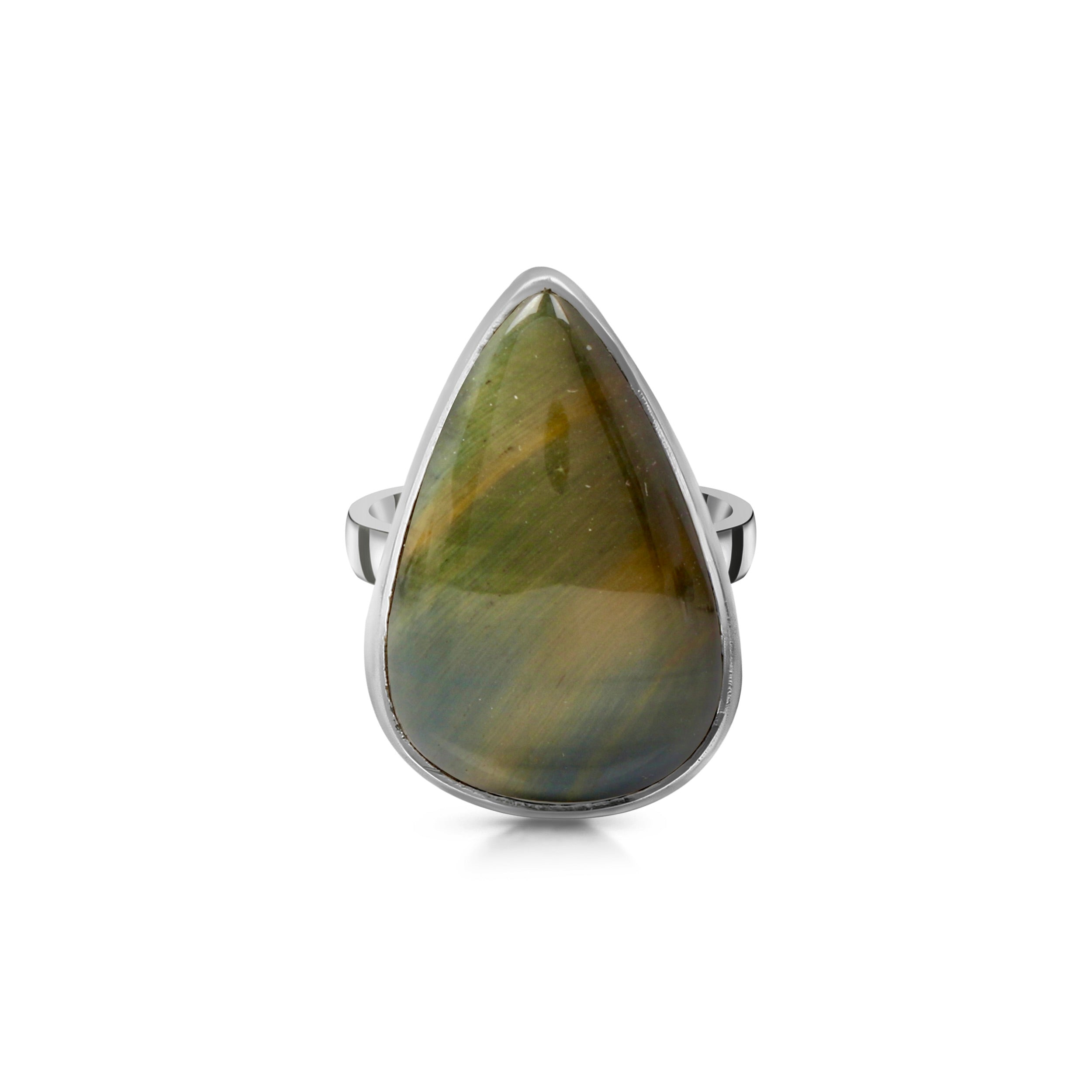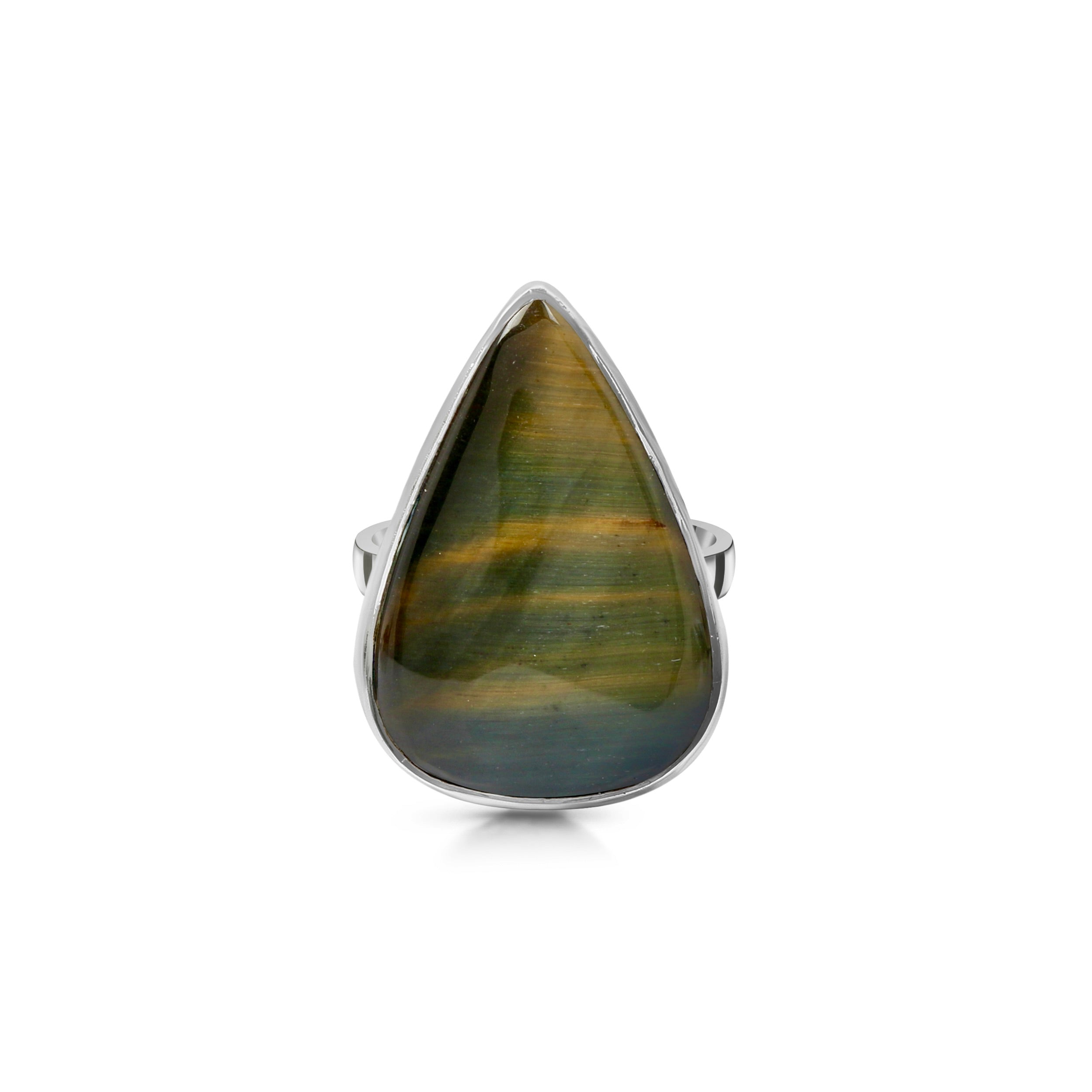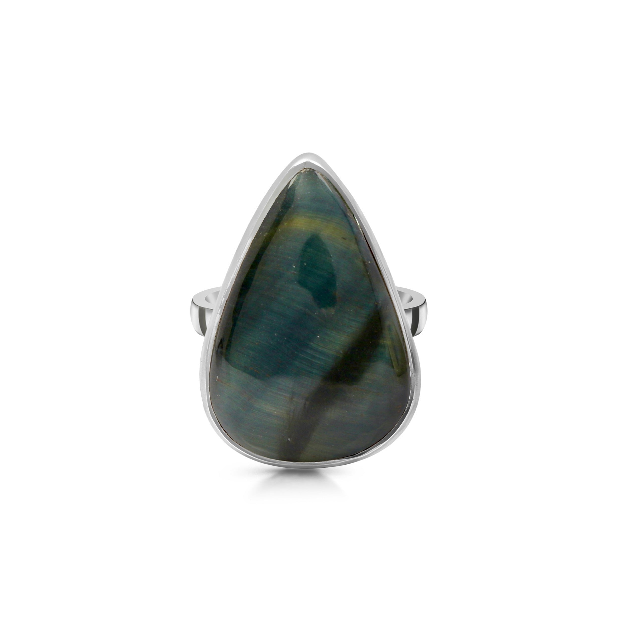 Blue Tiger Eye is a unique and beautiful variety of Tiger eye stone. It is favored for its beautiful blue hue and its stunning appearance. Blue Tiger eye is known as a versatile stone for everyday jewelry, such as blue tiger eye rings and pendant wear, because of its Mohs hardness of 6-7 and silky luster. The color of this gemstone ranges from gorgeous oceanic colors, like greenish-blue, and because of its hues, it is full of calming hues, which makes it a perfect gemstone. This ring reminds wearers to remain calm and assertive despite life's obstacles, whether they choose to wear it for its aesthetic value or metaphysical advantages. Discover how the healing forces of nature and the beauty of nature mix harmoniously in the Blue Tiger Eye ring—a timeless gift for the spirit.