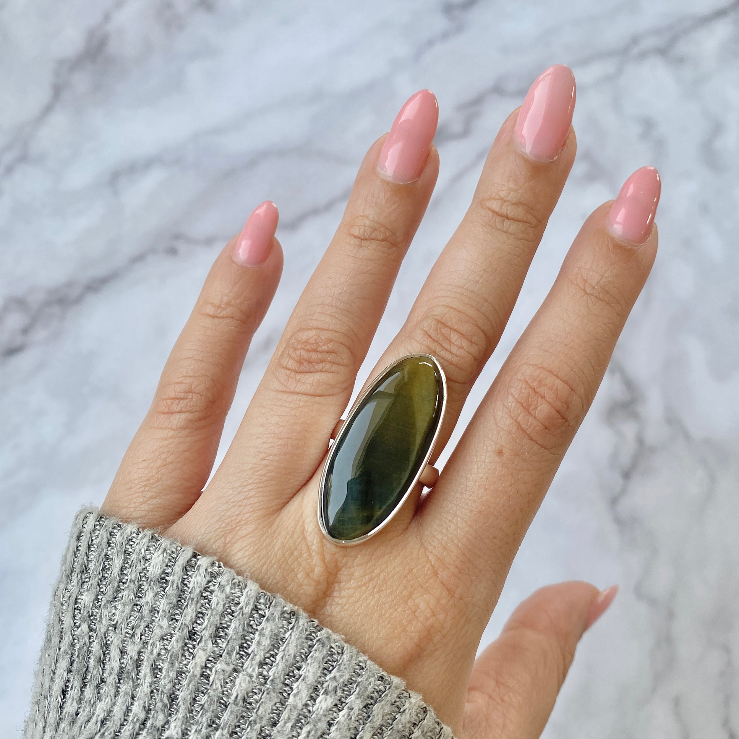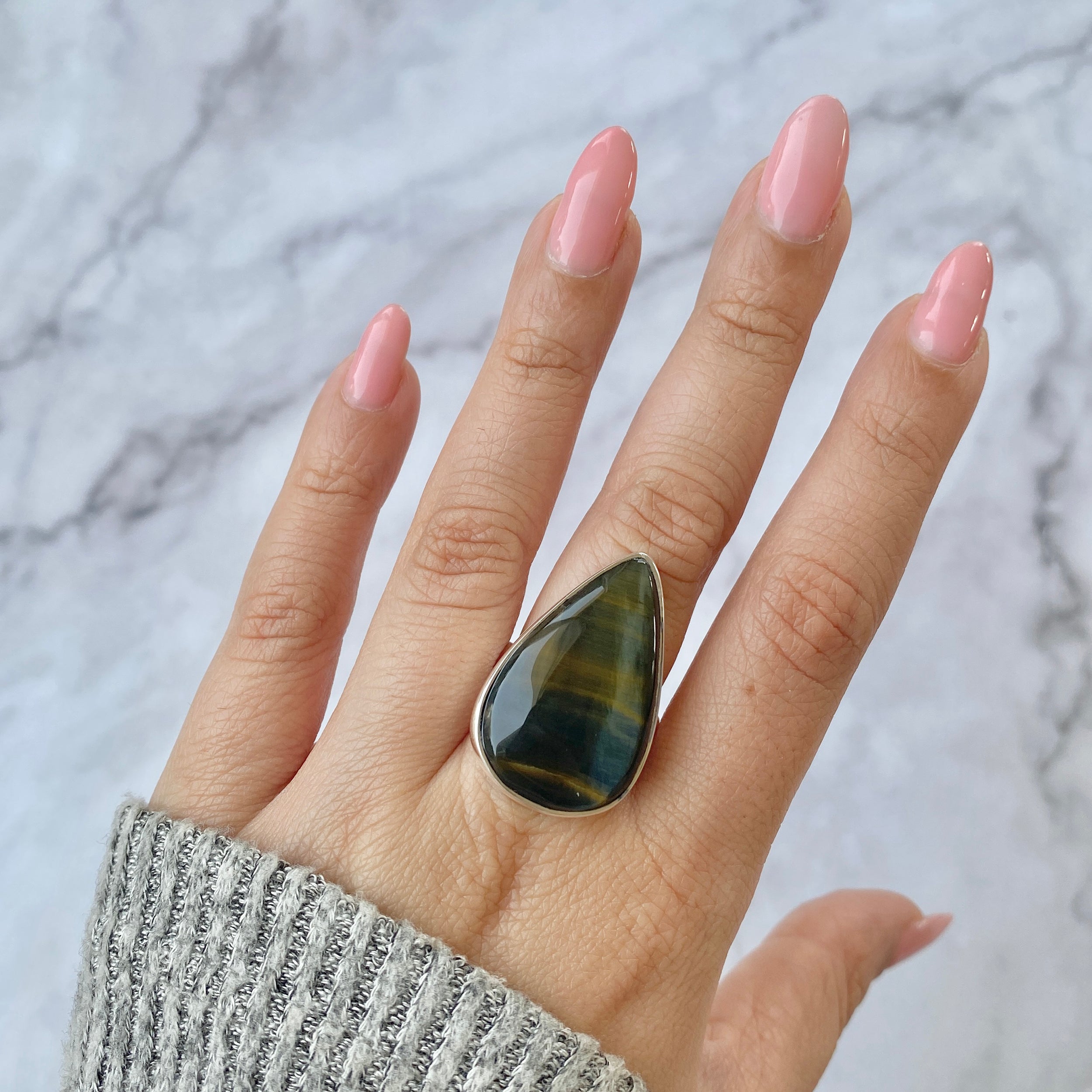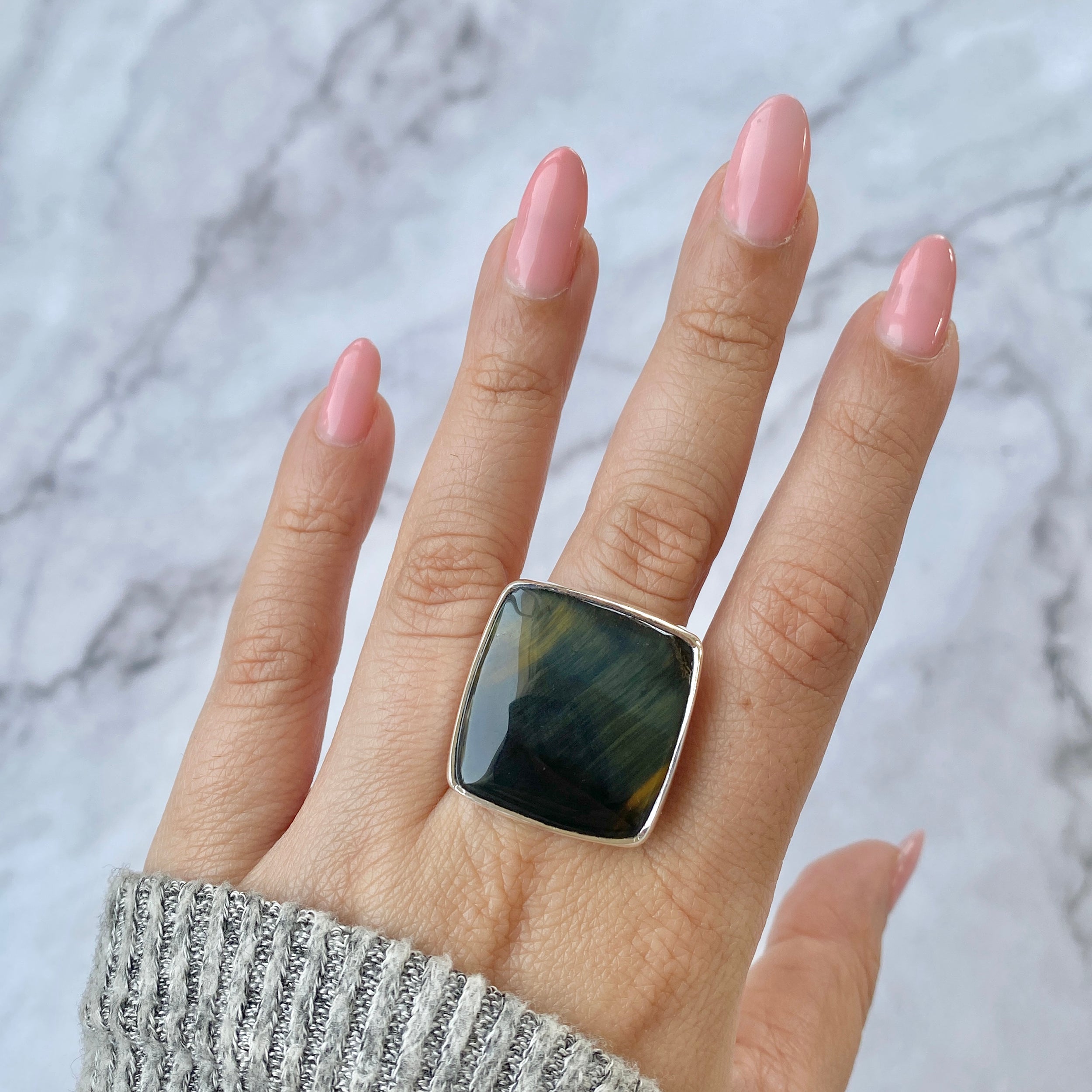 Spiritual Cosmic Energy of Statement Blue Tiger Eye Rings