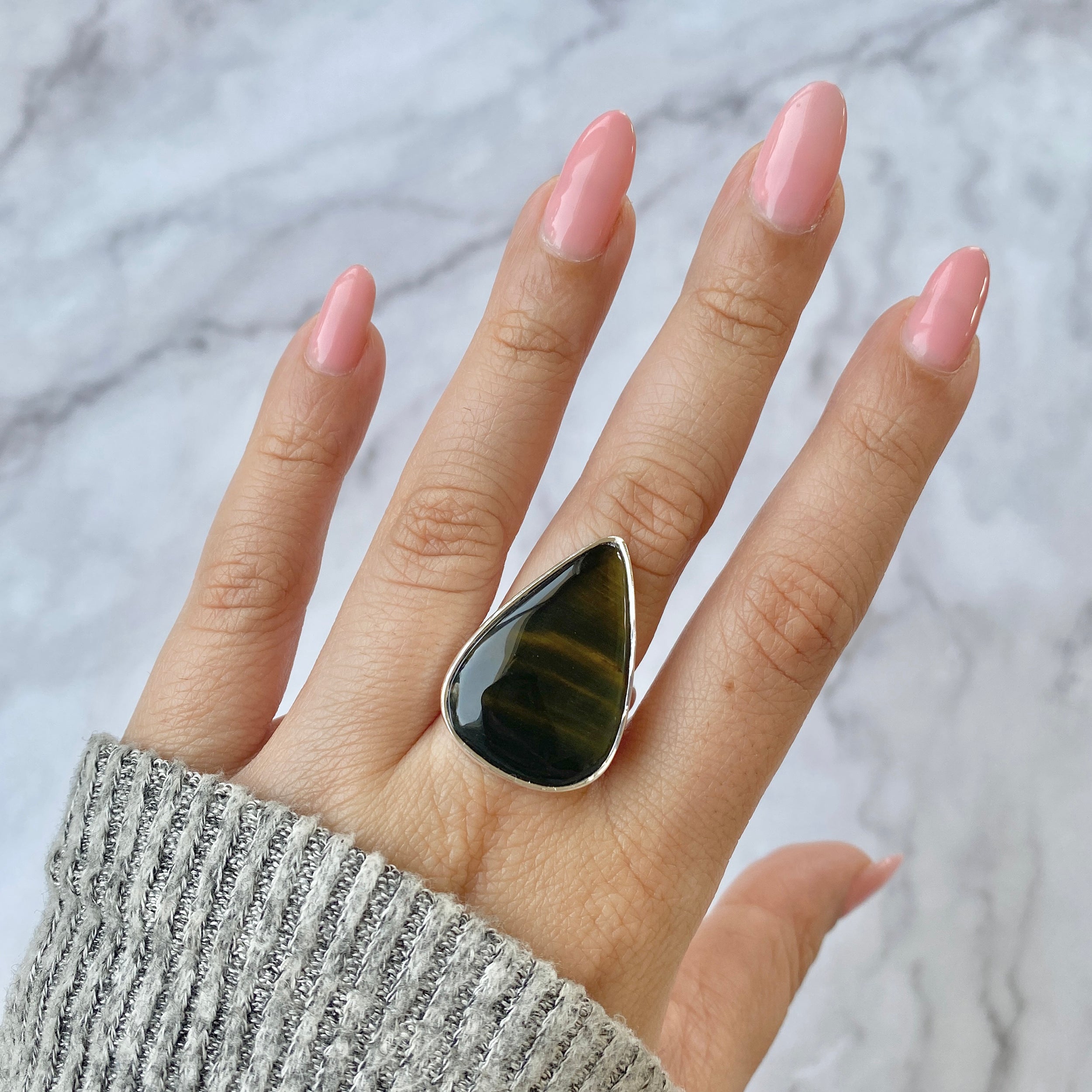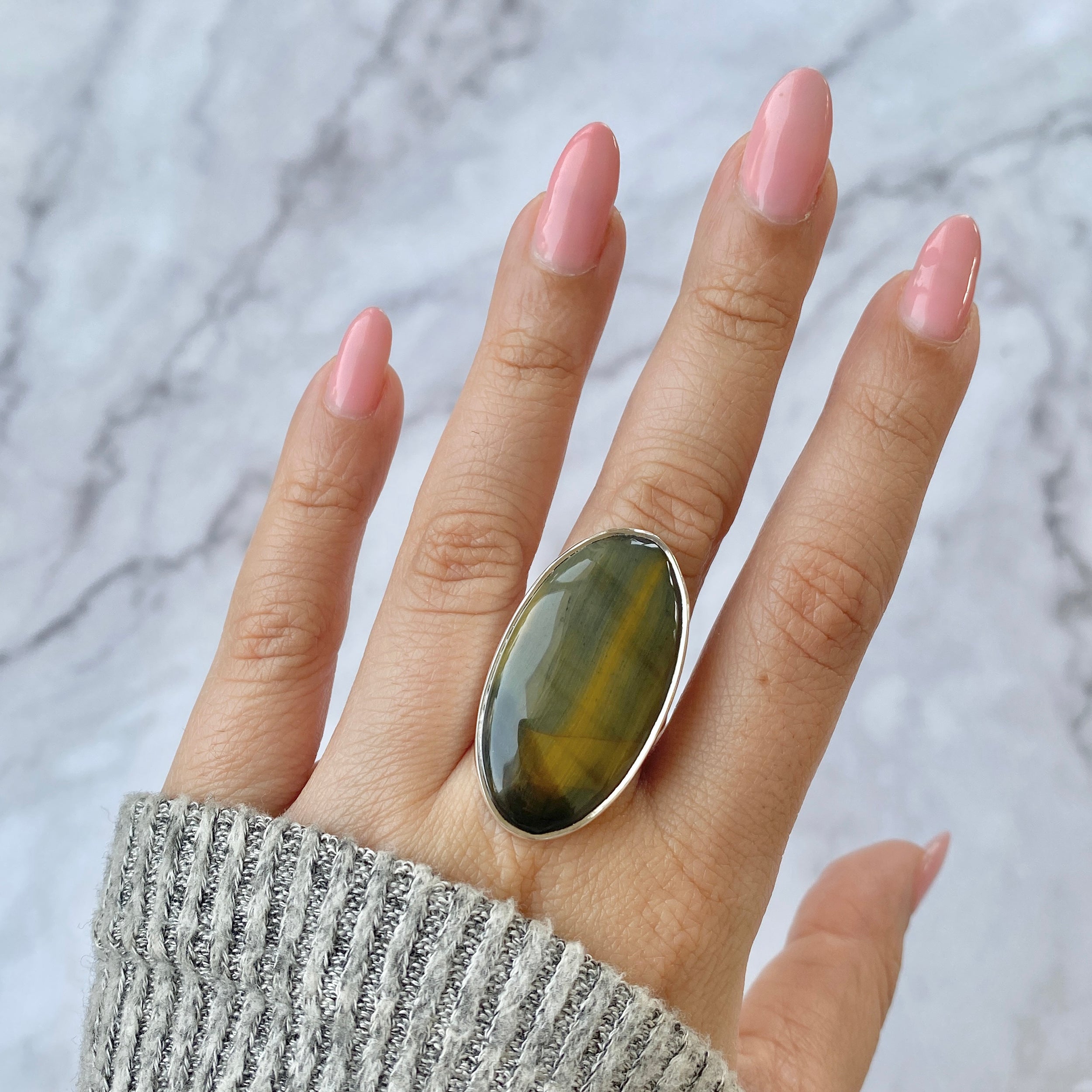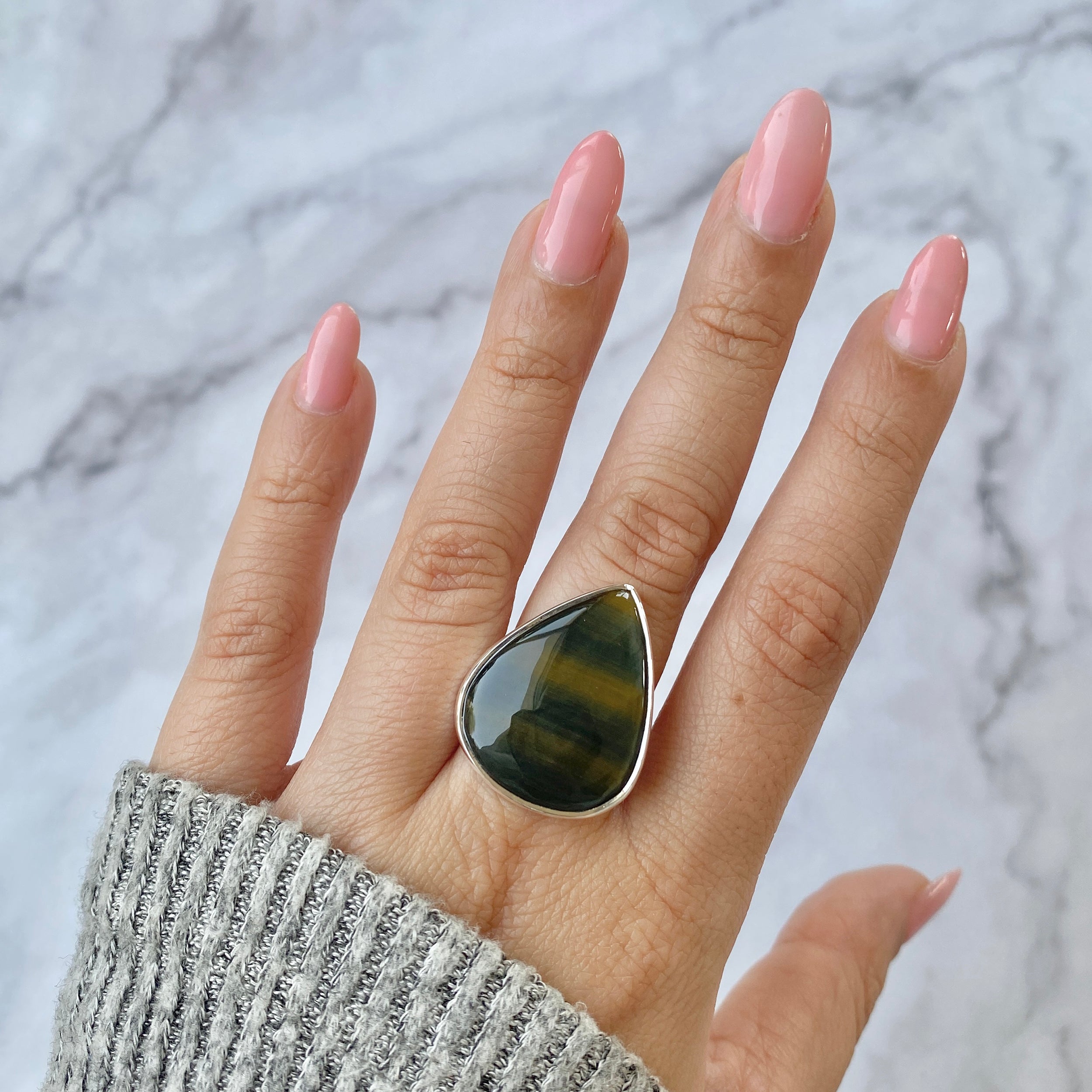 Spiritual Cosmic Energy of Statement Blue Tiger Eye Rings