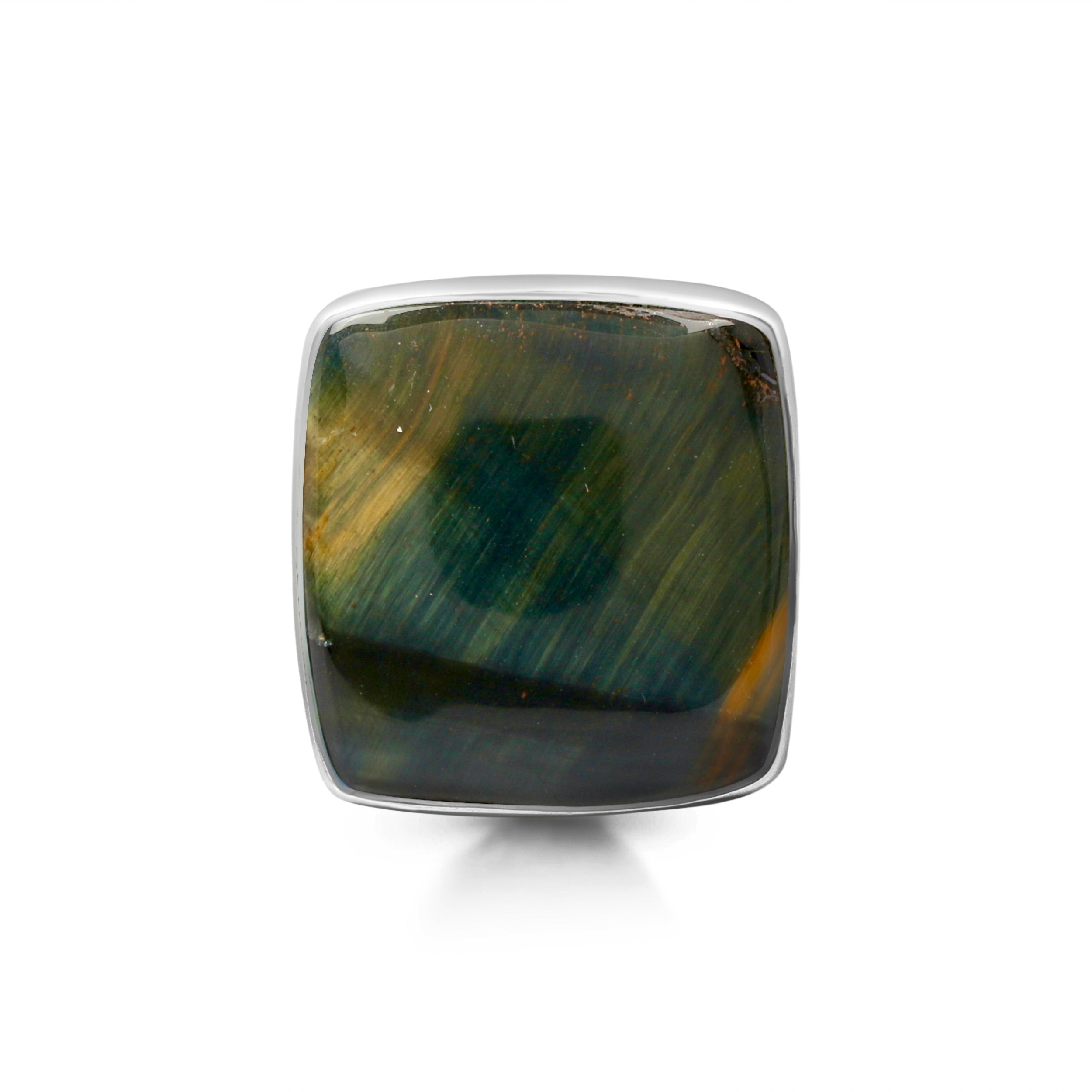 Blue Tiger Eye has a powerful spiritual cosmic energy that can align itself with the cosmos and the higher dimensions. The blue tiger eye is a loose stone connected with the third eye chakra that is positioned in the middle of the forehead. This chakra is associated with intuition, inner knowingness or the voice within, and spiritual seeing. Blue Tiger Eye is said to re-align the person spiritually and make them sensitive to their surroundings. It aids in awareness and prayer, which helps a person get closer to addressing the soul and the divine powers of the universe. The Blue Tiger Eye's cosmic energy is theological and provides skills to the wearer while helping them gain spiritual knowledge and develop. It is capable of transfiguration and, with its heavenly sounds, can raise everyone's spiritual levels. Wearing the Blue Tiger Eye ring is healing and metaphysics to increase one's extrasensory perception or intuitive abilities, which is why its usage is beneficial in cases where the person is on a spiritual path or is in search of spiritual evolution.