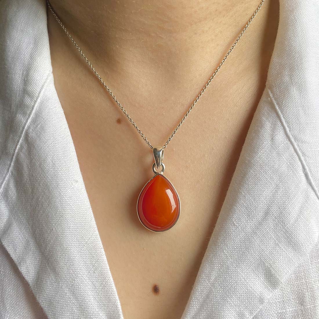 Now that you have read a lot about what Carnelian is and what the therapeutic benefits offered by this gorgeous orange stone, it’s time that we ask you whether you would like to purchase beautiful carnelian pendants made in pure 925 sterling silver that are all handmade and one of a kind? If you wish to purchase carnelian pendants, then you can browse Sagacia’s inventory of statement carnelian jewelry. The carnelian gemstones set in these jewels can be found in both oval cabochon options and pear cabochon options. And the prices of these carnelian pendants are jaw-dropping because of which you will find these pendants super affordable.