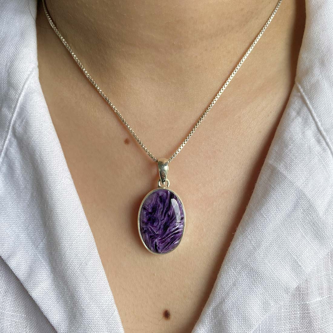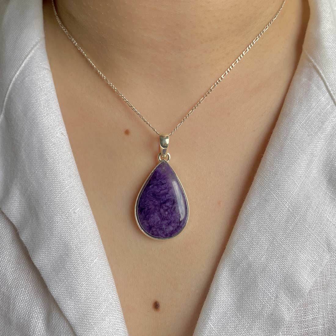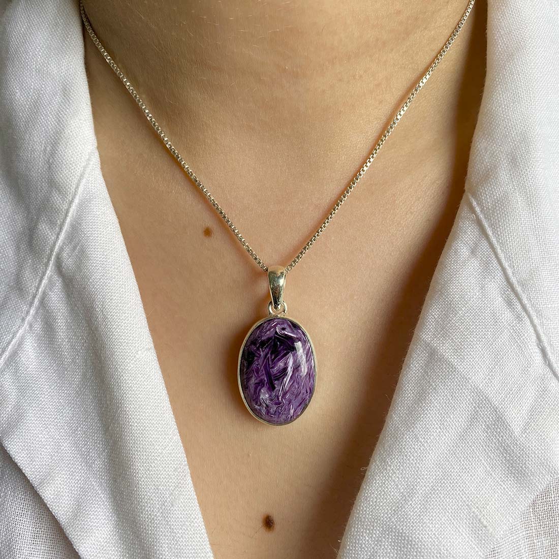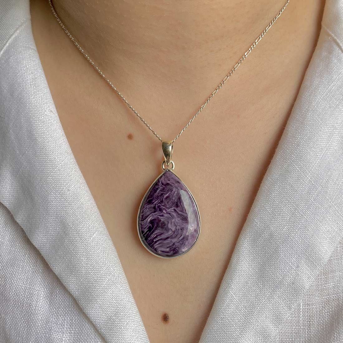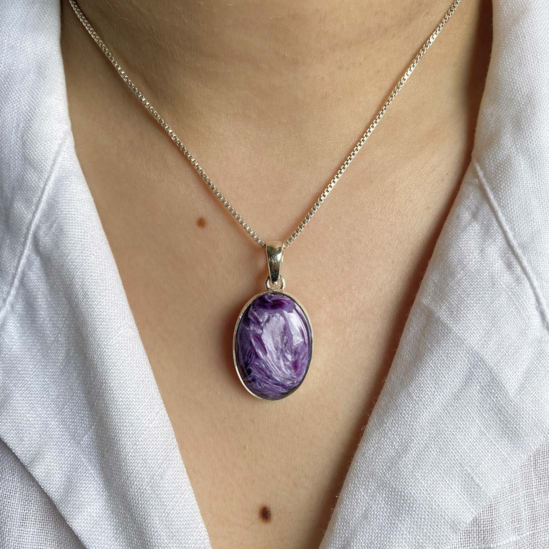 Till today, the charm of stylish and elegant gemstone pendants like charoite pendants is intact.. They come in different sizes and shapes, which you can mix and match with other materials and layering pieces to create a unique and striking look. They can be crafted in metal or sometimes with diamonds or gemstones, or they can be dainty and minimalist or large and statement eye-capturing. But whatever type of pendant you wear can bring extra drama and vibes to your look.