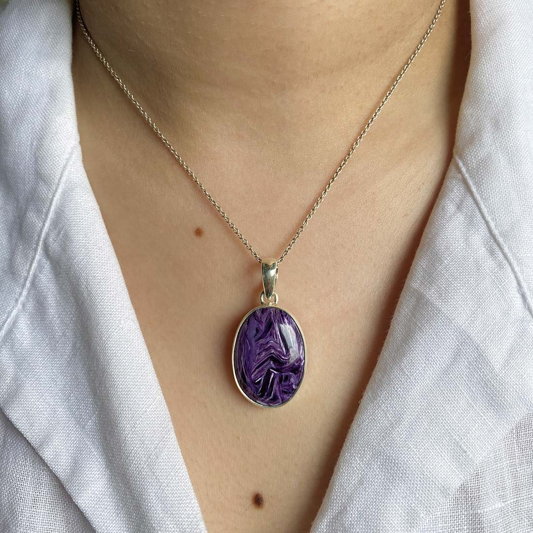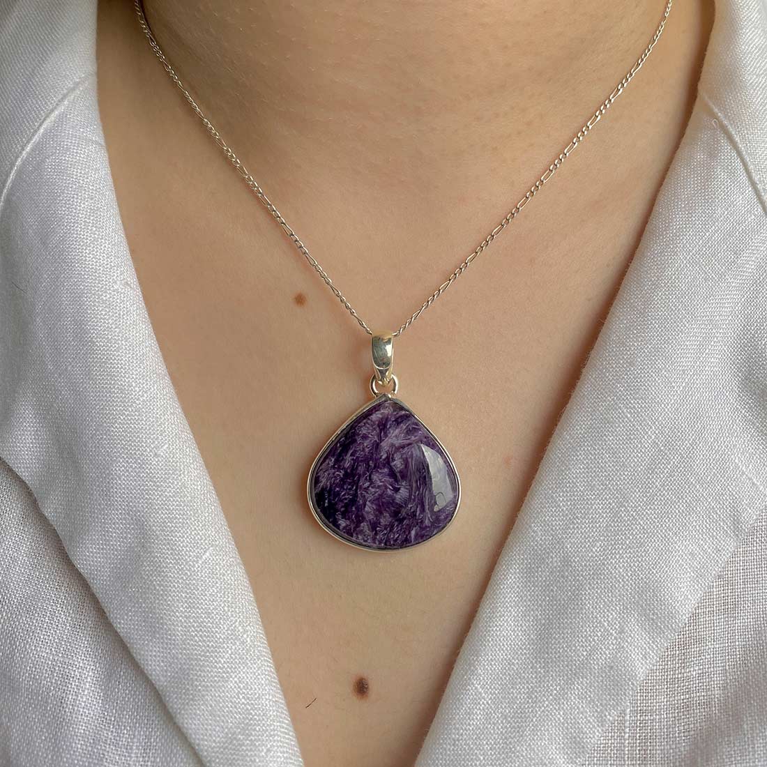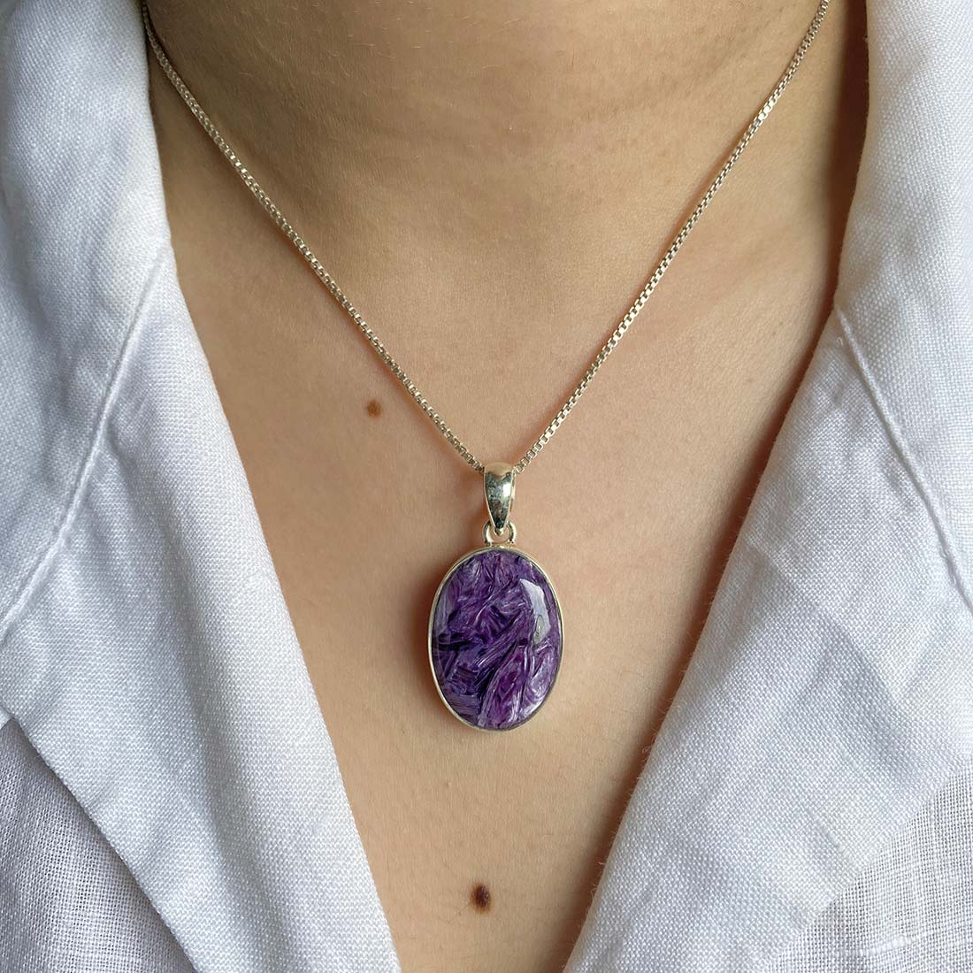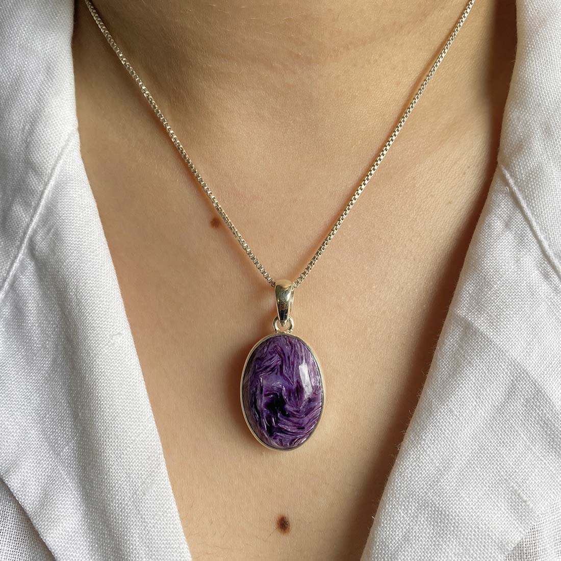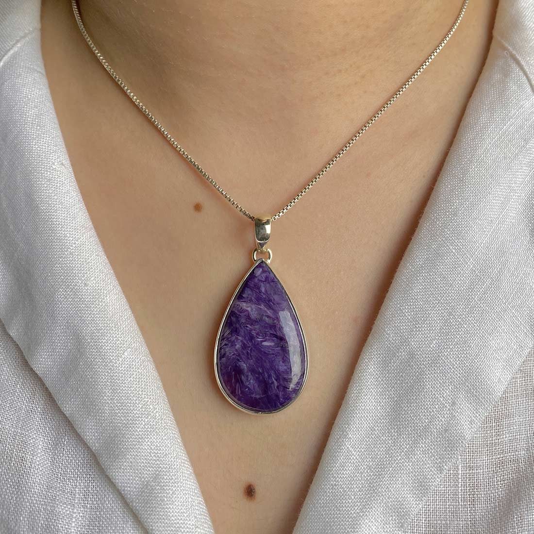 Till today, the charm of stylish and elegant gemstone pendants like charoite pendants is intact.. They come in different sizes and shapes, which you can mix and match with other materials and layering pieces to create a unique and striking look. They can be crafted in metal or sometimes with diamonds or gemstones, or they can be dainty and minimalist or large and statement eye-capturing. But whatever type of pendant you wear can bring extra drama and vibes to your look.