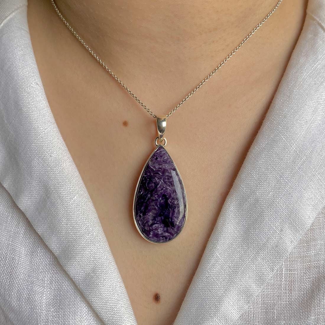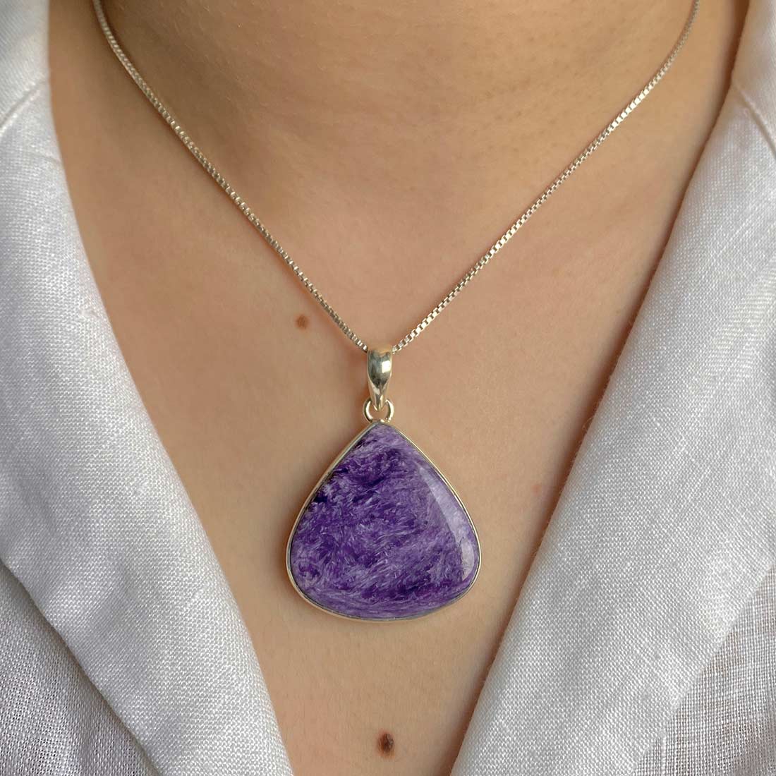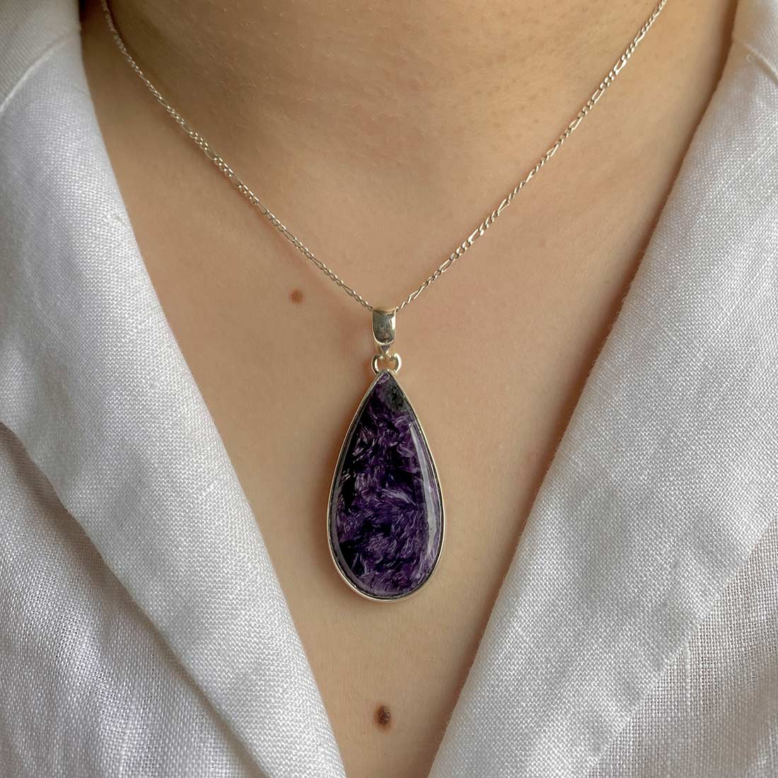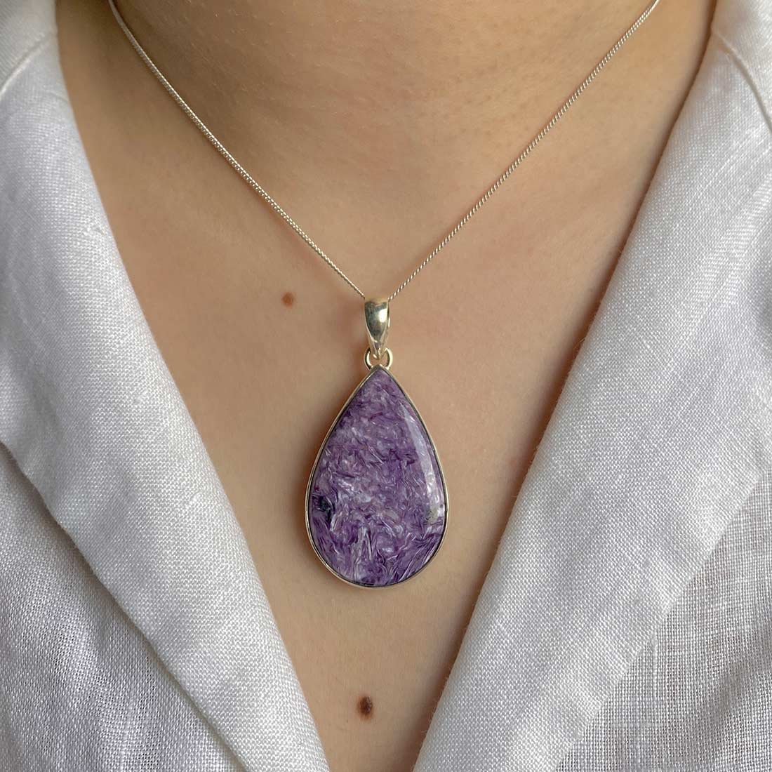 Till today, the charm of stylish and elegant gemstone pendants like charoite pendants is intact.. They come in different sizes and shapes, which you can mix and match with other materials and layering pieces to create a unique and striking look. They can be crafted in metal or sometimes with diamonds or gemstones, or they can be dainty and minimalist or large and statement eye-capturing. But whatever type of pendant you wear can bring extra drama and vibes to your look.