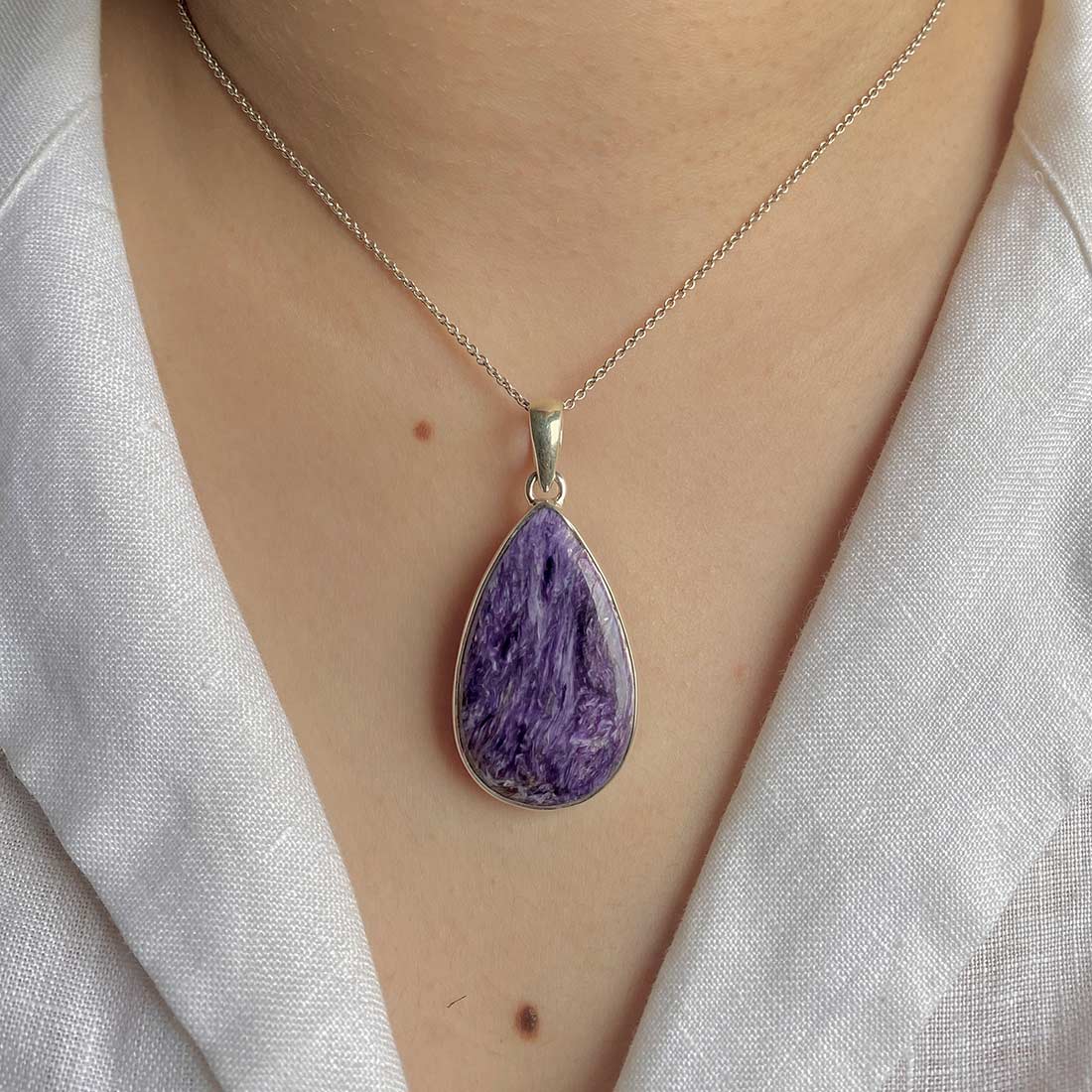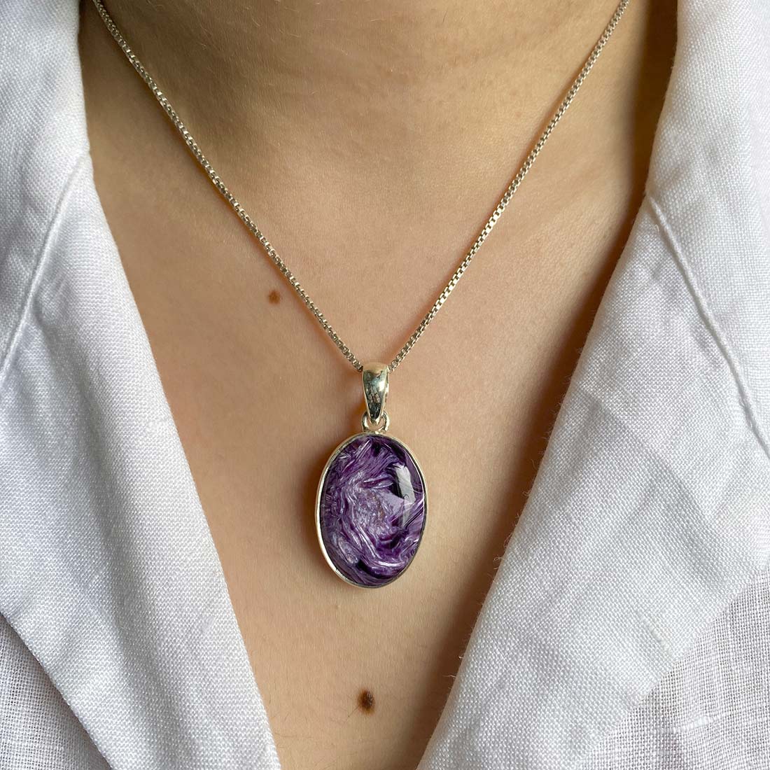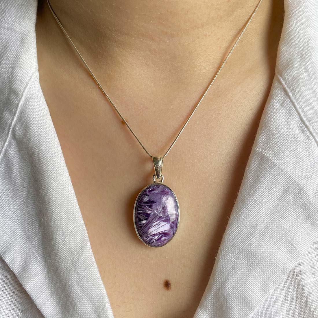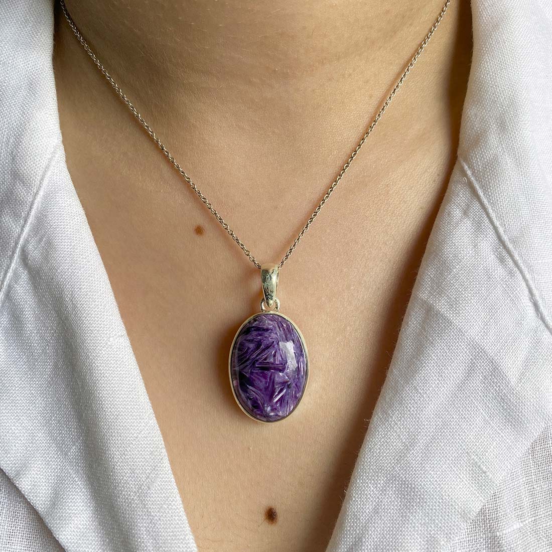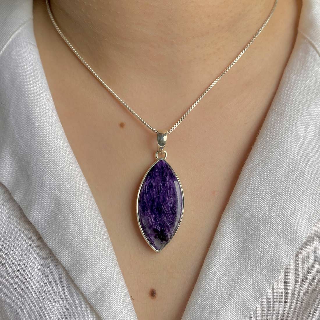 Till today, the charm of stylish and elegant gemstone pendants like charoite pendants is intact.. They come in different sizes and shapes, which you can mix and match with other materials and layering pieces to create a unique and striking look. They can be crafted in metal or sometimes with diamonds or gemstones, or they can be dainty and minimalist or large and statement eye-capturing. But whatever type of pendant you wear can bring extra drama and vibes to your look.