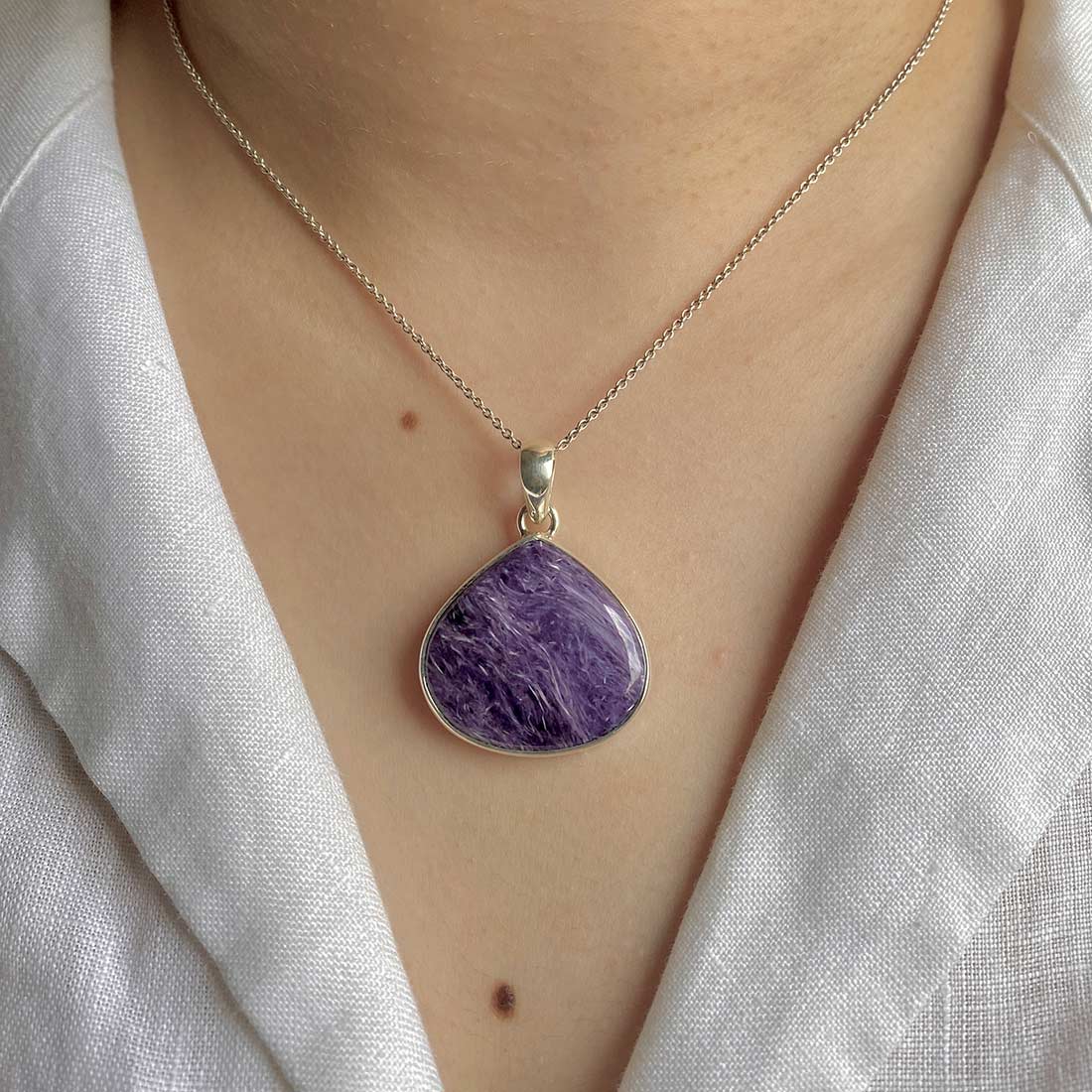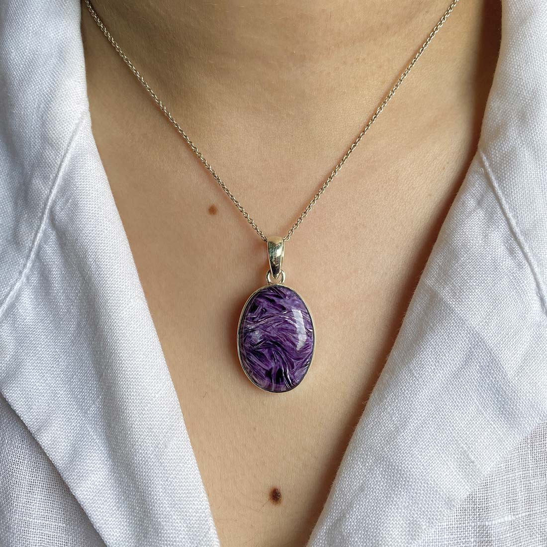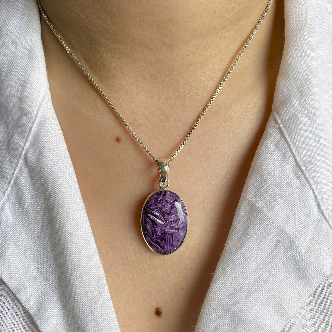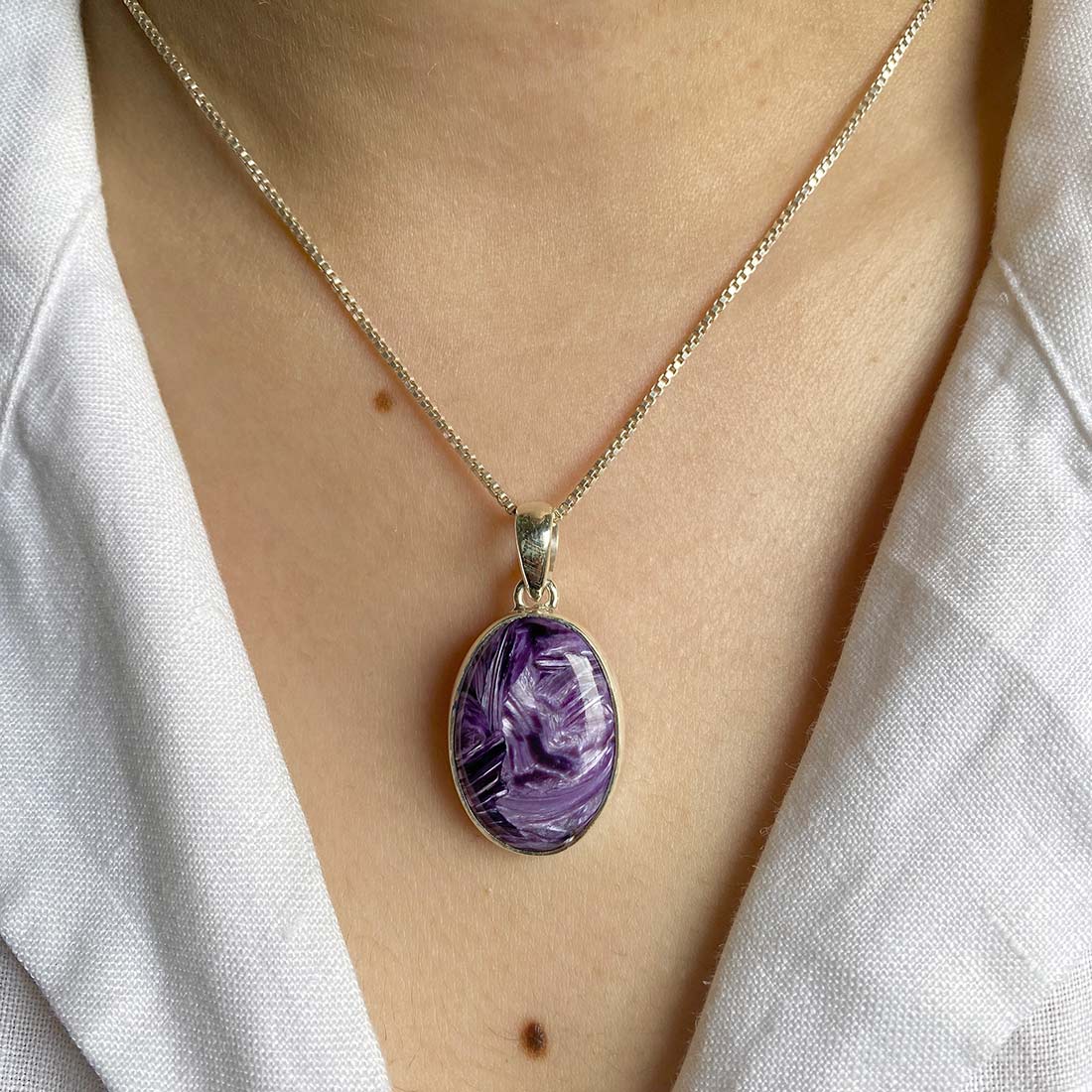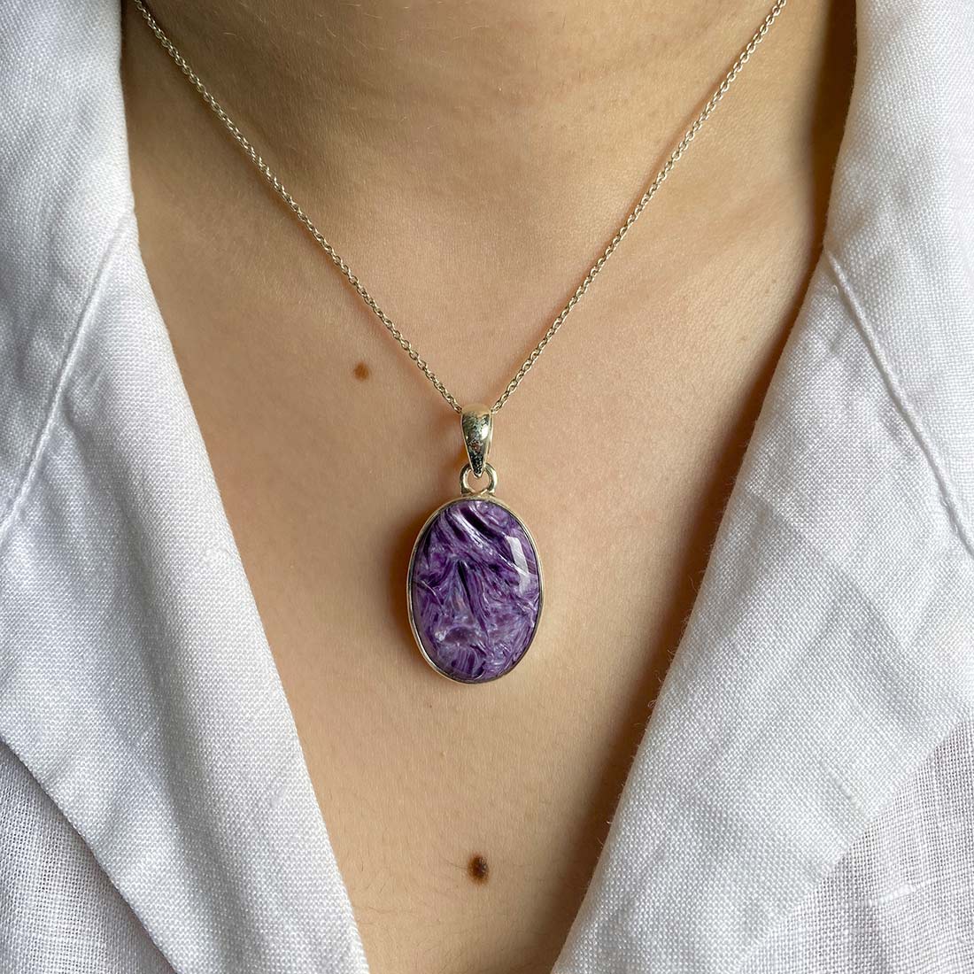 Till today, the charm of stylish and elegant gemstone pendants like charoite pendants is intact.. They come in different sizes and shapes, which you can mix and match with other materials and layering pieces to create a unique and striking look. They can be crafted in metal or sometimes with diamonds or gemstones, or they can be dainty and minimalist or large and statement eye-capturing. But whatever type of pendant you wear can bring extra drama and vibes to your look.