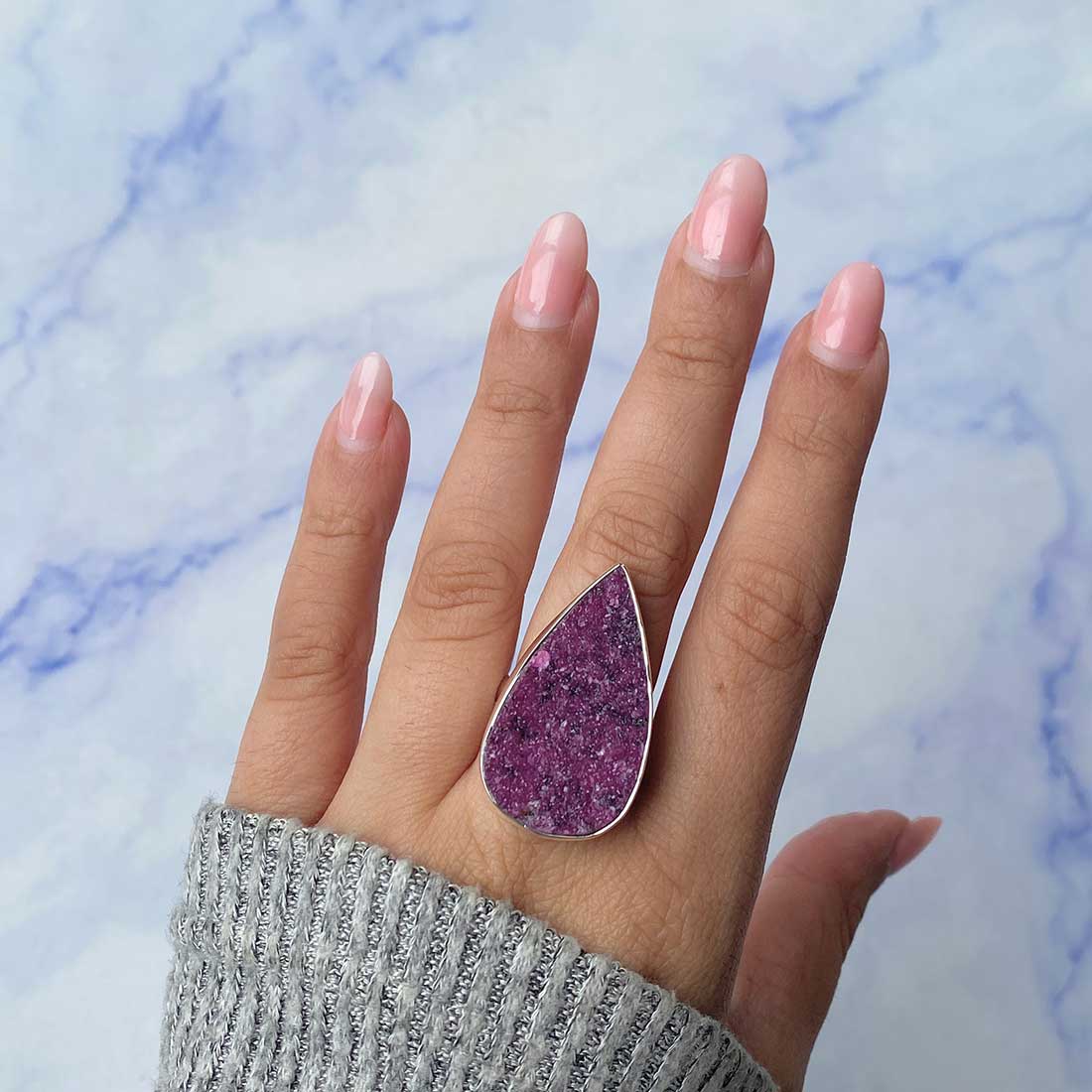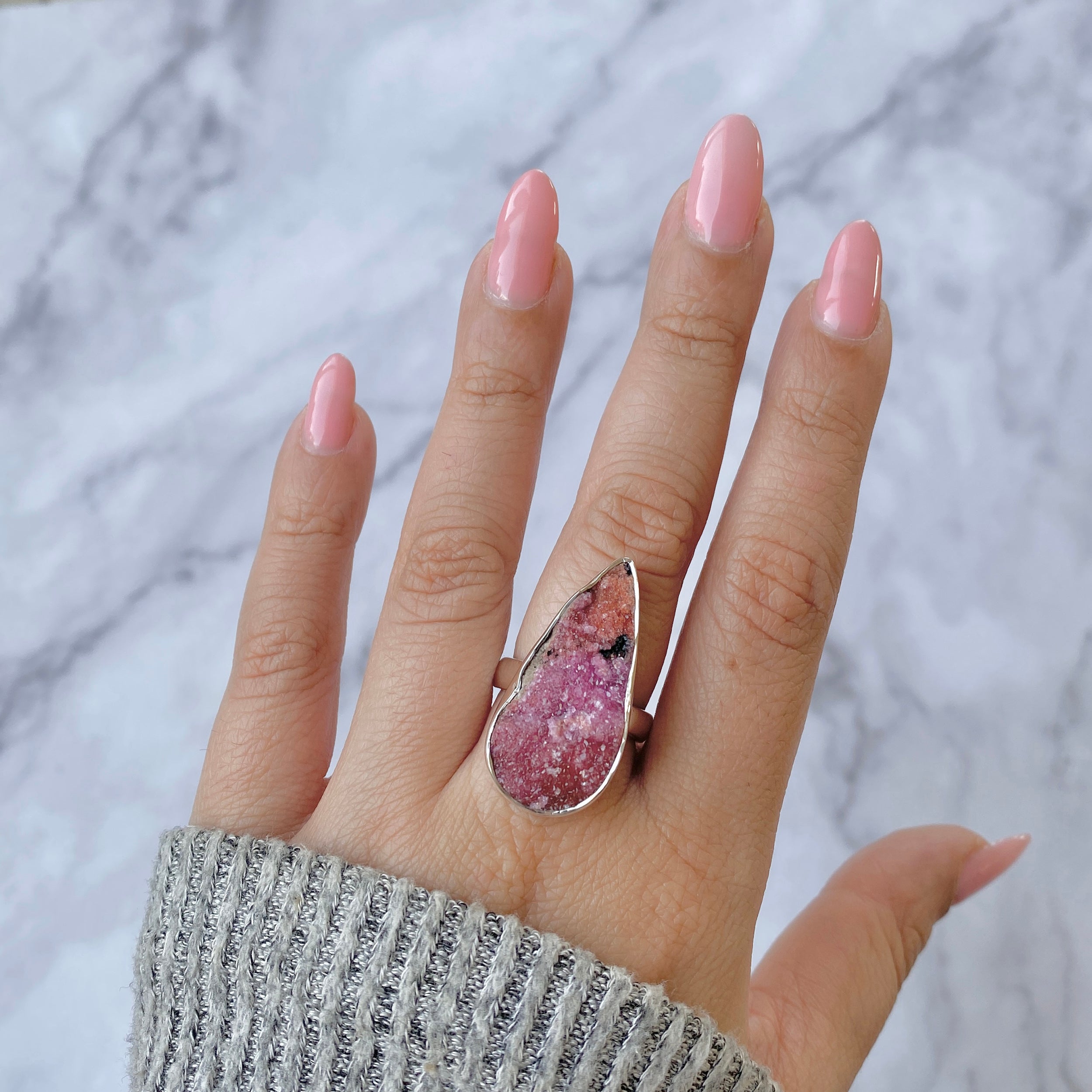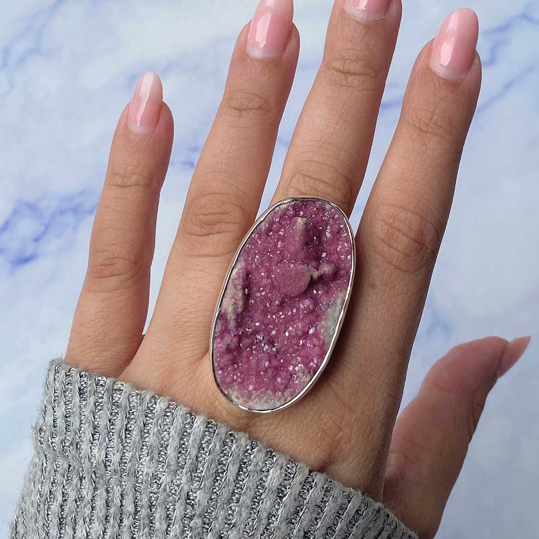 Cobalt Calcite is a mesmerizing stone because of its untextured appearance and reddish-pinkish hue. It is also known as Pink Cobalt Calcite and Cobalto Calcite. It is highly sought after because of its beauty and stunning formation. It is a unique and rare type of calcite because of the cobalt present in it. The more cobalt present in calcite stone, the darker it will be. Cobalt Calcite is a powerful healing stone because of its potent healing powers. Wearing a Cobalt Calcite ring enhances personality and provides healing powers. It is a perfect choice for those who are suffering from mental health issues or physical health. It usually crystallizes as rhombohedral or scalenohedral crystals in the trigonal system. It frequently manifests as botryoidal (grape-like) clumps or druzy crusts.
