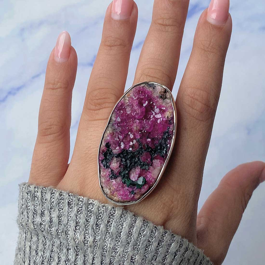 The deep purple color of Amethyst rings complements the reddish-pinkish hue of Cobalt Calcite, creating a striking contrast. Furthermore, combining Cobalt Calcite with Lapis rings can amplify its healing energies and provide overall balance and clarity. The transparent and pure nature of Blue Topaz rings accentuates the beauty of Cobalt Calcite in a combination that is both visually appealing and spiritually uplifting. These gemstone pairings can create exquisite and meaningful jewelry pieces that offer aesthetic appeal and carry powerful healing and spiritual benefits.
