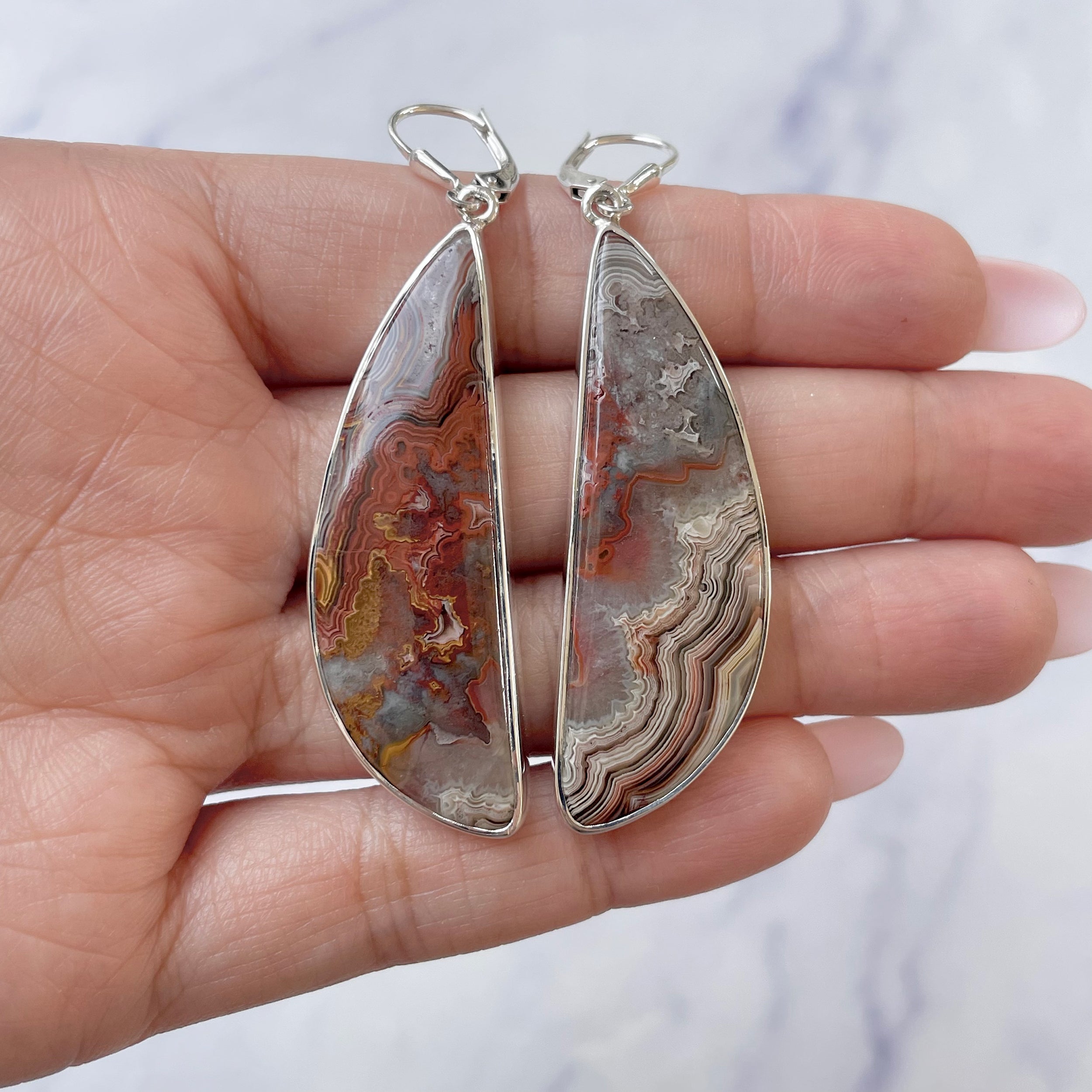 Crazy Lace Agate, also known as Mexican Agate, is exclusively found in Chihuahua, Mexico, and is known for its astonishing banding and swirling patterns in a broad color palate, such as white, red, orange, gray, yellow, brown, etc. Their intricate yet interesting lace-like or woven-like appearance, wrapped within translucent to opaque aesthetics, are highly preferred in exceptional and unusual sterling silver Jewelry pieces, especially Crazy Lace Agate earrings that elevate our style and let our radiant personality exhibit their own aura at an event.
