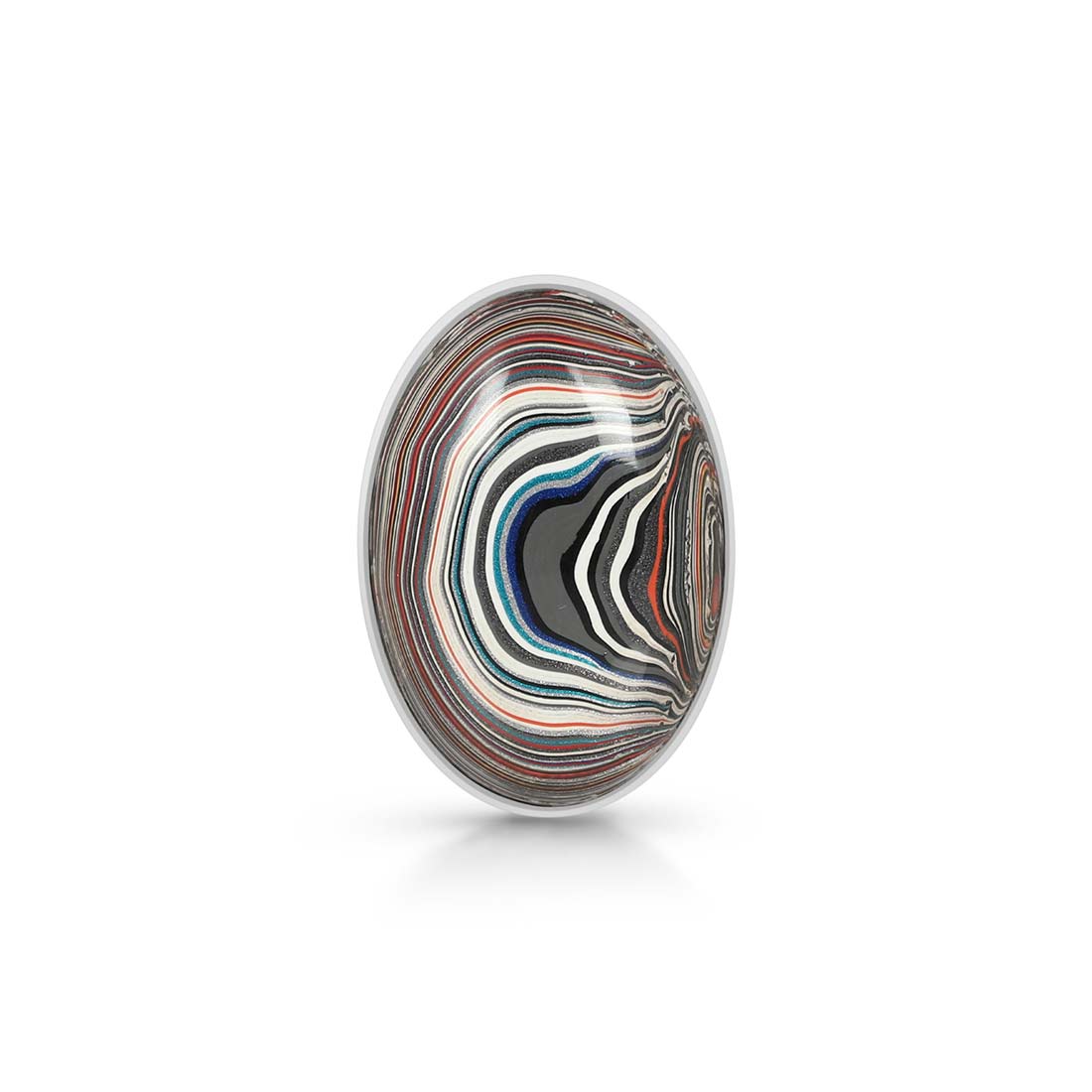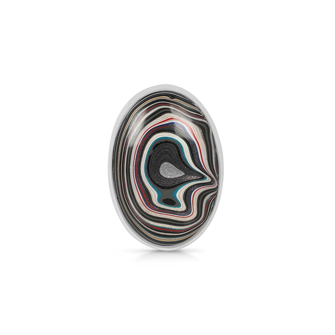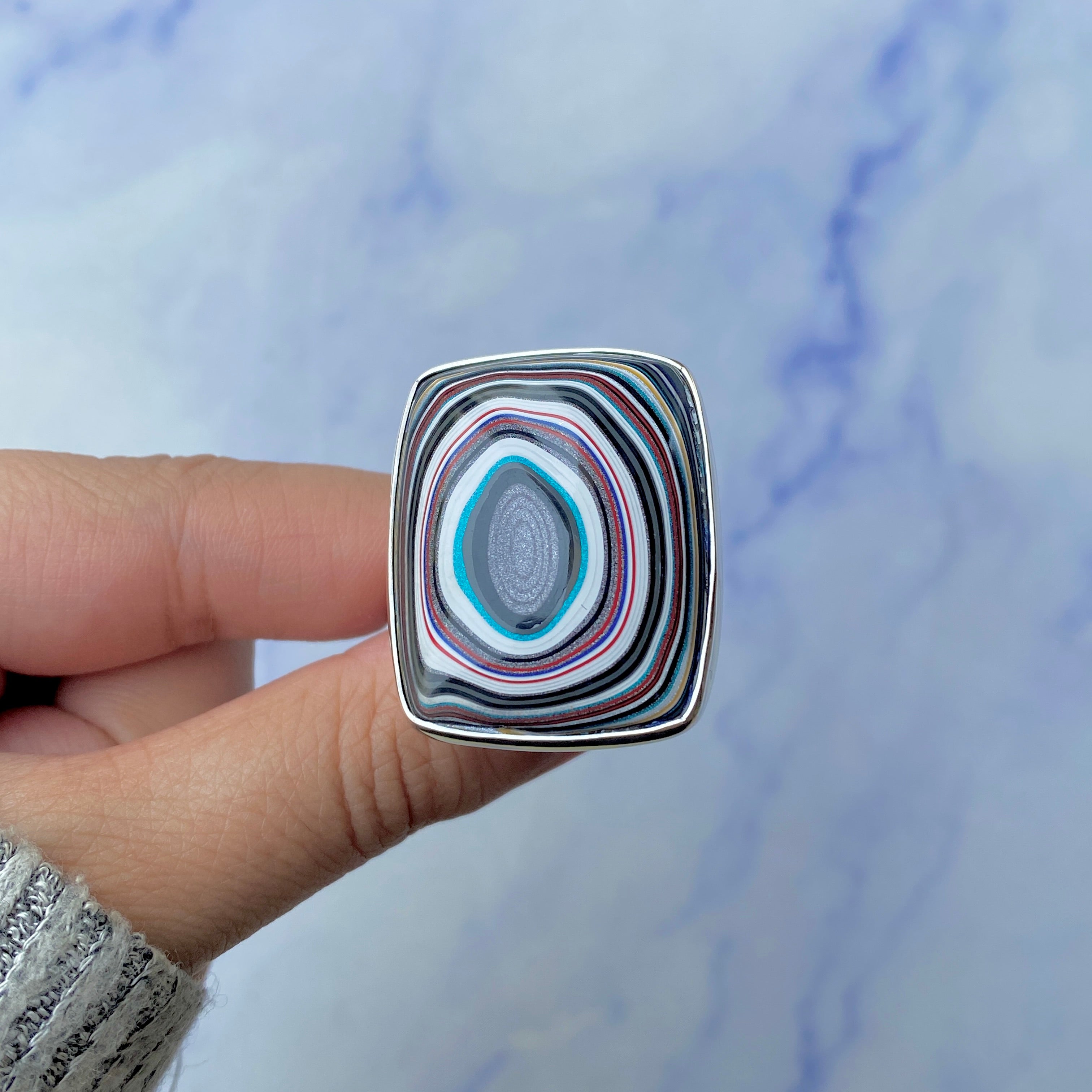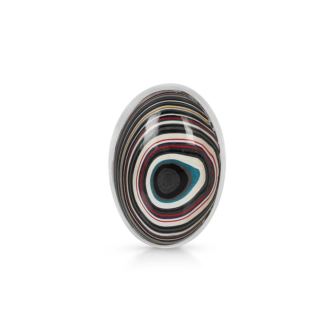 From its first discovery to the present time, this spectacular stone, or we say, an accumulated paint transformed into a rock, has created sumptuous Fordite rings, showcasing intricate patterns and a diverse range of colors in your fingers, from blue to red, bright yellow to gorgeous green, and even gray. Its vibrant color palate and lustrous structure with head-turning aesthetics make the stone suitable for every attire and occasion. It is a one-of-a-kind stone, setting new standards in the Jewelry industry. Each piece is a peak of creativity and stands out in the crowd by adding a vibrant splash of colors, gazing through every visible layer.