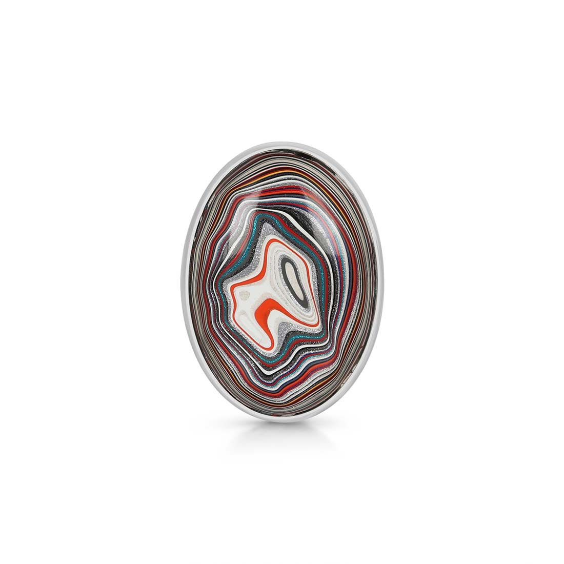 At that time, some plant workers took these little pieces of wonder with them as souvenirs for their families, while some were extremely attracted by the unconventional beauty of these hardened rocks. After being chipped off, these vibrant pieces of wonder are cut, treated, and polished by skilled Jewelry artisans to bring out their best version, which would dominate in the Jewelry industry. After a meticulous cutting, these rocks revealed a wide range of colorful layering, including metallic-like glittery silver and gold, along with exquisite banding and swirling patterns. No wonder this accidental man-made stone is creating alluring Fordite Jewelry pieces, be it Fordite wedding rings, Fordite pendants, or Fordite bracelets.