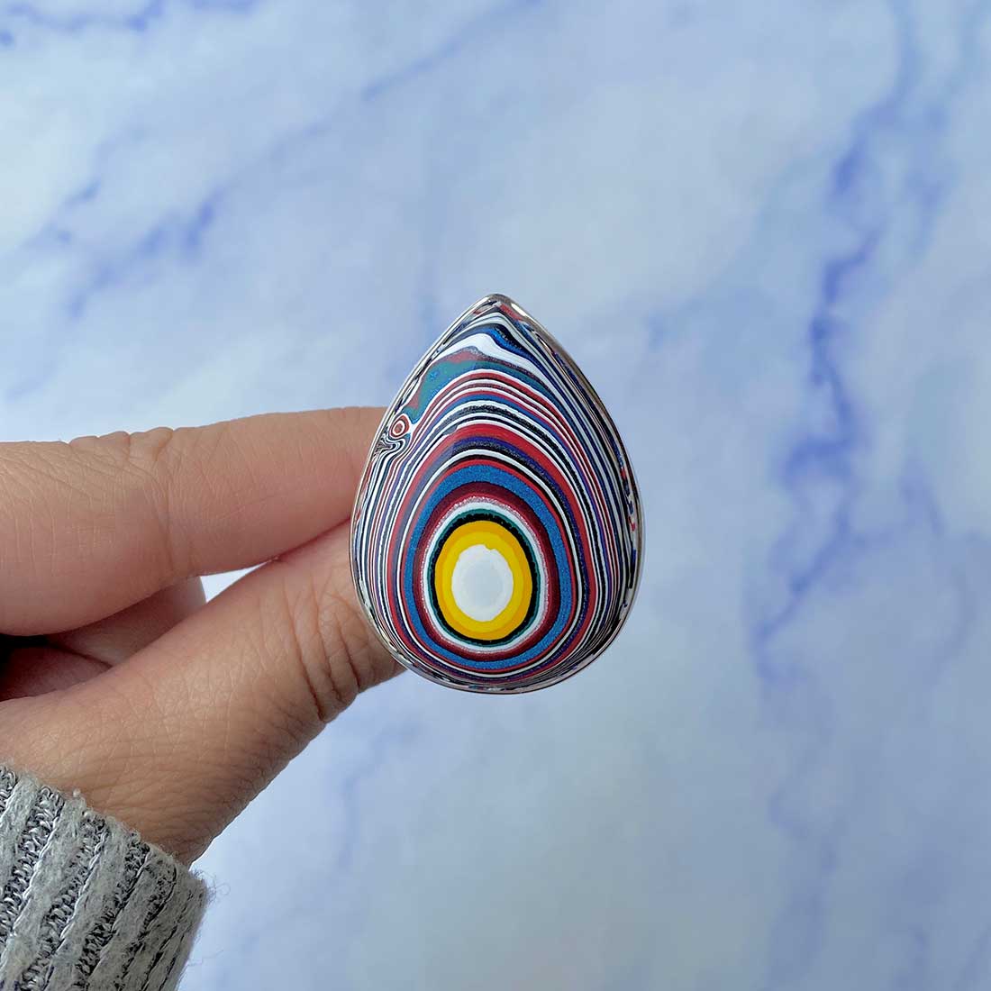 A closer look at this mesmerizing stone can make anyone can fall in love with Fordite, embedded into pure 925 sterling silver Jewelry. Its captivating combination of colors and random patterns through the surface could be styled in many ways to complement every look. Whether formal, casual, bohemian, vintage, streetwear or an evening party, its versatility invites Jewelry-lovers to experiment with their overall looks.