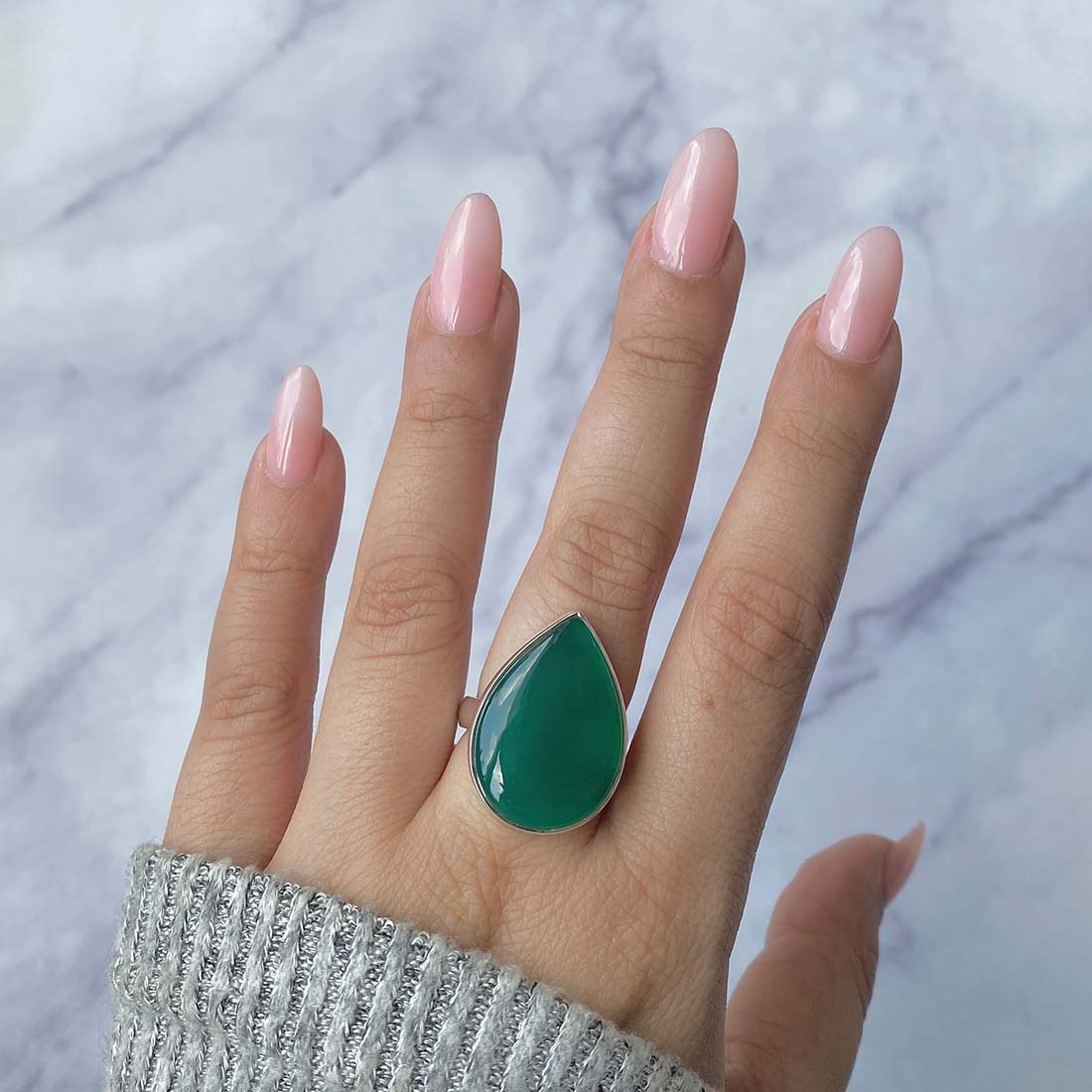 While searching for a perfect piece of accessory to help us achieve our compelling look, we come across various types, from necklaces and earrings to pendants, anklets, and chains. But as far as we are concerned about selecting a statement piece, nothing can beat the charm and magic of these chunky and stylish rings. Rings are undoubtedly our first weapon when transforming our ordinary-looking outfits into extraordinary ones. Apart from being one of the most common accessories, rings are more accessible to style and complement the rest of the outfit effortlessly. Whenever we want to make a remembering statement or add a touch of elegance and grace, stylish rings always come as an evergreen answer. If you really want to bring out the best version of your statement rings, we would suggest adding Green Onyx to them. As its name suggests, it is a spectacular green-colored crystal that creates heart-melting green Onyx Jewelry, especially statement green onyx rings carrying a glass-like finish, lustrous sparkle, and translucent to opaque appearance.