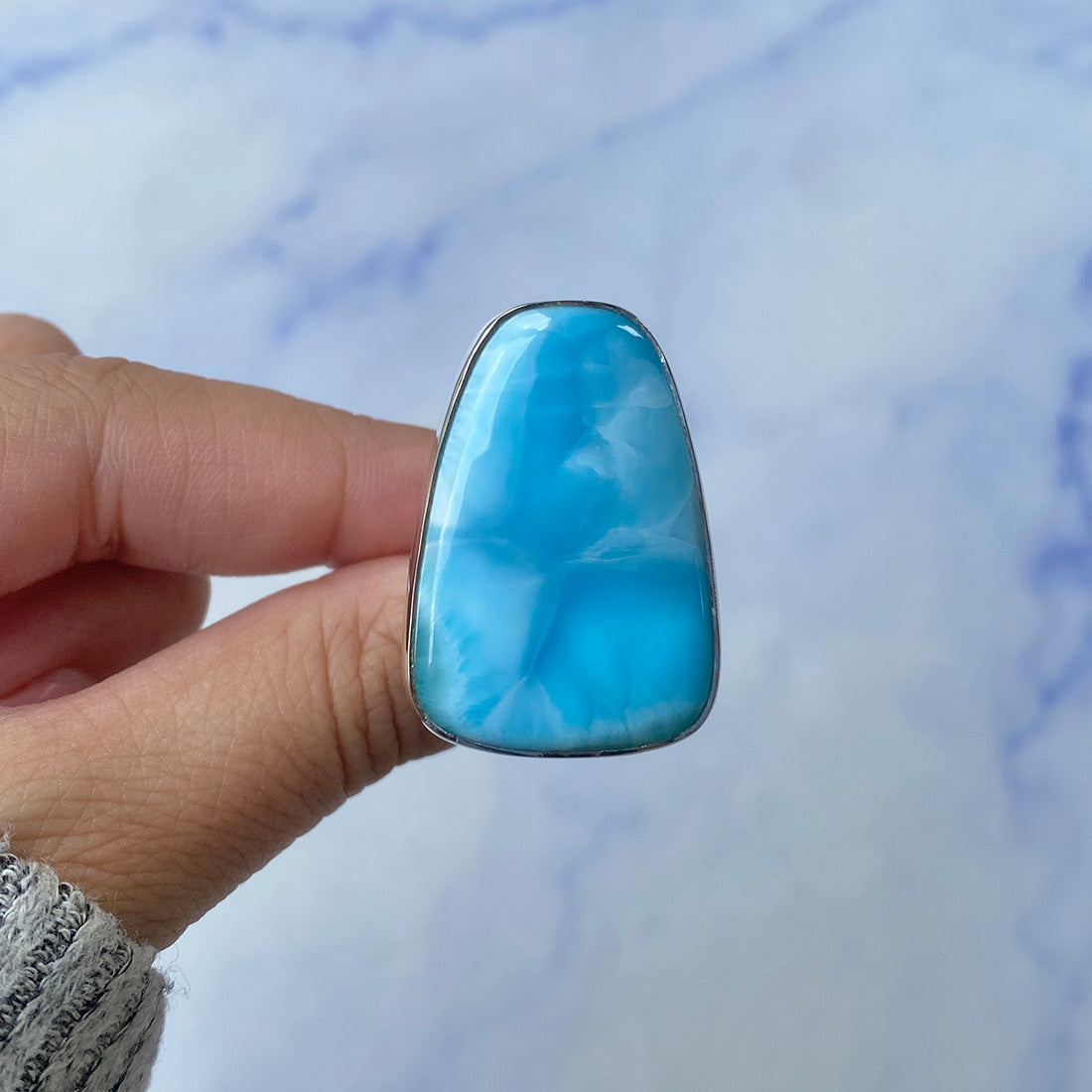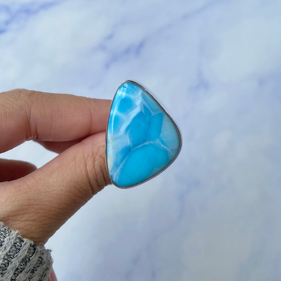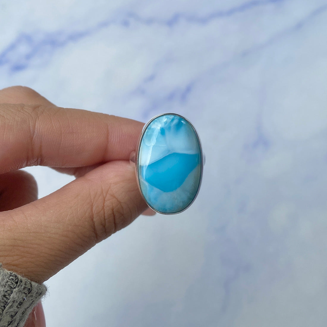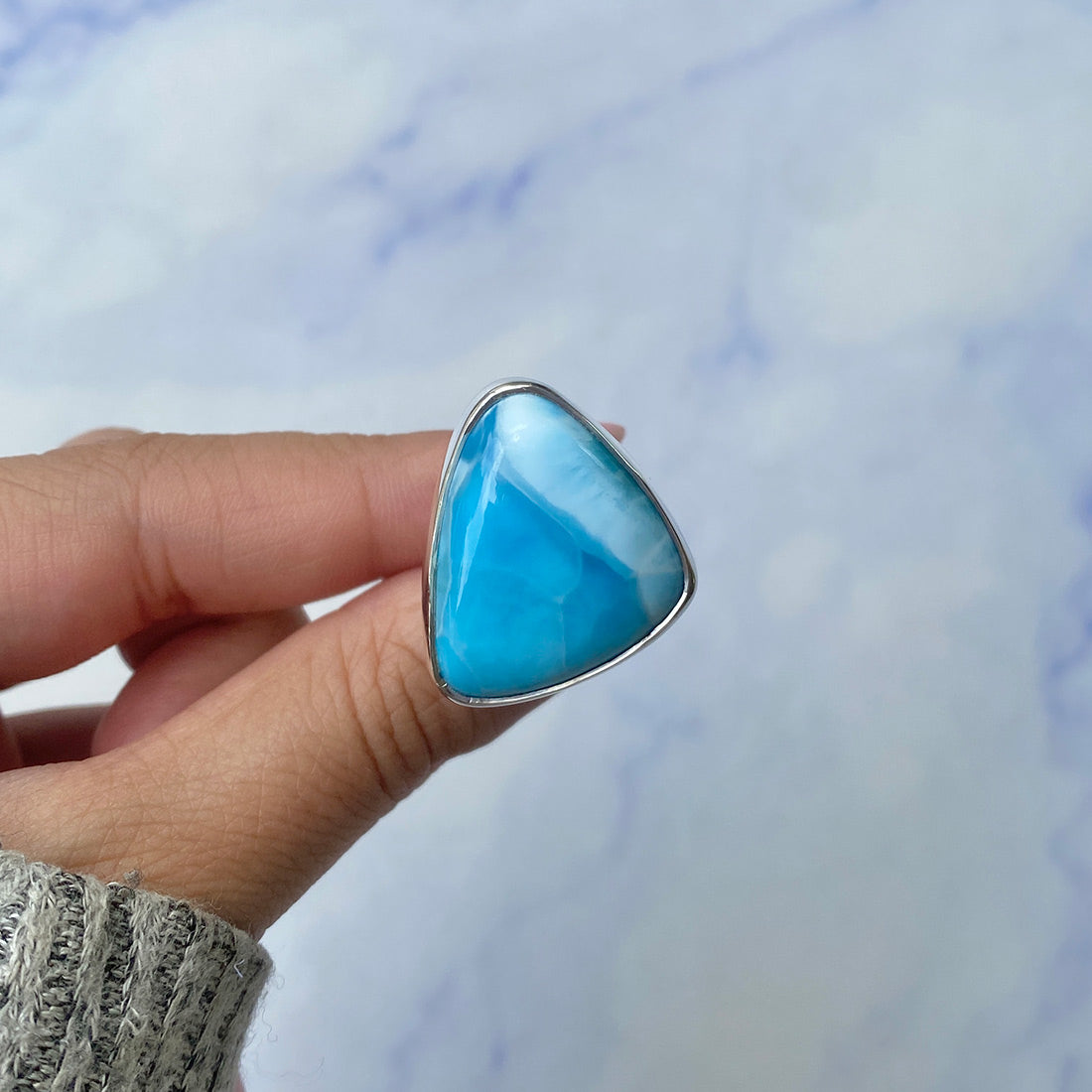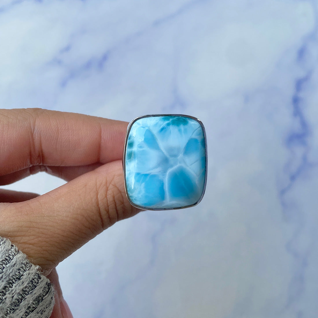Larimar rings are thought to provide a number of therapeutic benefits. It is claimed to give relaxation and lessen tension and anxiety in the wearer by having a calming and soothing impact. Larimar's stunning blue hue is frequently connected to the sky and the ocean, fostering calm and peace. Some people think that wearing Larimar jewelry, such as Larimar bracelets, earrings, Larimar pendants, and necklaces, can aid in calming the mind and promoting inner peace.