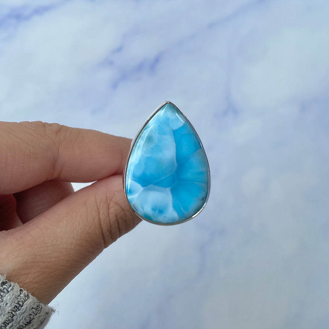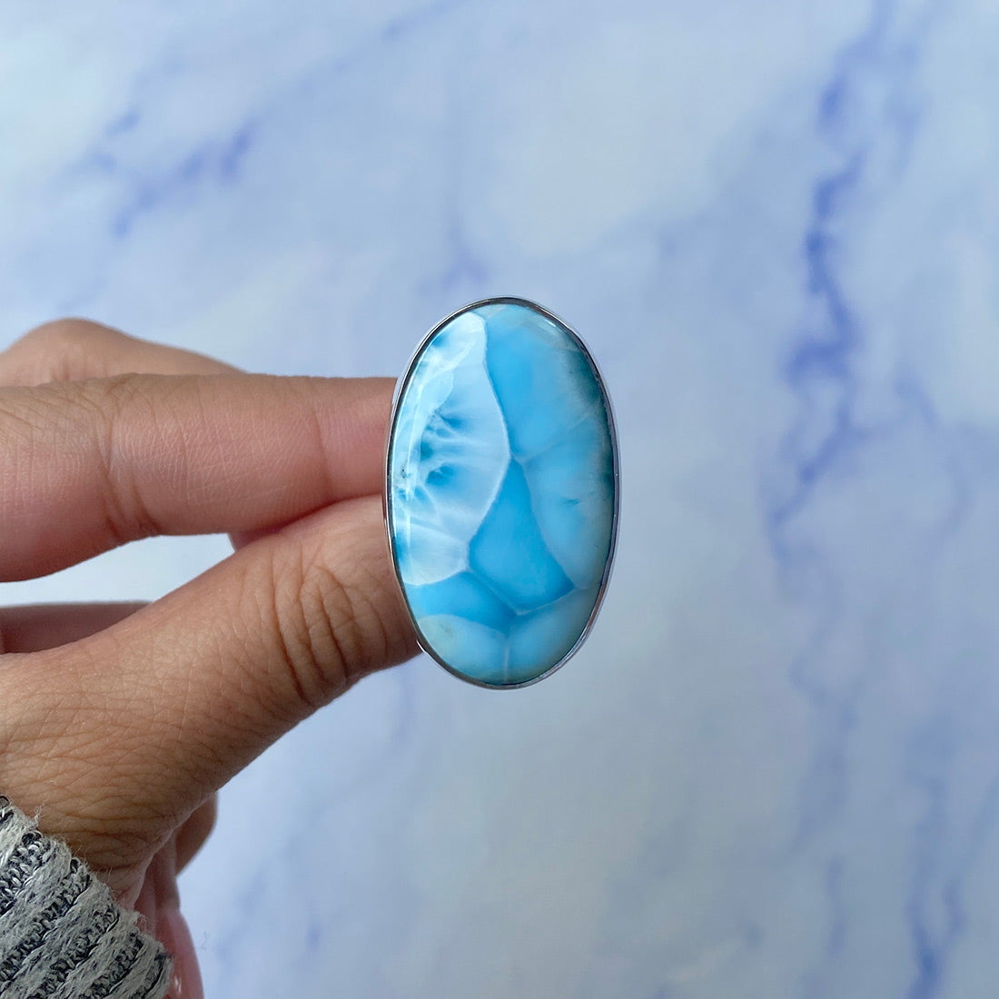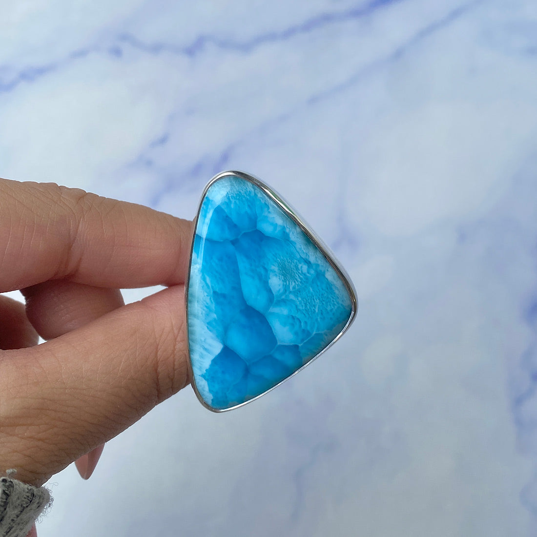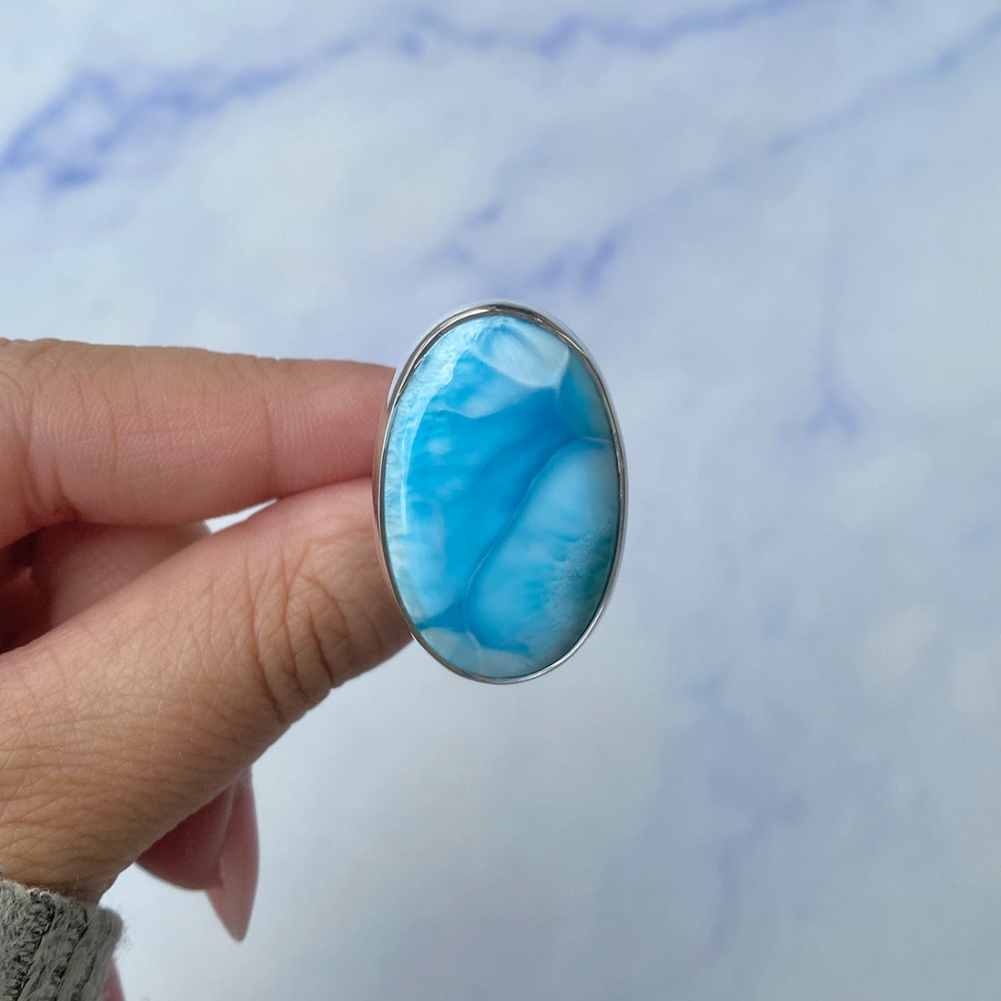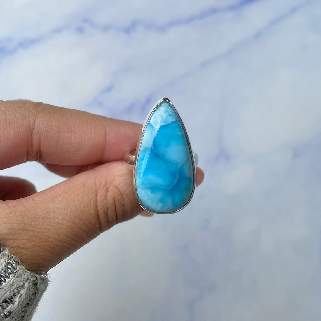 Larimar rings are thought to provide a number of therapeutic benefits. It is claimed to give relaxation and lessen tension and anxiety in the wearer by having a calming and soothing impact. Larimar's stunning blue hue is frequently connected to the sky and the ocean, fostering calm and peace. Some people think that wearing Larimar jewelry, such as Larimar bracelets, earrings, Larimar pendants, and necklaces, can aid in calming the mind and promoting inner peace.
