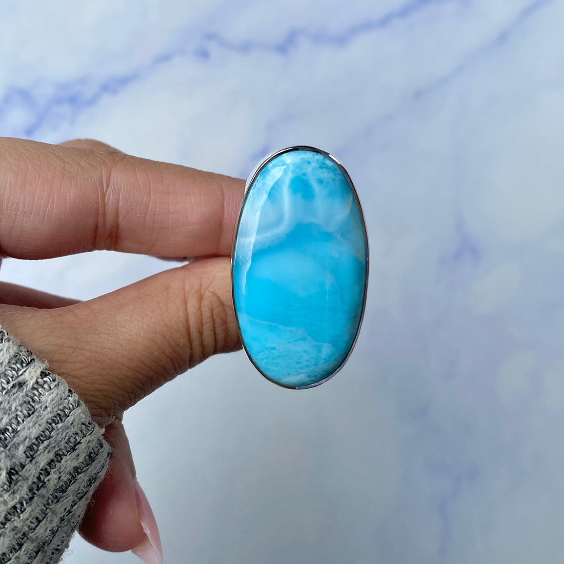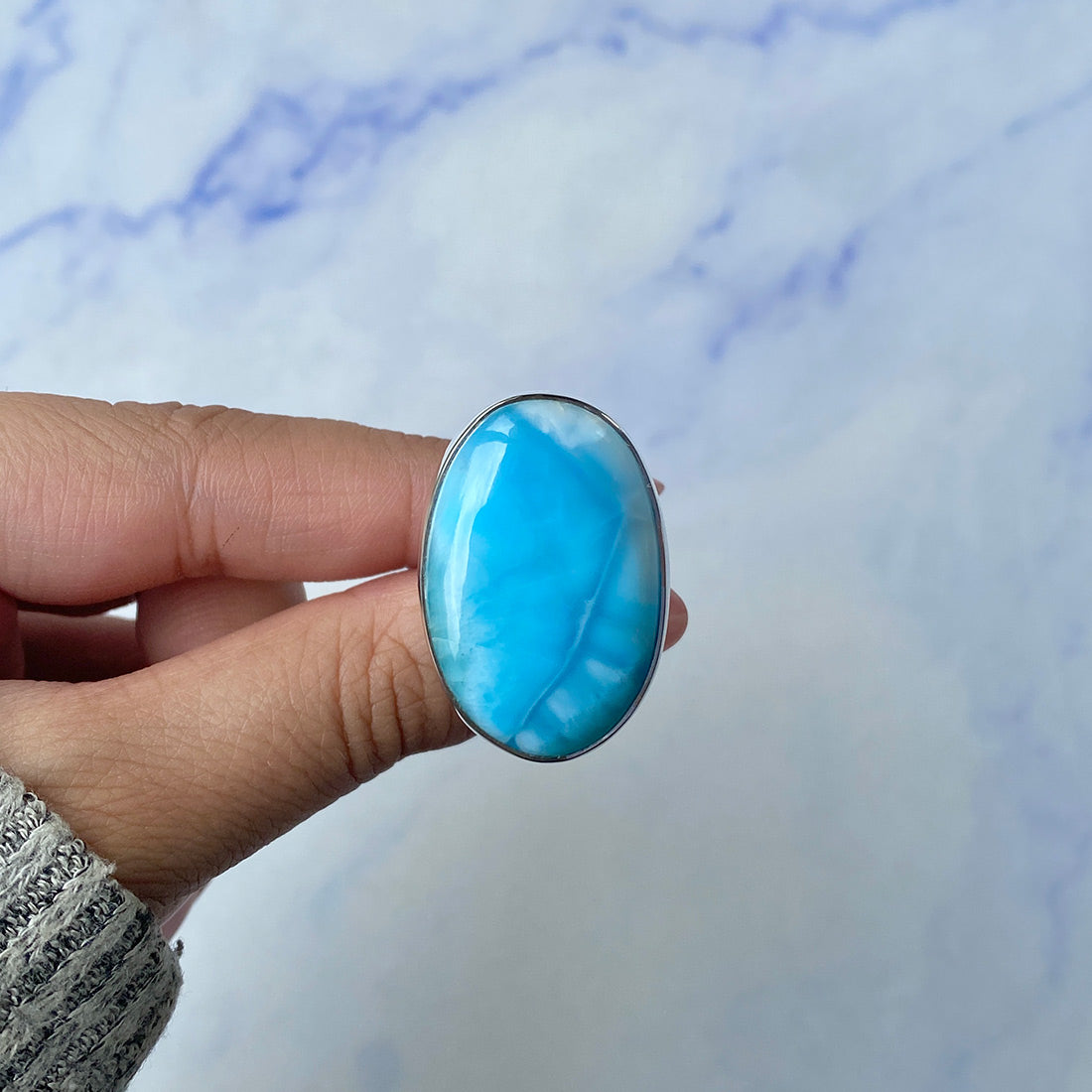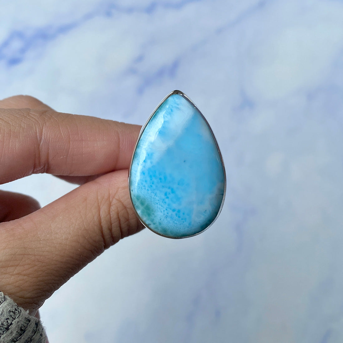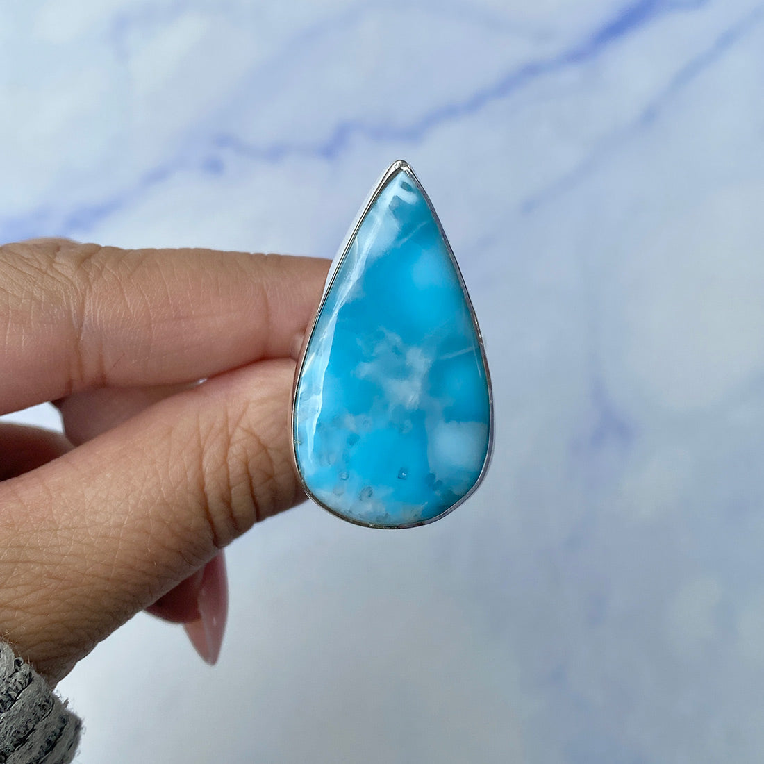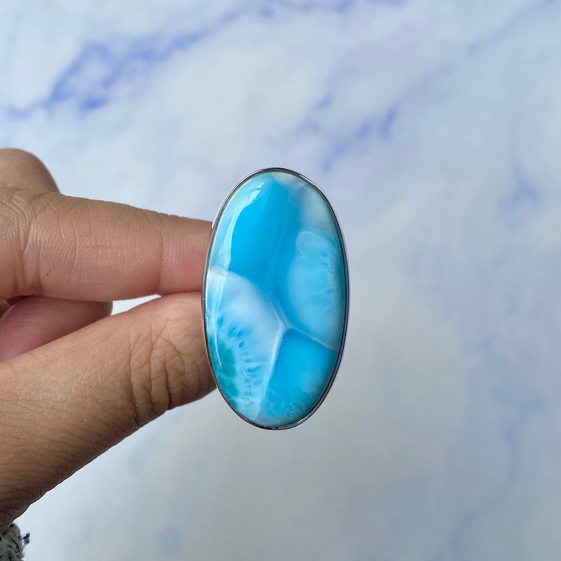 Larimar rings are thought to provide a number of therapeutic benefits. It is claimed to give relaxation and lessen tension and anxiety in the wearer by having a calming and soothing impact. Larimar's stunning blue hue is frequently connected to the sky and the ocean, fostering calm and peace. Some people think that wearing Larimar jewelry, such as Larimar bracelets, earrings, Larimar pendants, and necklaces, can aid in calming the mind and promoting inner peace.