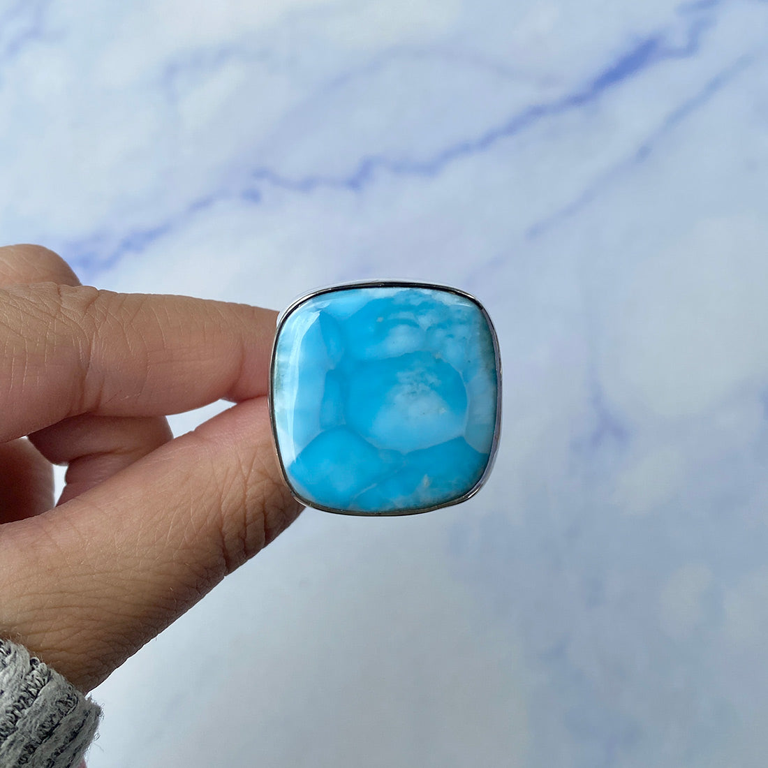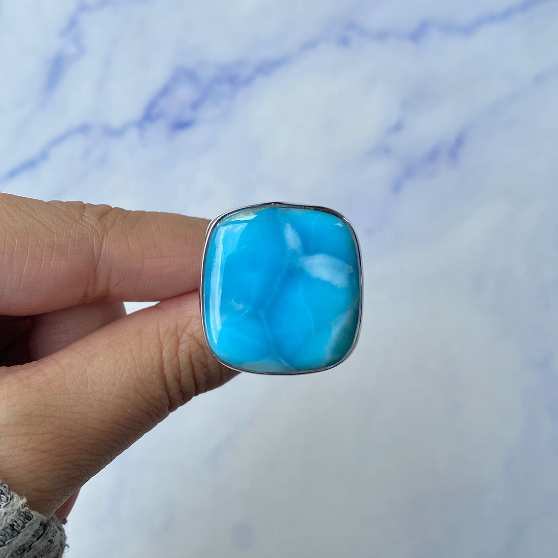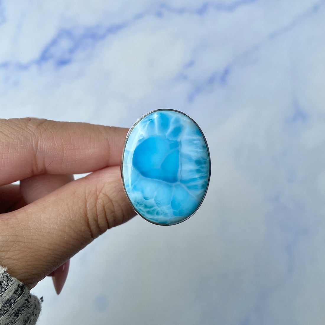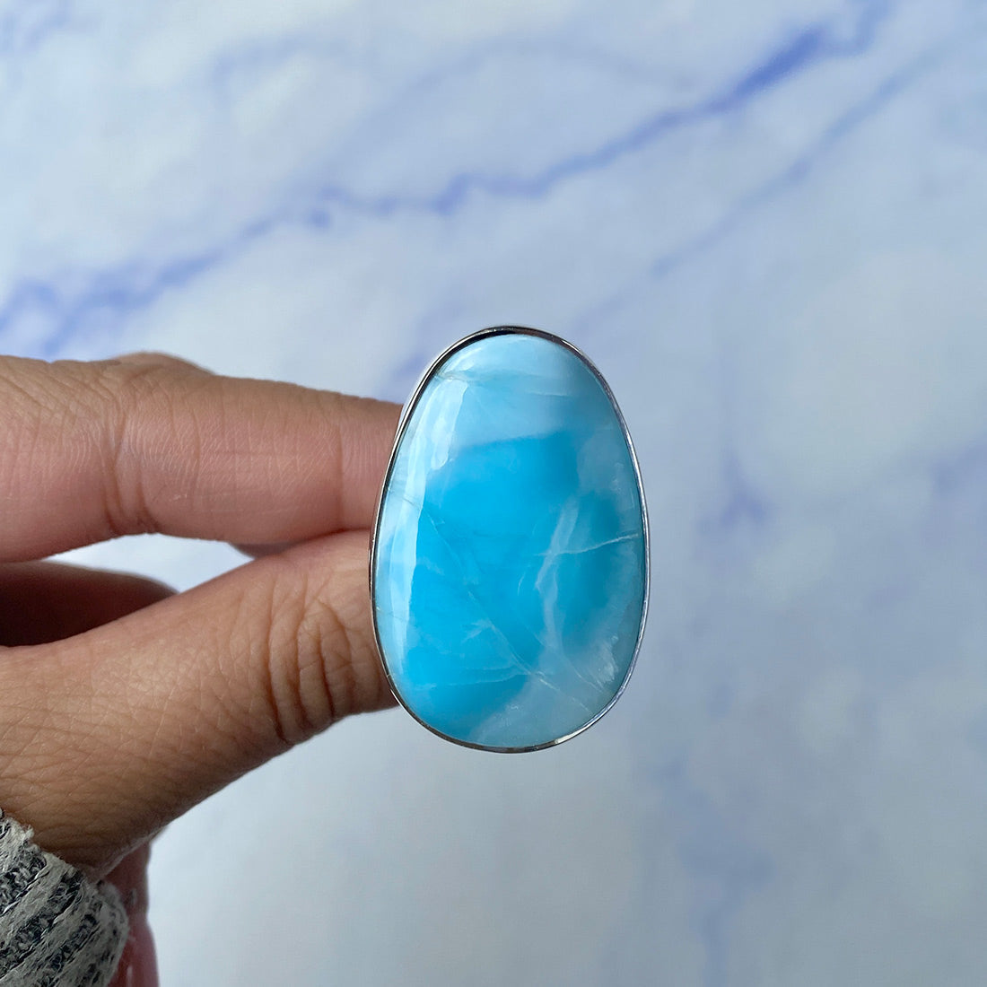Larimar rings are thought to provide a number of therapeutic benefits. It is claimed to give relaxation and lessen tension and anxiety in the wearer by having a calming and soothing impact. Larimar's stunning blue hue is frequently connected to the sky and the ocean, fostering calm and peace. Some people think that wearing Larimar jewelry, such as Larimar bracelets, earrings, Larimar pendants, and necklaces, can aid in calming the mind and promoting inner peace.
