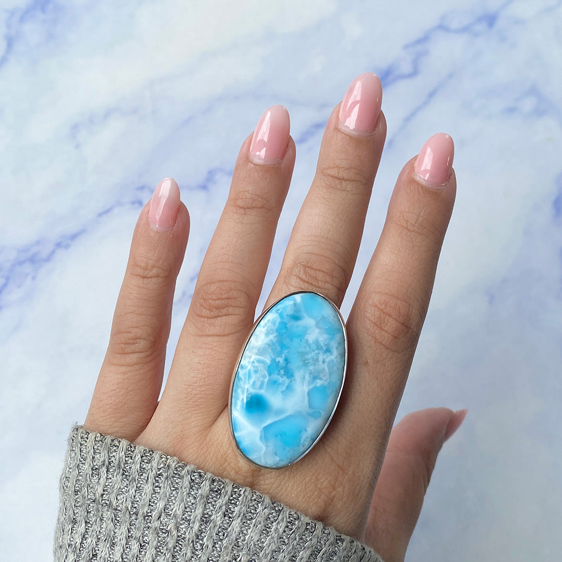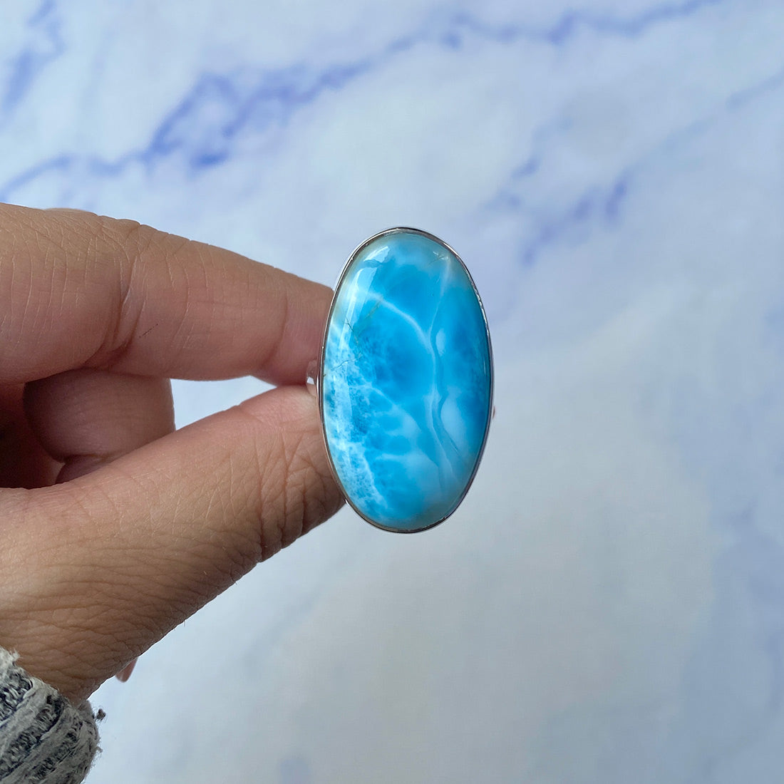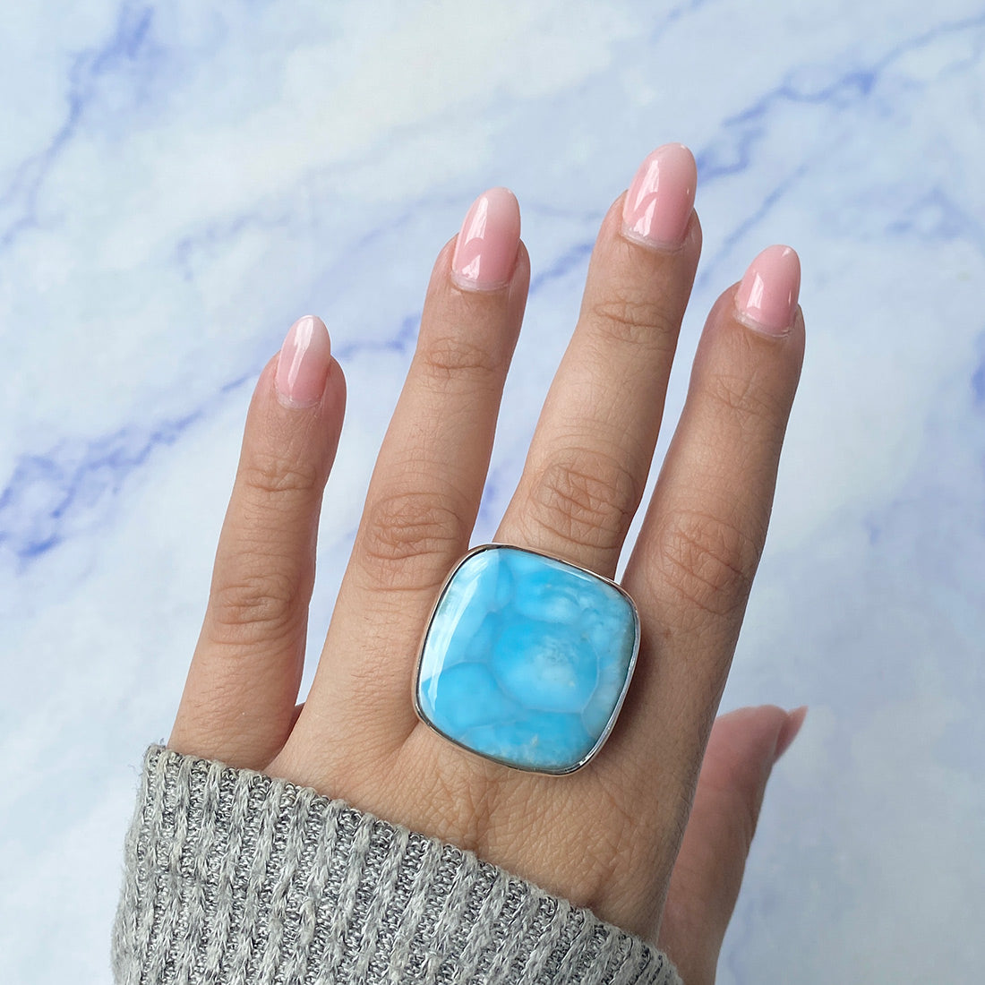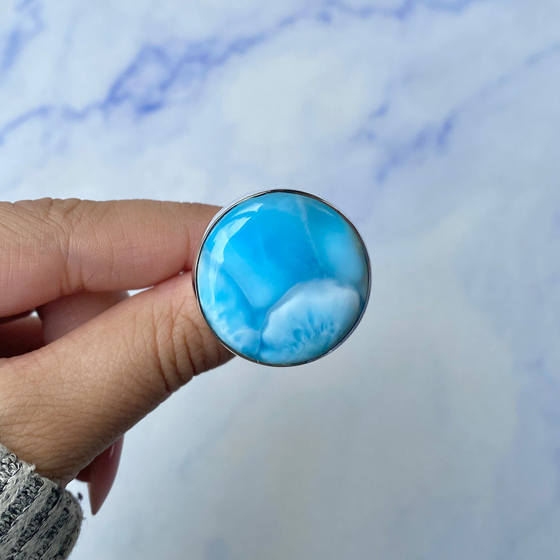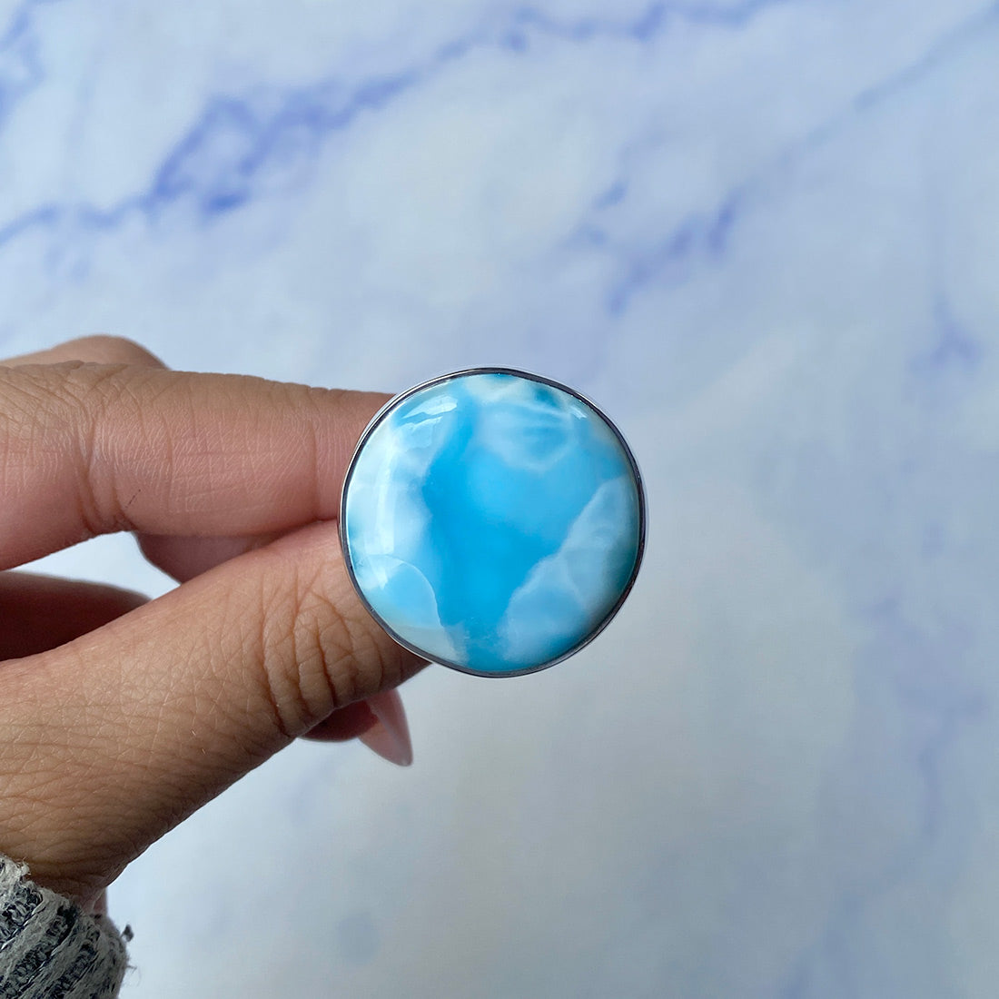 Larimar rings are thought to provide a number of therapeutic benefits. It is claimed to give relaxation and lessen tension and anxiety in the wearer by having a calming and soothing impact. Larimar's stunning blue hue is frequently connected to the sky and the ocean, fostering calm and peace. Some people think that wearing Larimar jewelry, such as Larimar bracelets, earrings, Larimar pendants, and necklaces, can aid in calming the mind and promoting inner peace.