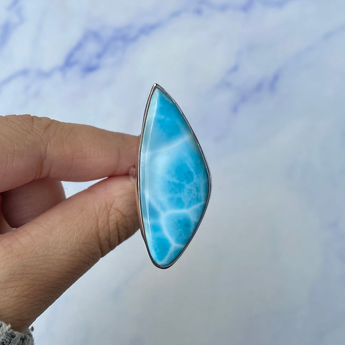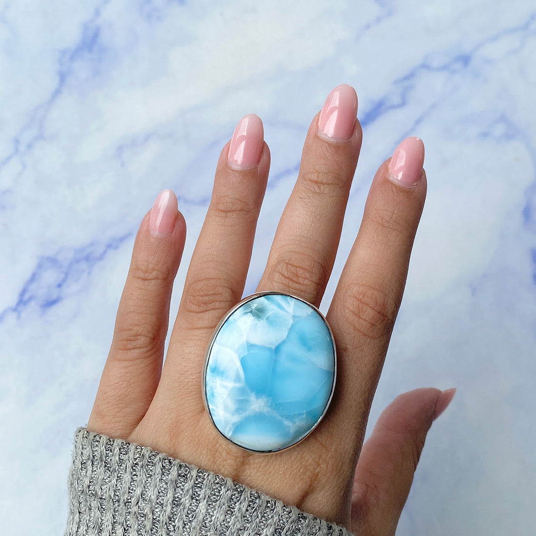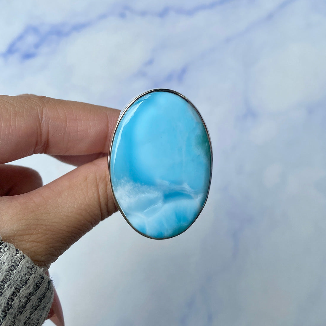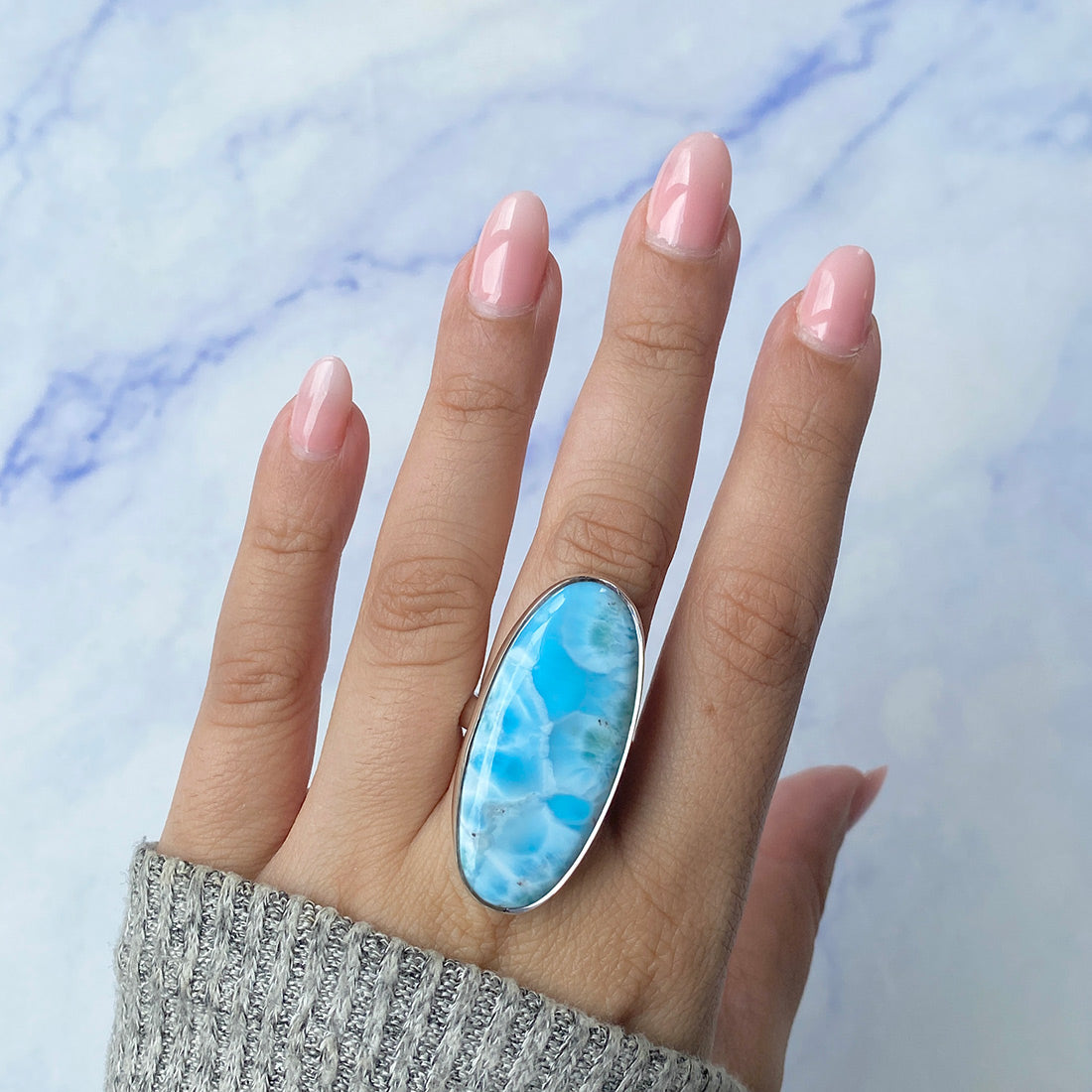 Larimar rings are thought to provide a number of therapeutic benefits. It is claimed to give relaxation and lessen tension and anxiety in the wearer by having a calming and soothing impact. Larimar's stunning blue hue is frequently connected to the sky and the ocean, fostering calm and peace. Some people think that wearing Larimar jewelry, such as Larimar bracelets, earrings, Larimar pendants, and necklaces, can aid in calming the mind and promoting inner peace.