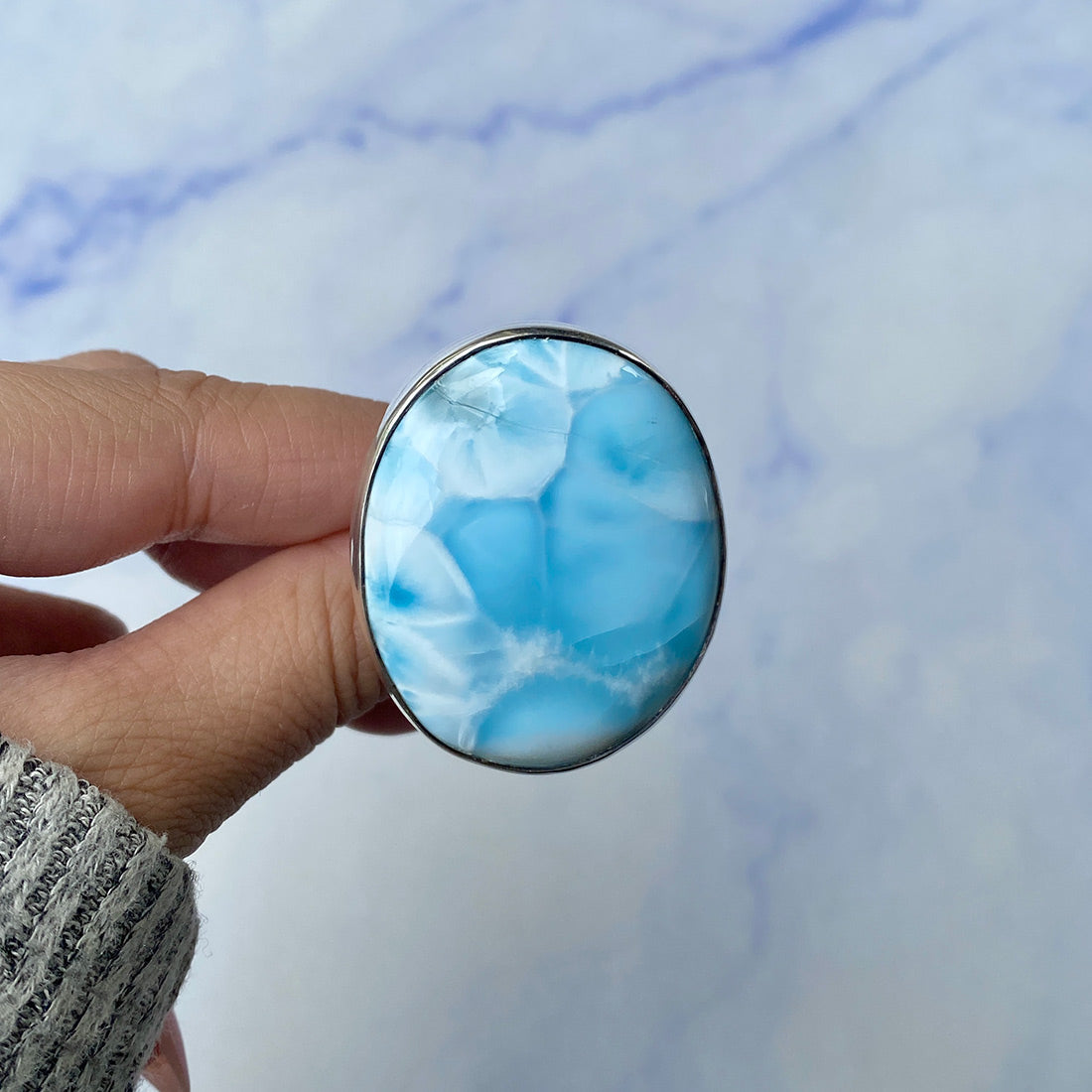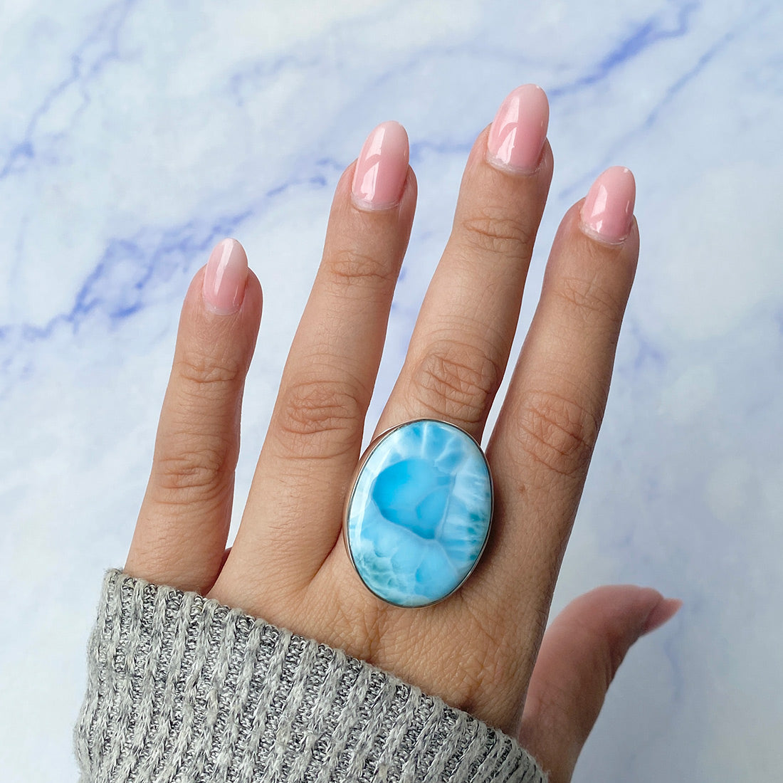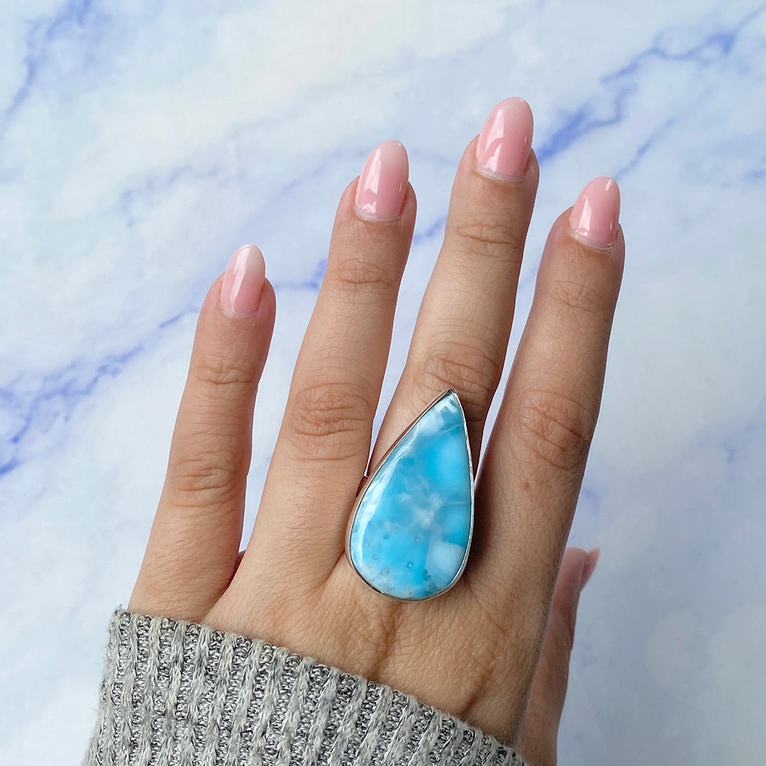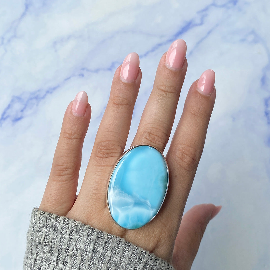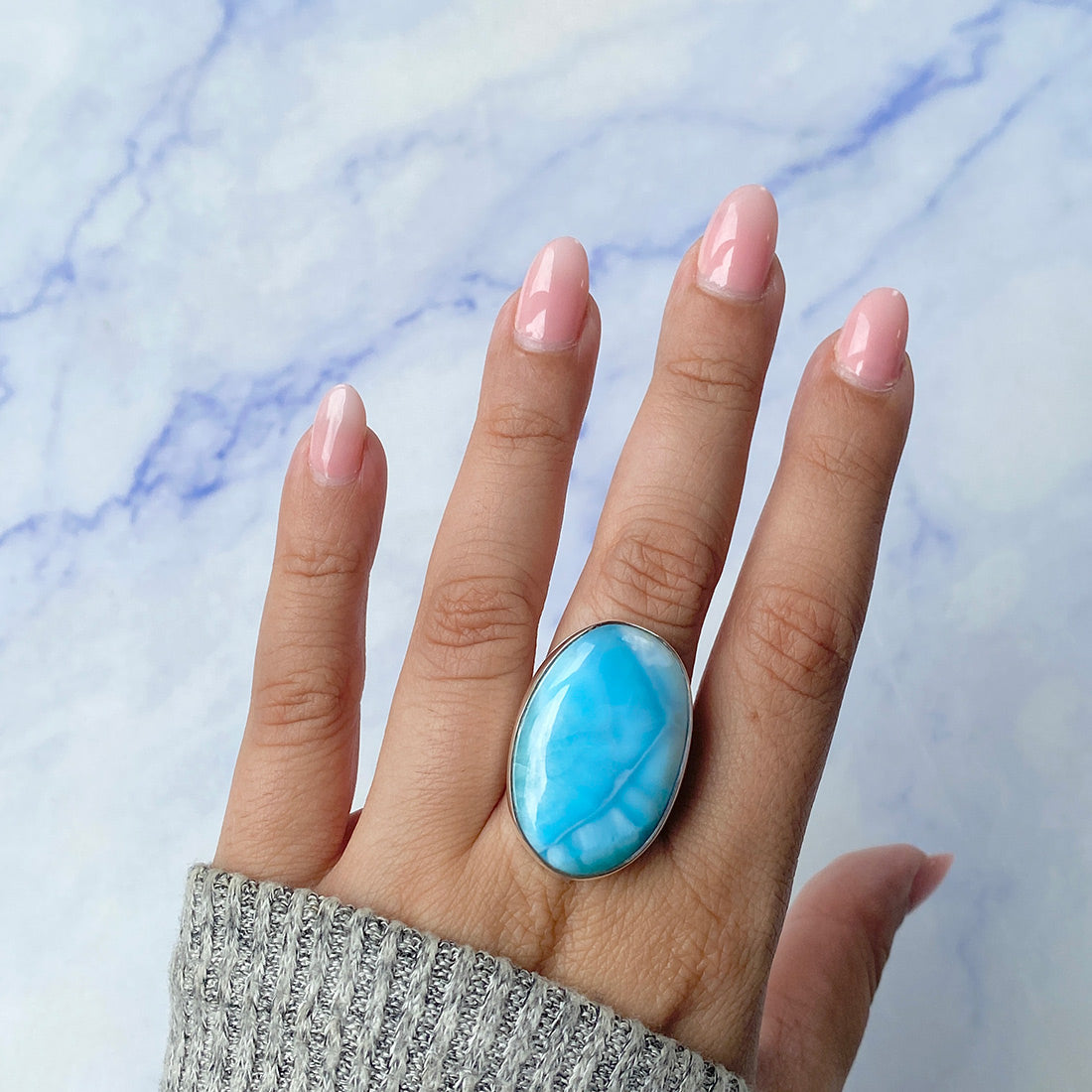 Larimar rings are thought to provide a number of therapeutic benefits. It is claimed to give relaxation and lessen tension and anxiety in the wearer by having a calming and soothing impact. Larimar's stunning blue hue is frequently connected to the sky and the ocean, fostering calm and peace. Some people think that wearing Larimar jewelry, such as Larimar bracelets, earrings, Larimar pendants, and necklaces, can aid in calming the mind and promoting inner peace.