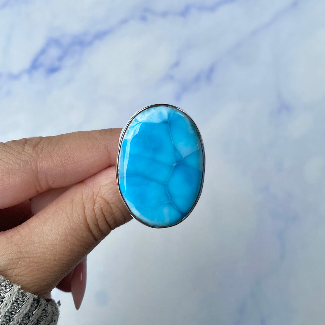 Ocean's Serenity: Sterling Silver Statement Larimar Rings