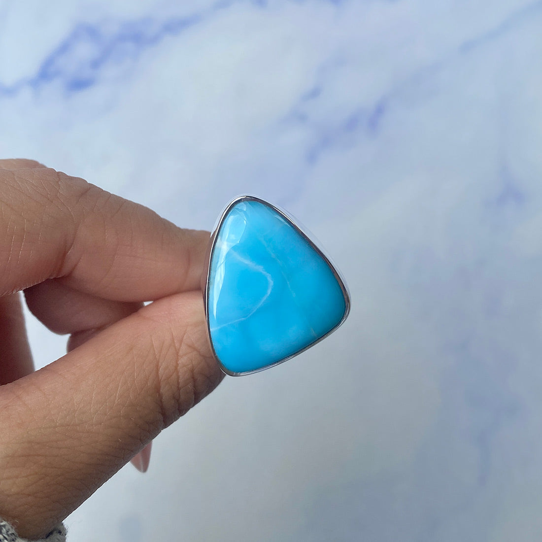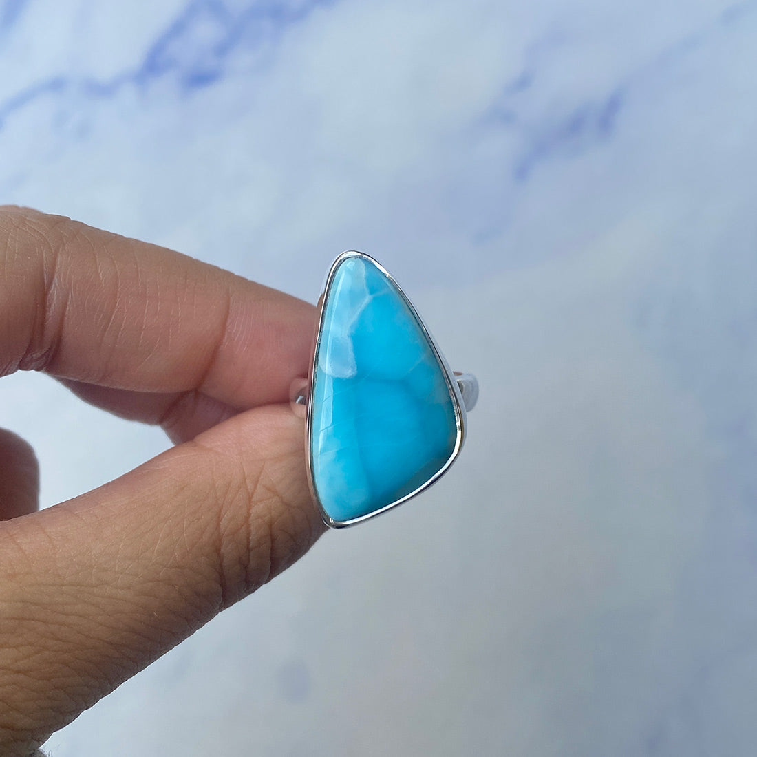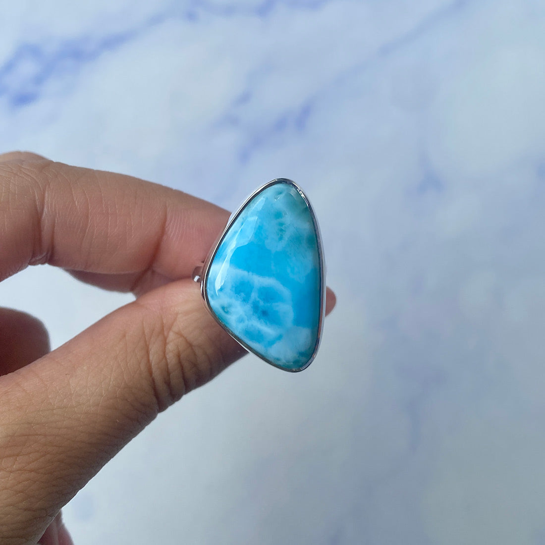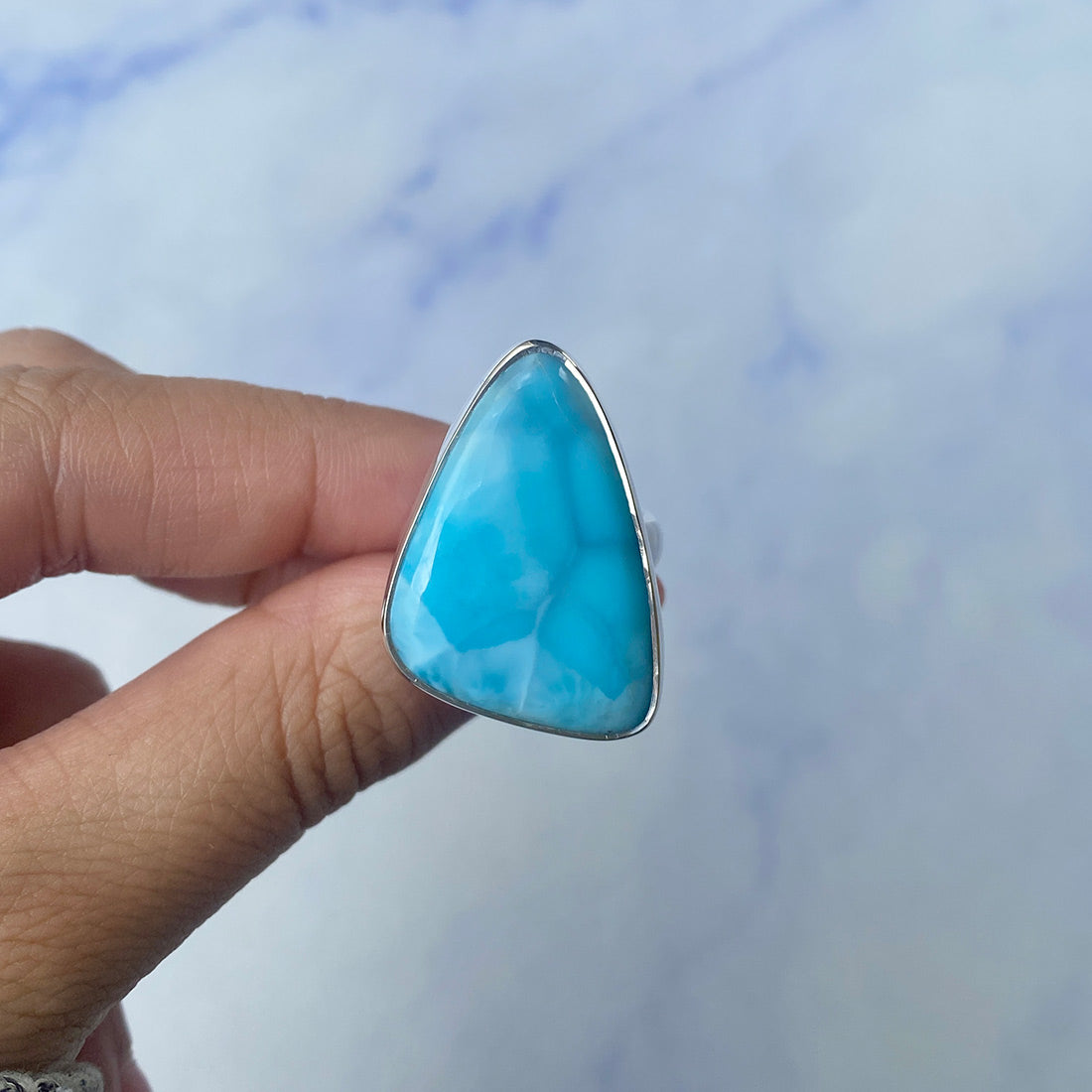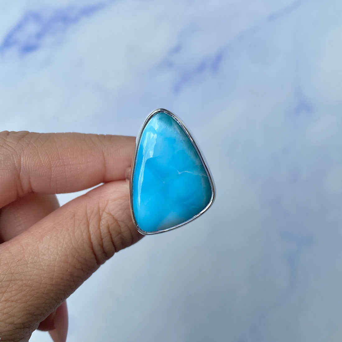 Larimar rings are thought to provide a number of therapeutic benefits. It is claimed to give relaxation and lessen tension and anxiety in the wearer by having a calming and soothing impact. Larimar's stunning blue hue is frequently connected to the sky and the ocean, fostering calm and peace. Some people think that wearing Larimar jewelry, such as Larimar bracelets, earrings, Larimar pendants, and necklaces, can aid in calming the mind and promoting inner peace.