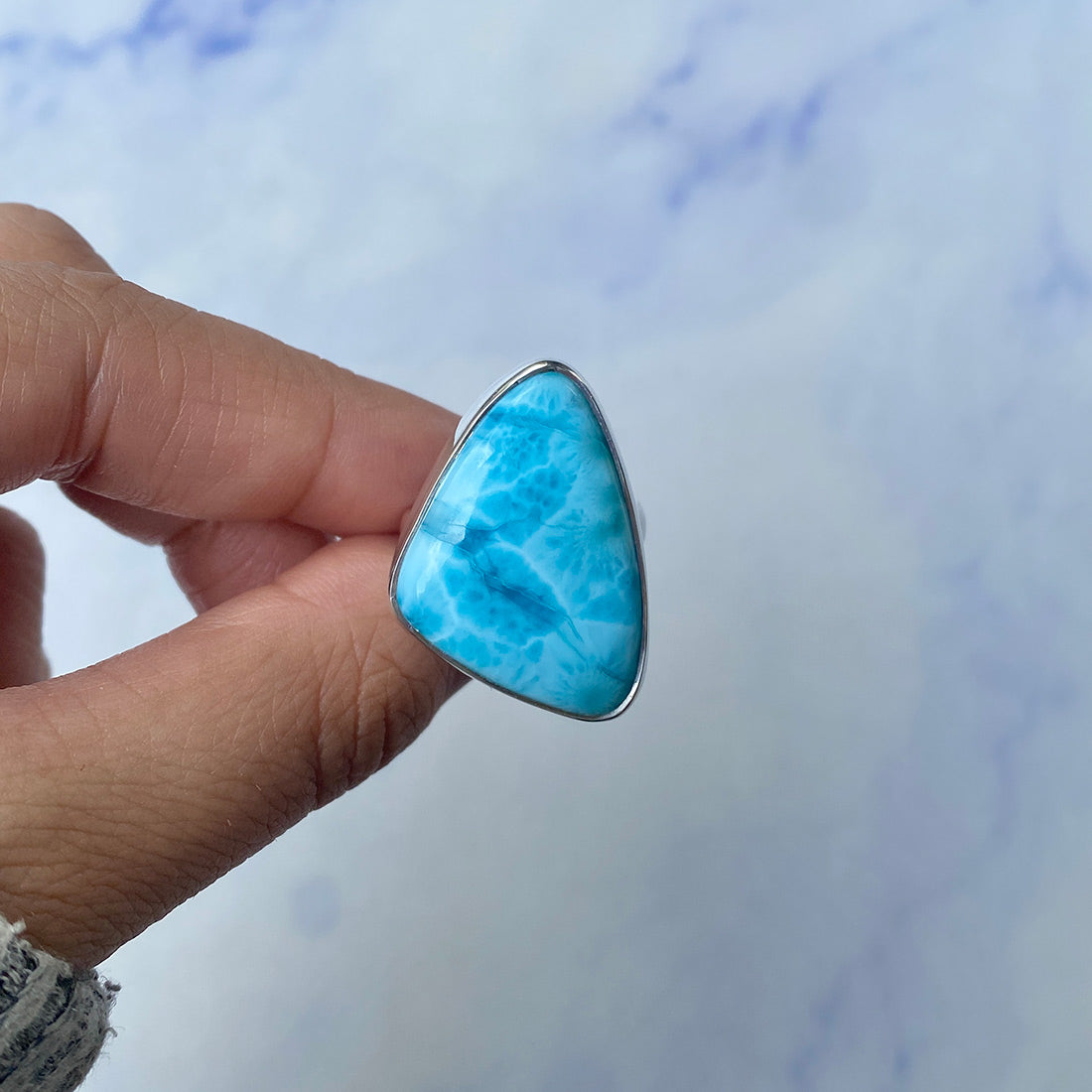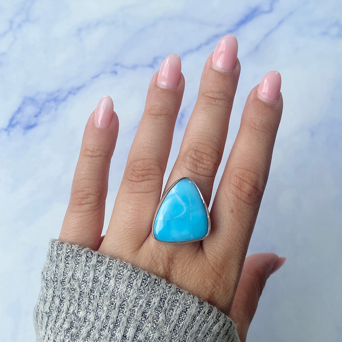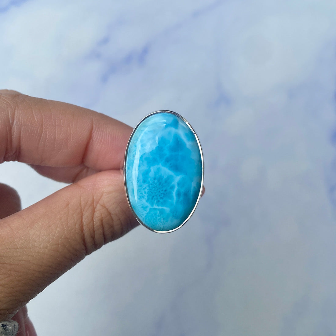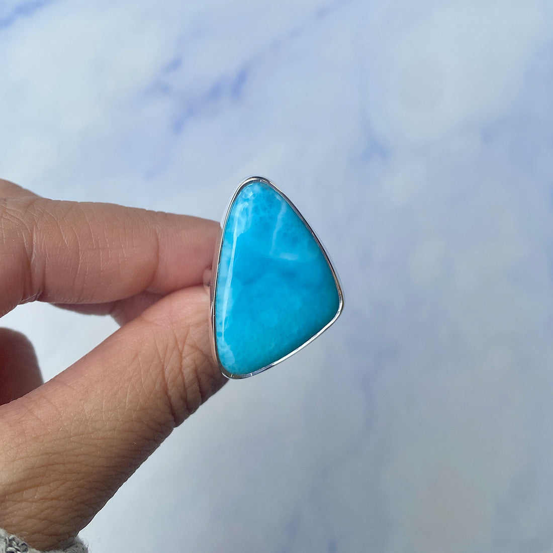 Larimar rings are thought to provide a number of therapeutic benefits. It is claimed to give relaxation and lessen tension and anxiety in the wearer by having a calming and soothing impact. Larimar's stunning blue hue is frequently connected to the sky and the ocean, fostering calm and peace. Some people think that wearing Larimar jewelry, such as Larimar bracelets, earrings, Larimar pendants, and necklaces, can aid in calming the mind and promoting inner peace.