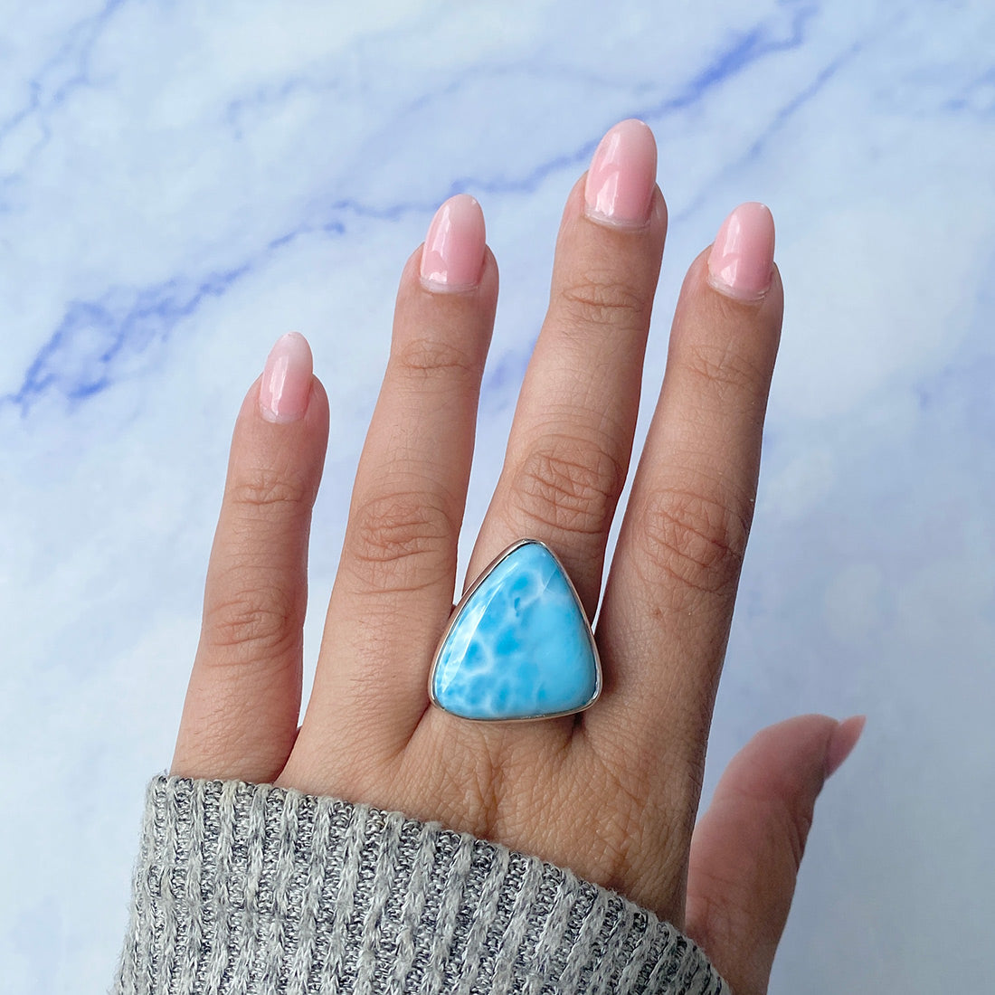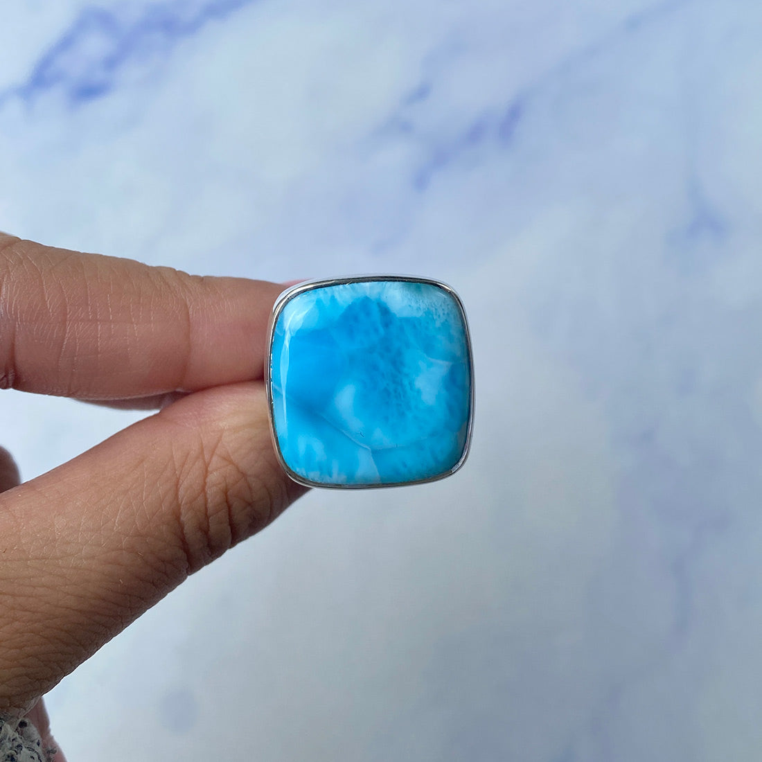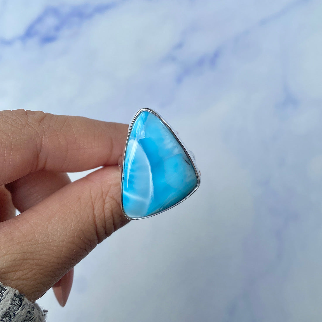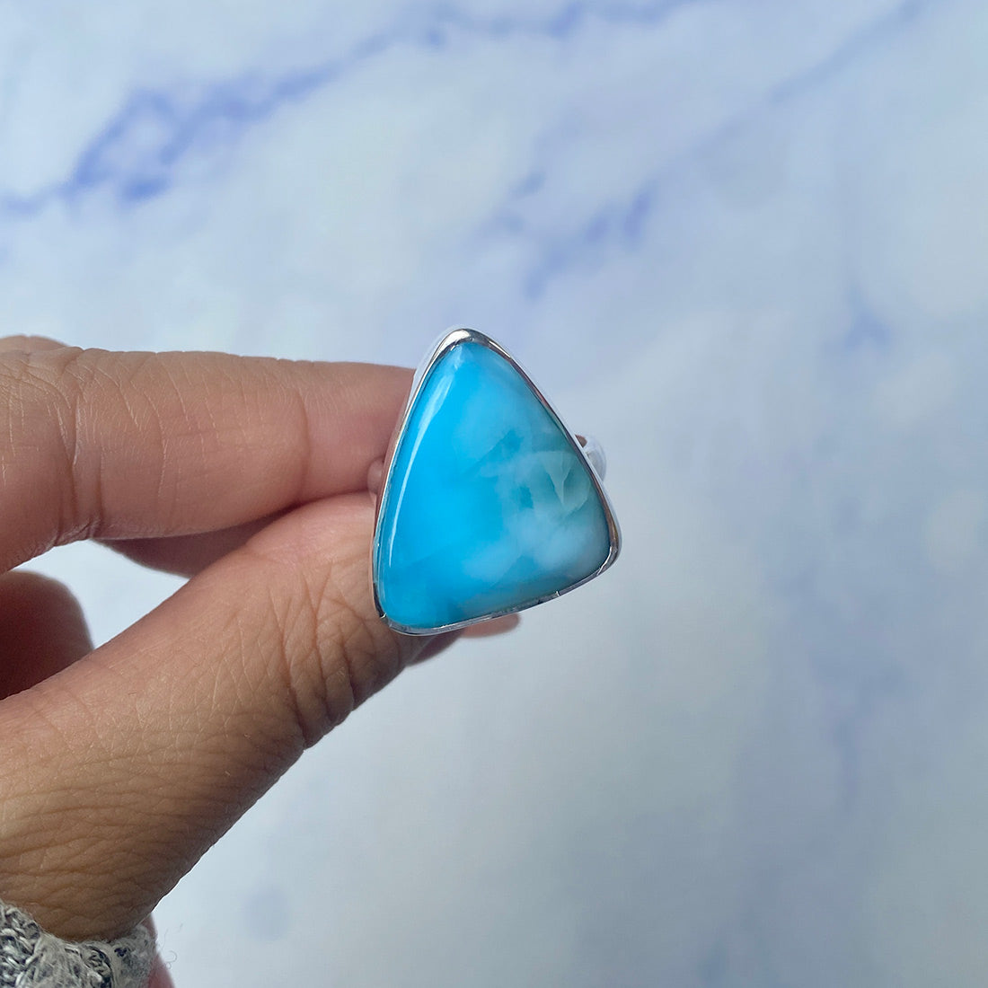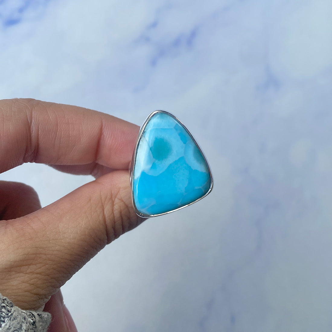 Larimar rings are thought to provide a number of therapeutic benefits. It is claimed to give relaxation and lessen tension and anxiety in the wearer by having a calming and soothing impact. Larimar's stunning blue hue is frequently connected to the sky and the ocean, fostering calm and peace. Some people think that wearing Larimar jewelry, such as Larimar bracelets, earrings, Larimar pendants, and necklaces, can aid in calming the mind and promoting inner peace.
