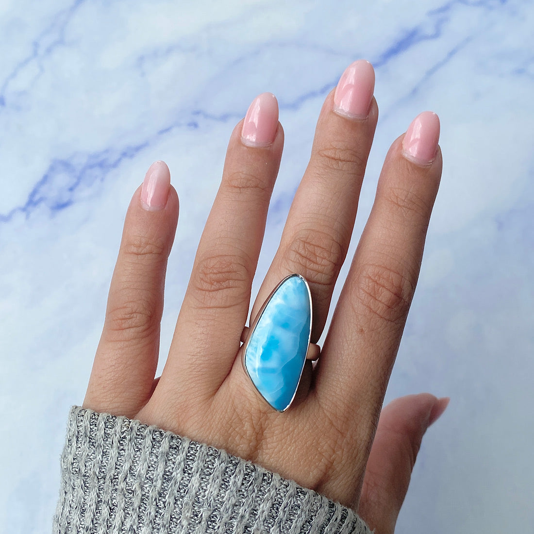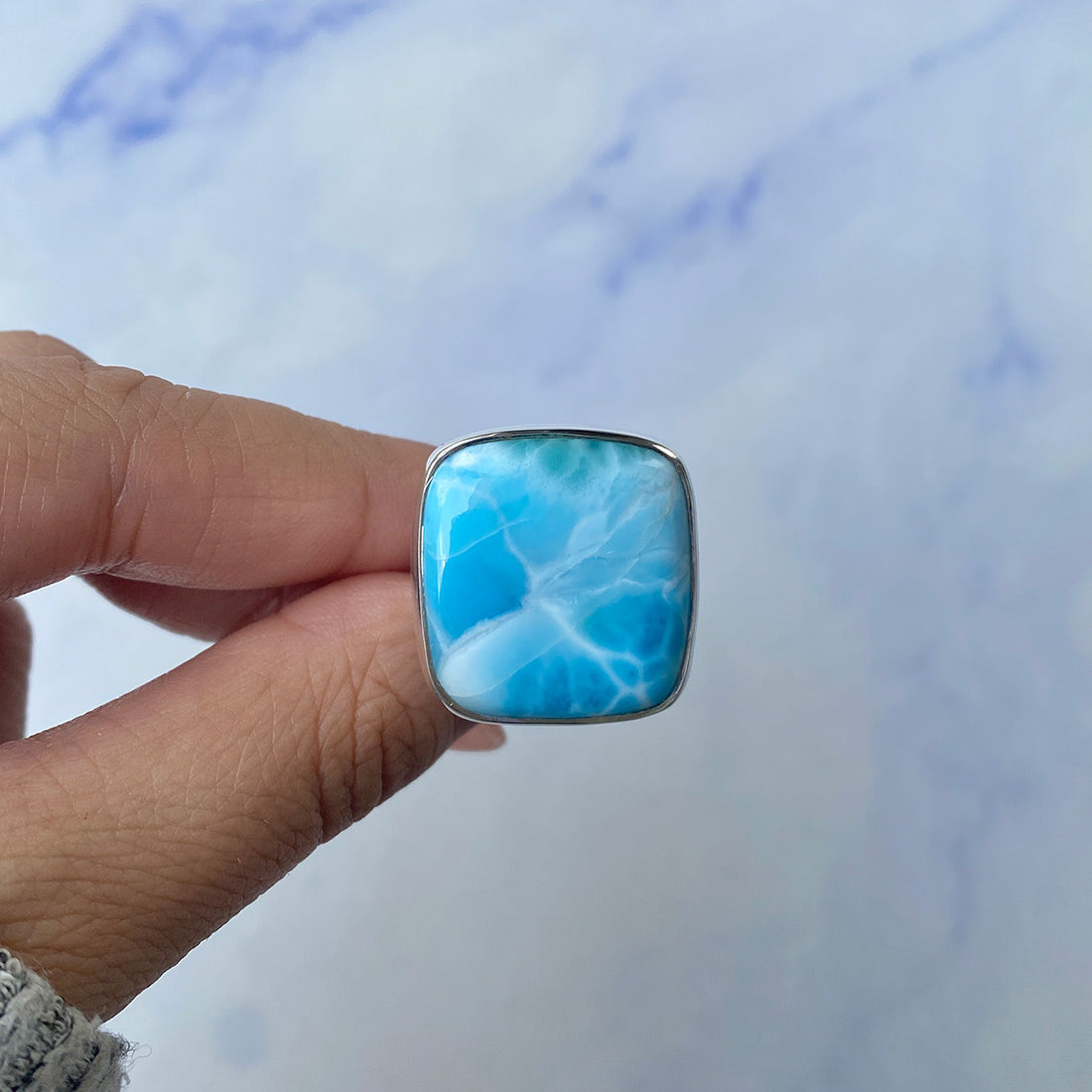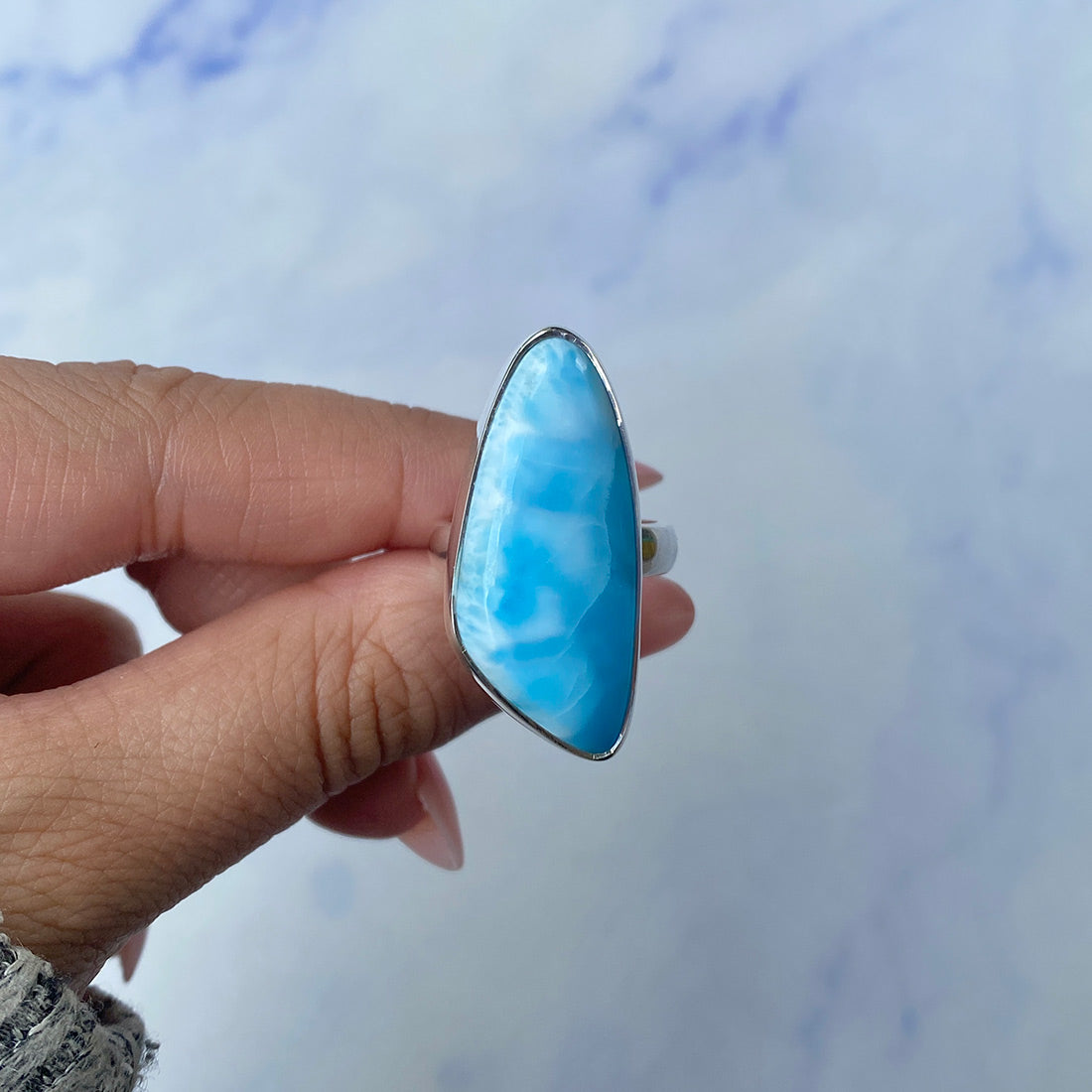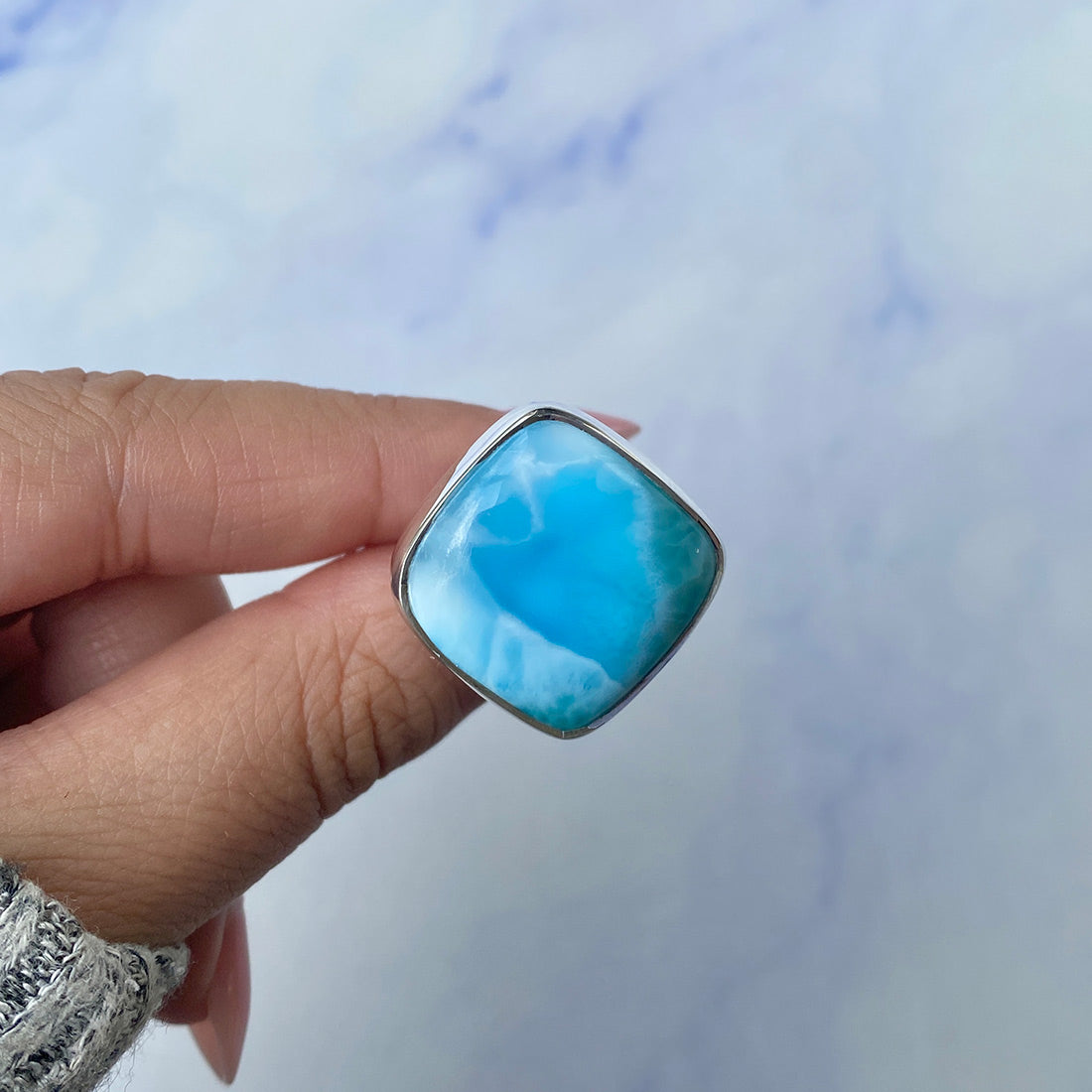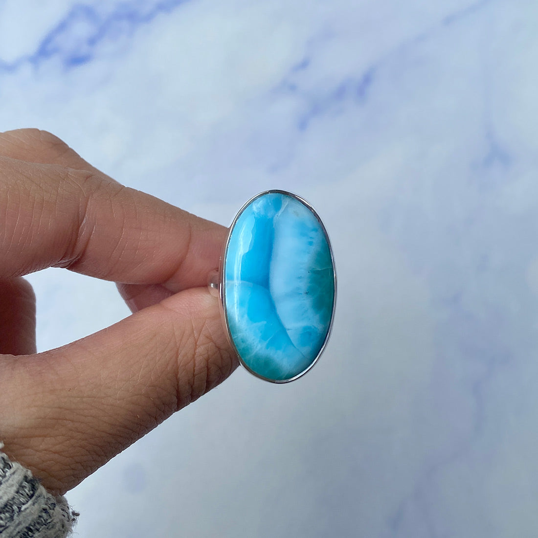 Larimar rings are thought to provide a number of therapeutic benefits. It is claimed to give relaxation and lessen tension and anxiety in the wearer by having a calming and soothing impact. Larimar's stunning blue hue is frequently connected to the sky and the ocean, fostering calm and peace. Some people think that wearing Larimar jewelry, such as Larimar bracelets, earrings, Larimar pendants, and necklaces, can aid in calming the mind and promoting inner peace.
