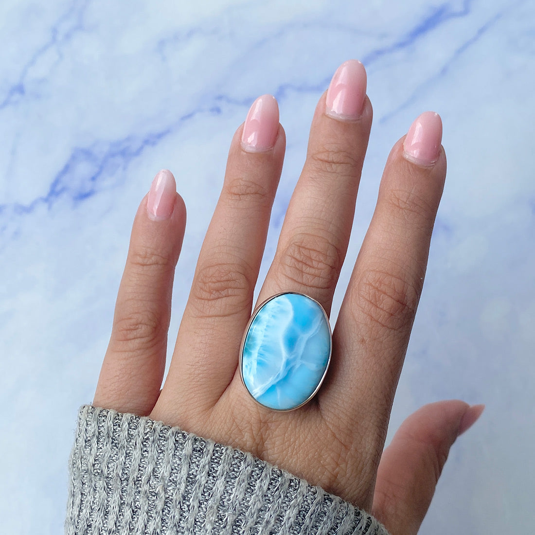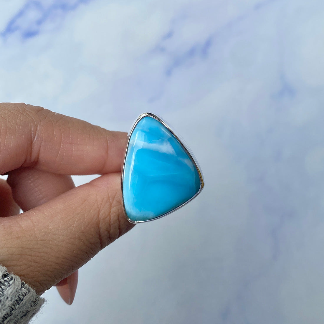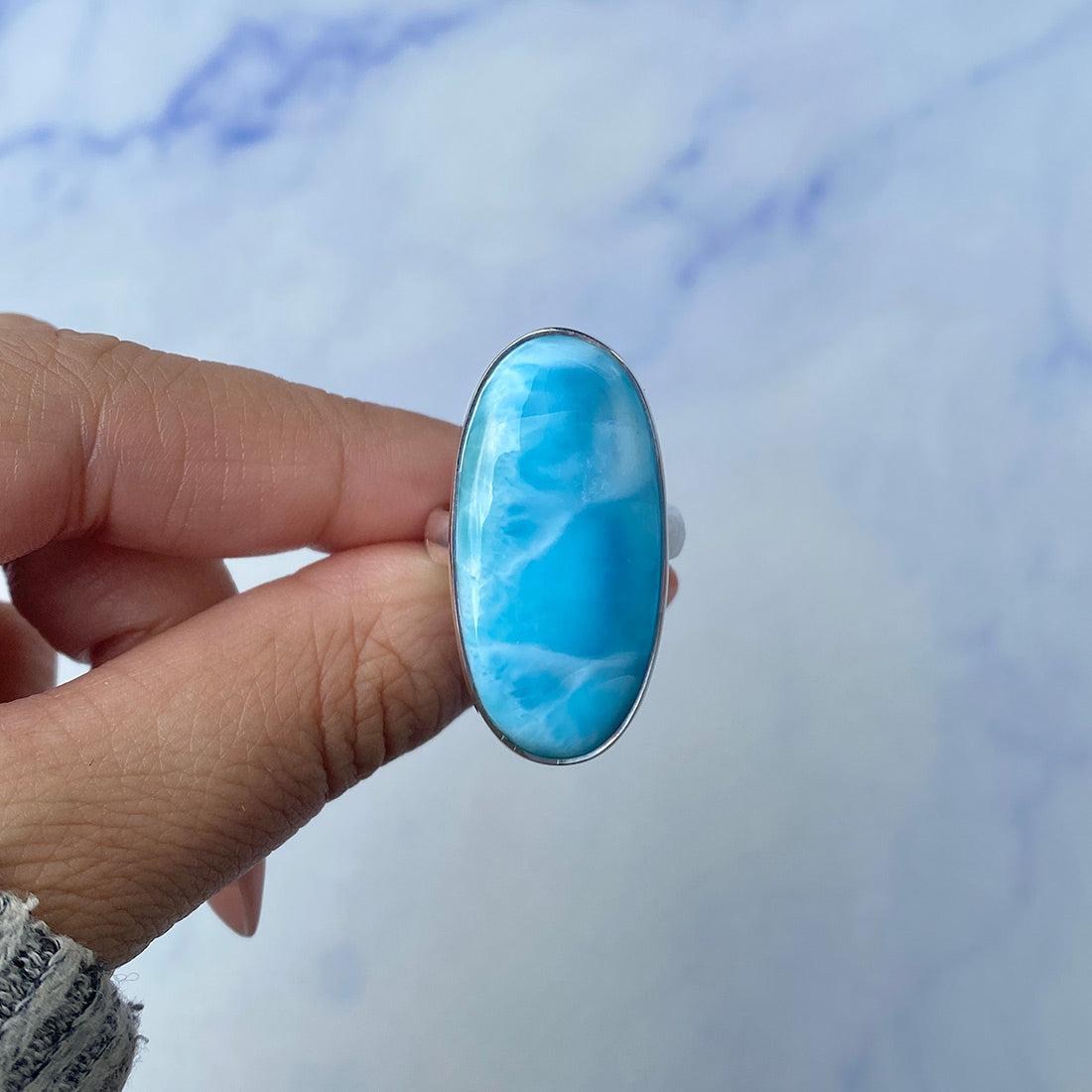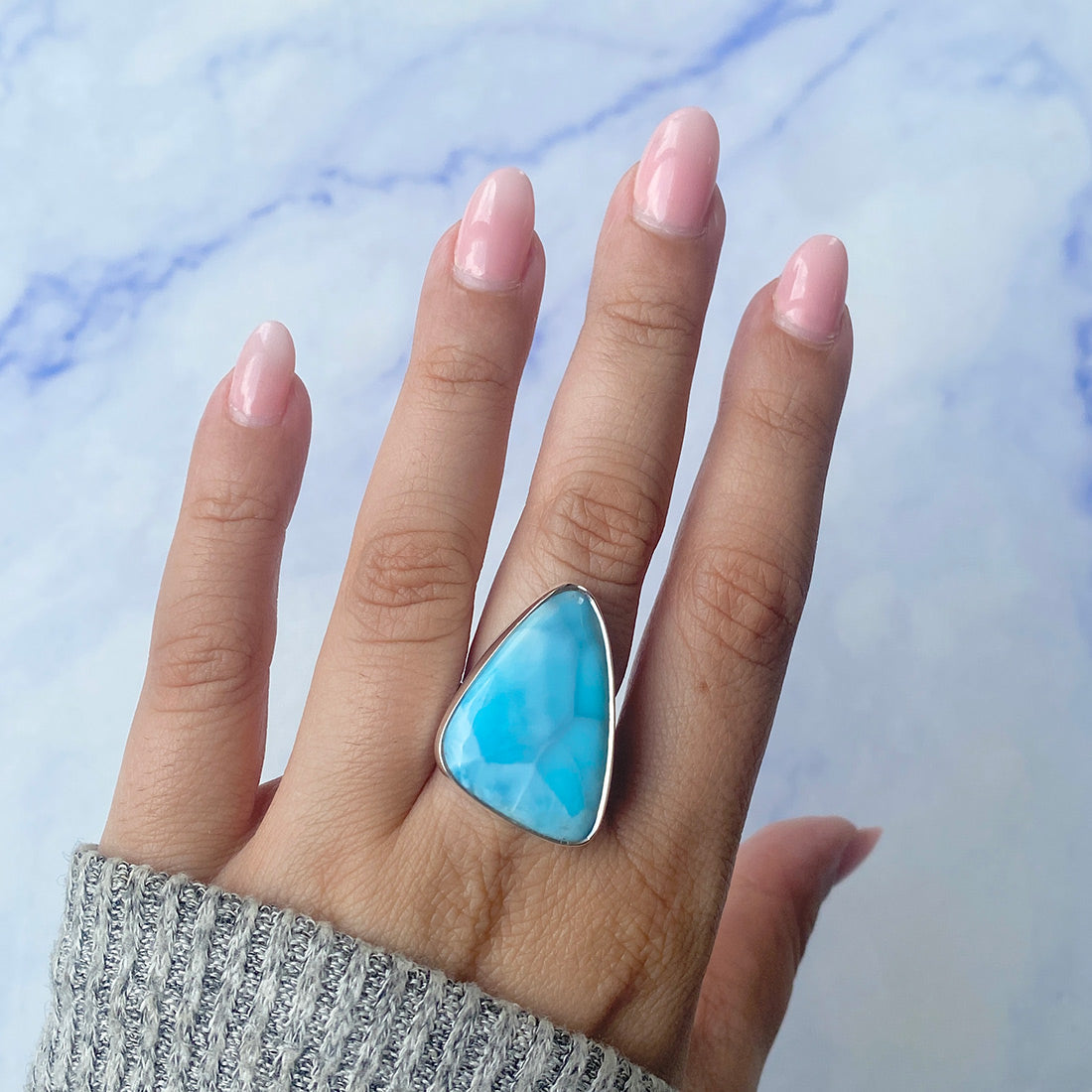 Larimar rings are thought to provide a number of therapeutic benefits. It is claimed to give relaxation and lessen tension and anxiety in the wearer by having a calming and soothing impact. Larimar's stunning blue hue is frequently connected to the sky and the ocean, fostering calm and peace. Some people think that wearing Larimar jewelry, such as Larimar bracelets, earrings, Larimar pendants, and necklaces, can aid in calming the mind and promoting inner peace.