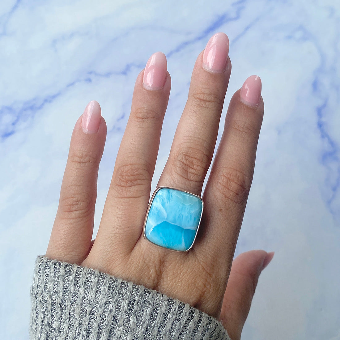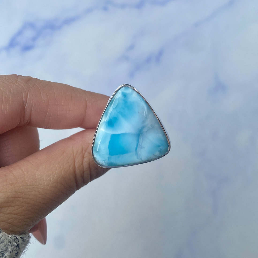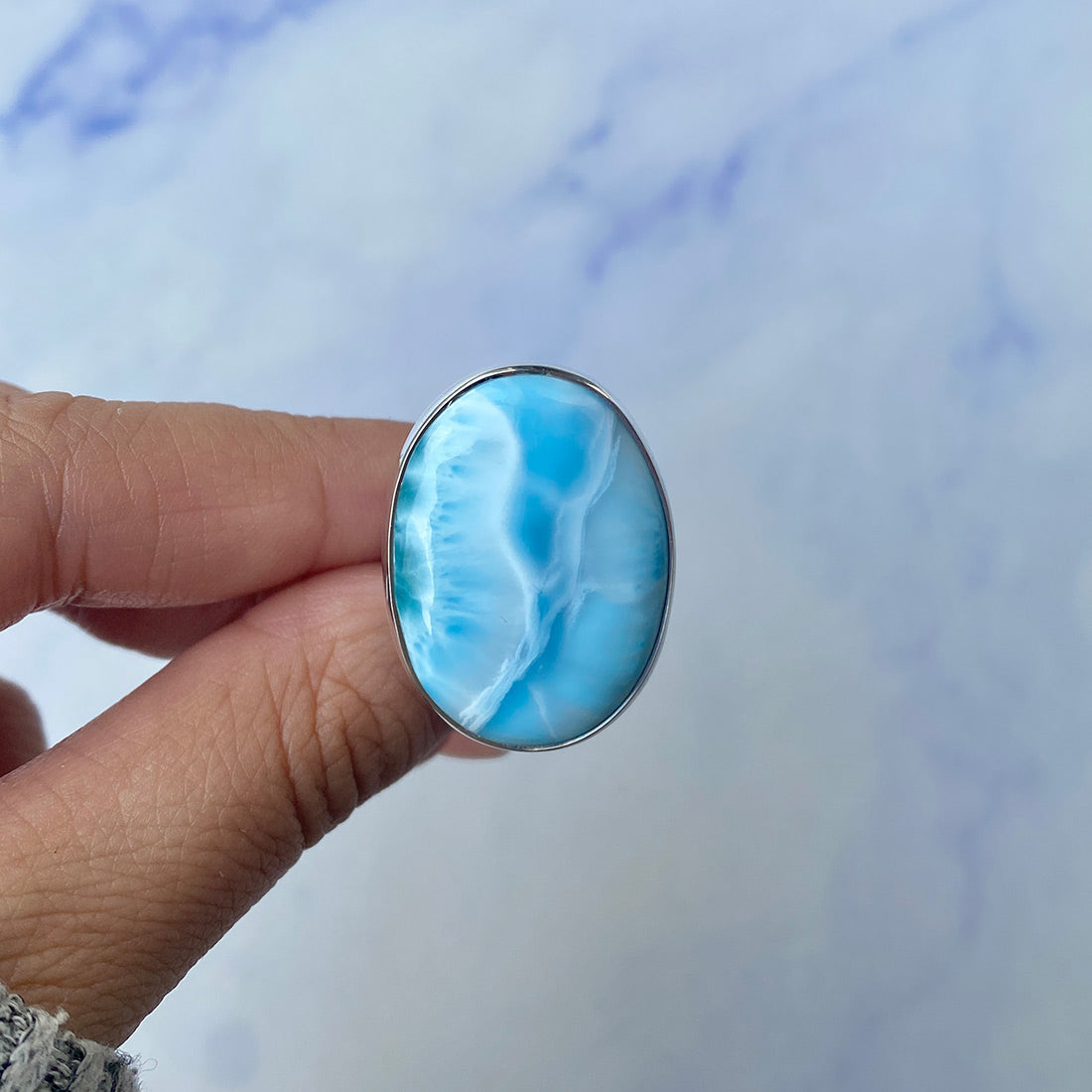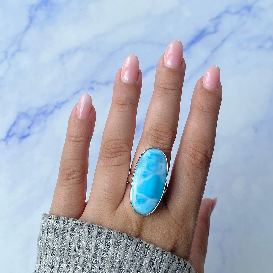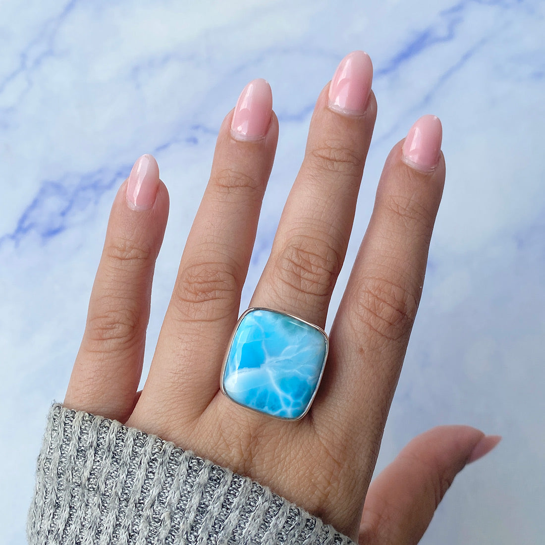 Larimar rings are thought to provide a number of therapeutic benefits. It is claimed to give relaxation and lessen tension and anxiety in the wearer by having a calming and soothing impact. Larimar's stunning blue hue is frequently connected to the sky and the ocean, fostering calm and peace. Some people think that wearing Larimar jewelry, such as Larimar bracelets, earrings, Larimar pendants, and necklaces, can aid in calming the mind and promoting inner peace.