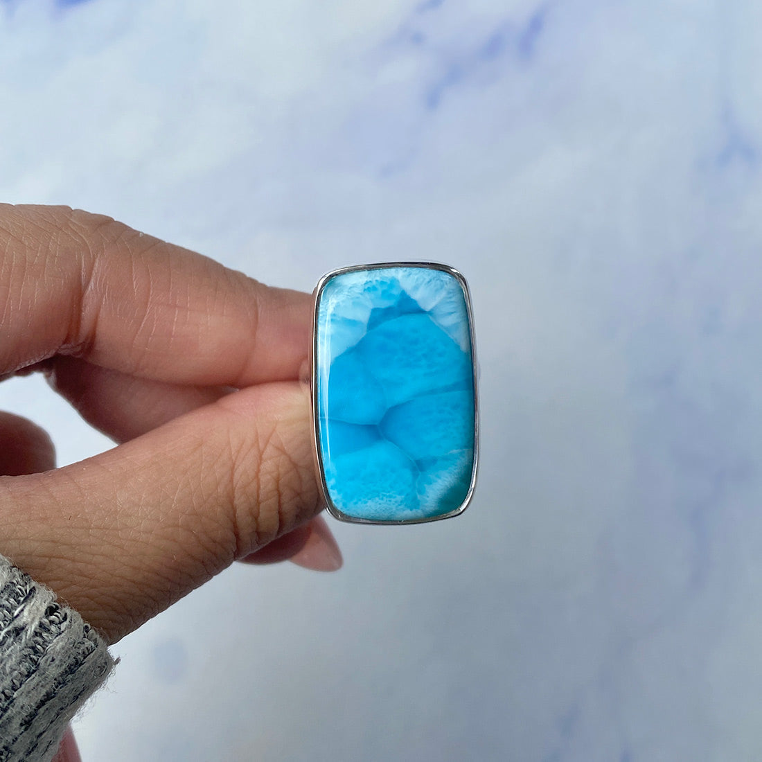 Ocean's Serenity: Sterling Silver Statement Larimar Rings