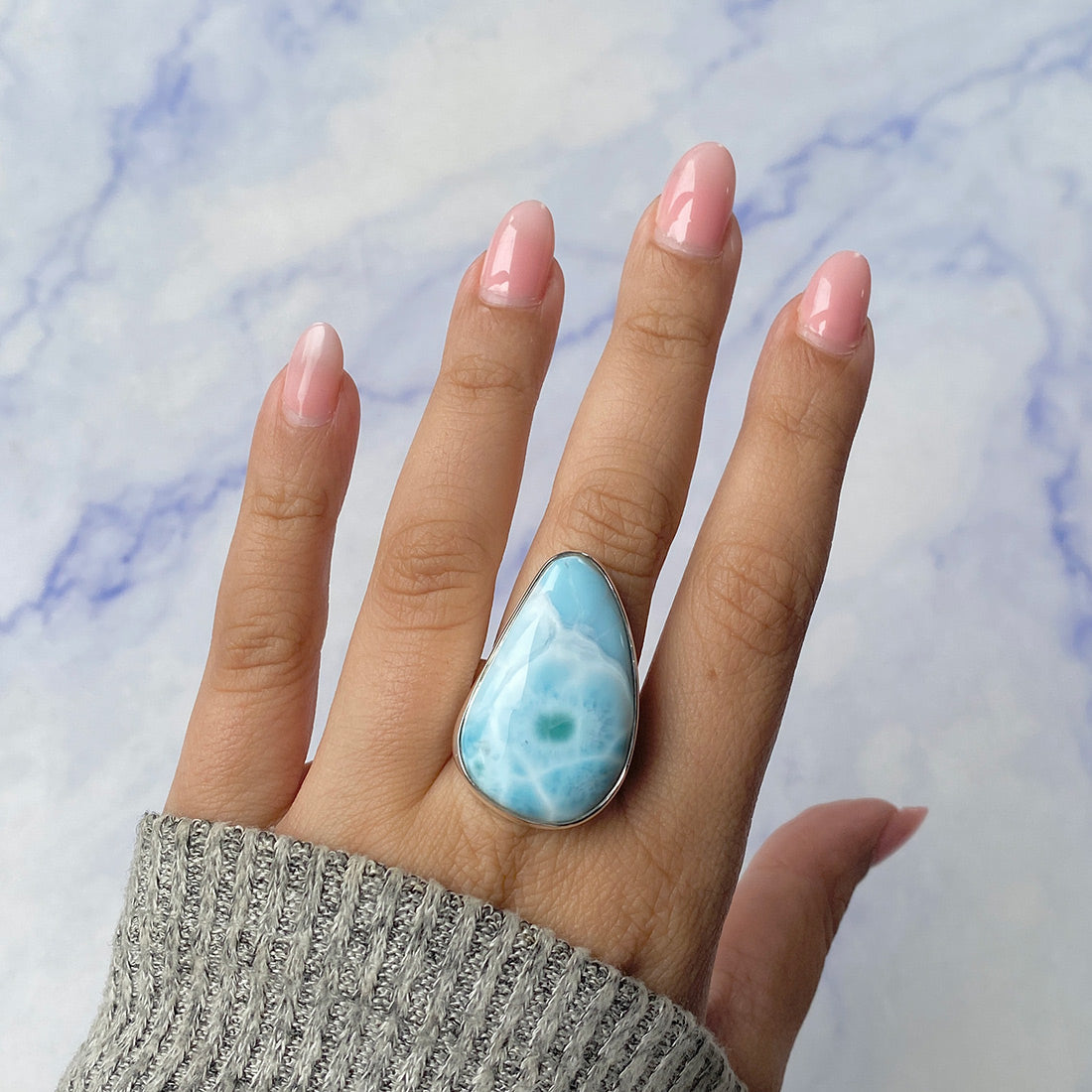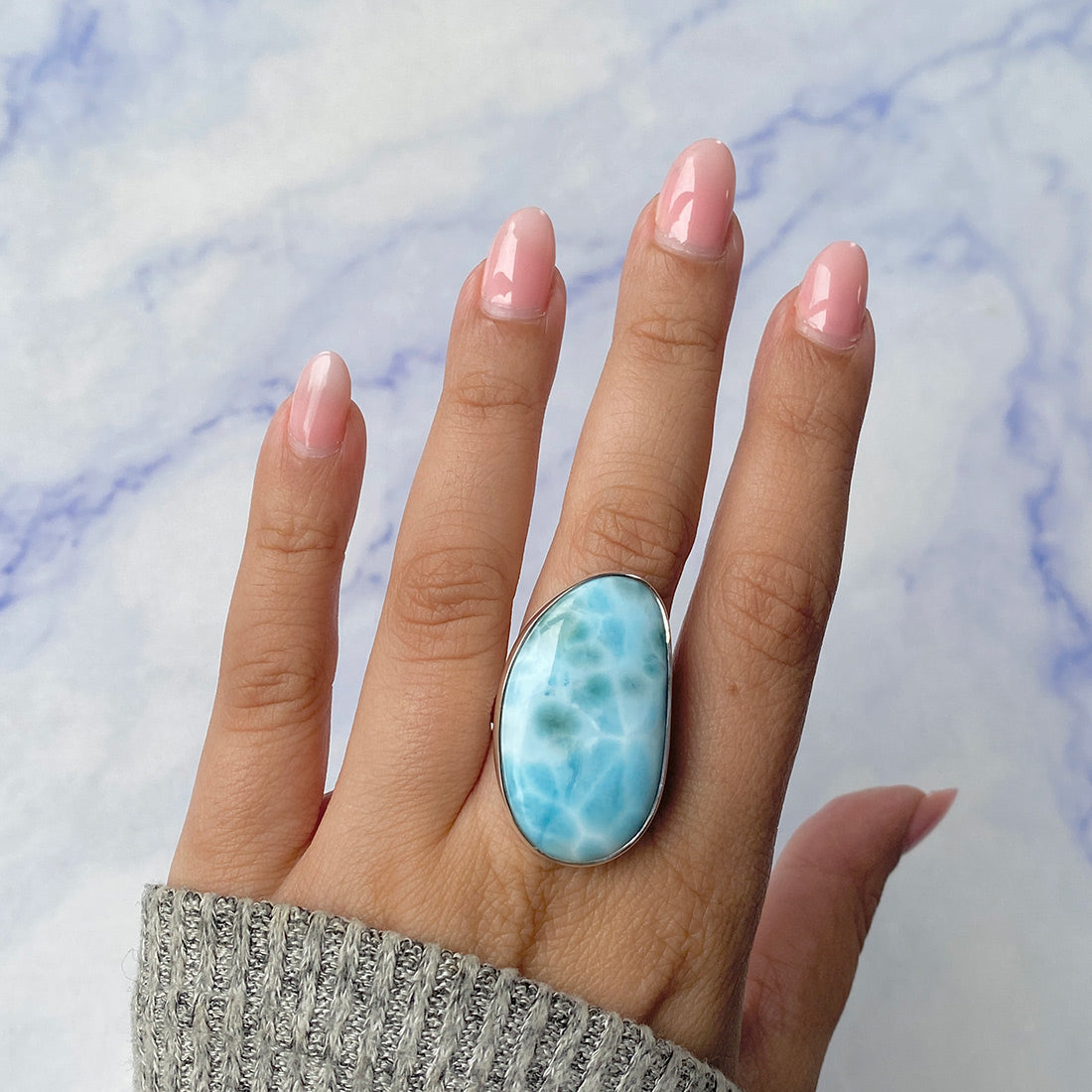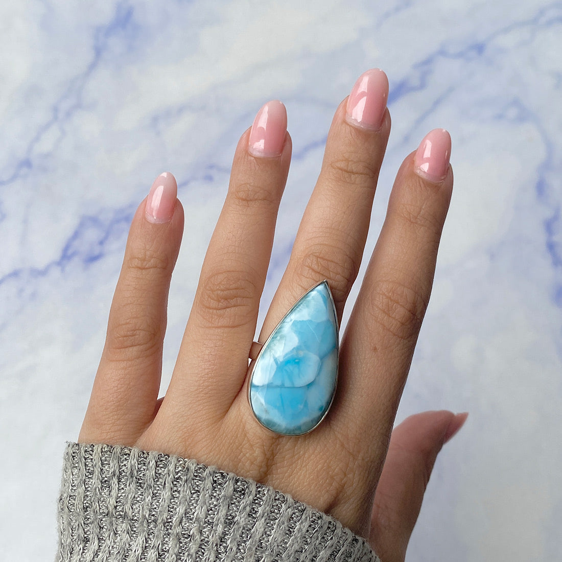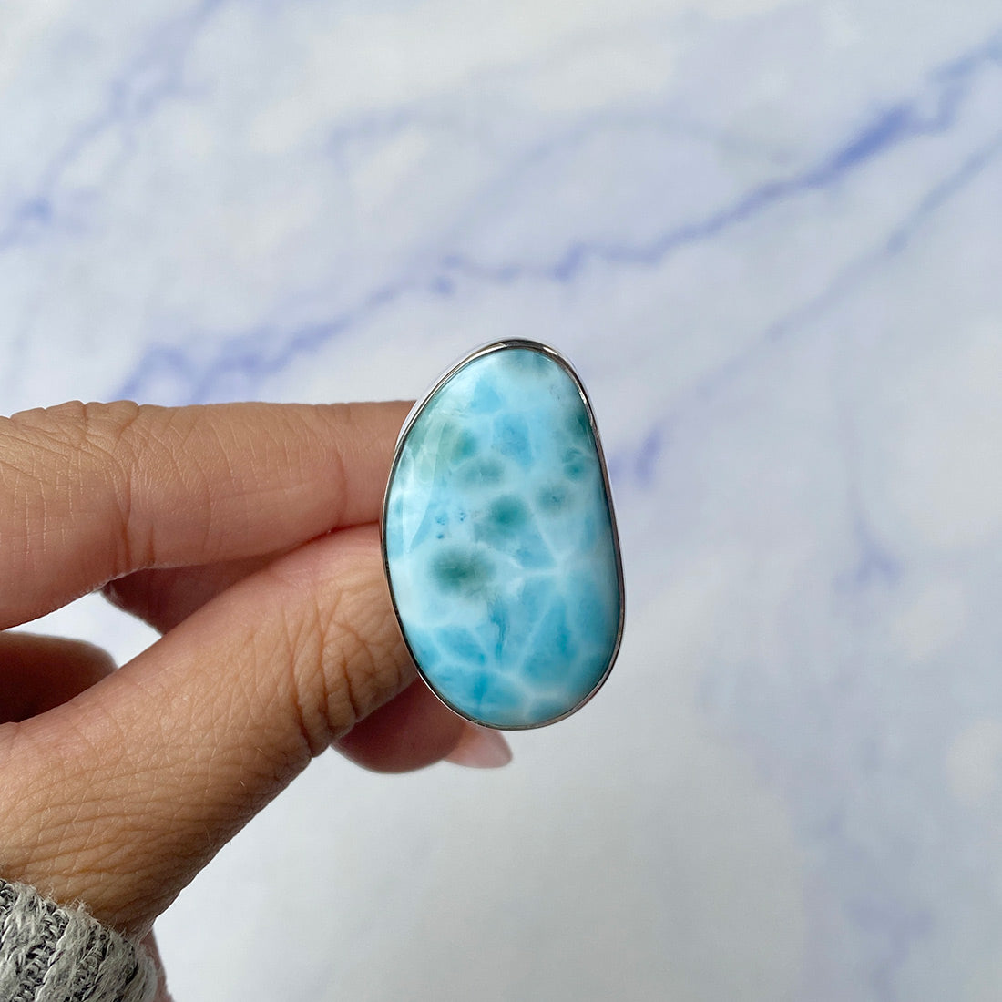 Larimar rings are thought to provide a number of therapeutic benefits. It is claimed to give relaxation and lessen tension and anxiety in the wearer by having a calming and soothing impact. Larimar's stunning blue hue is frequently connected to the sky and the ocean, fostering calm and peace. Some people think that wearing Larimar jewelry, such as Larimar bracelets, earrings, Larimar pendants, and necklaces, can aid in calming the mind and promoting inner peace.