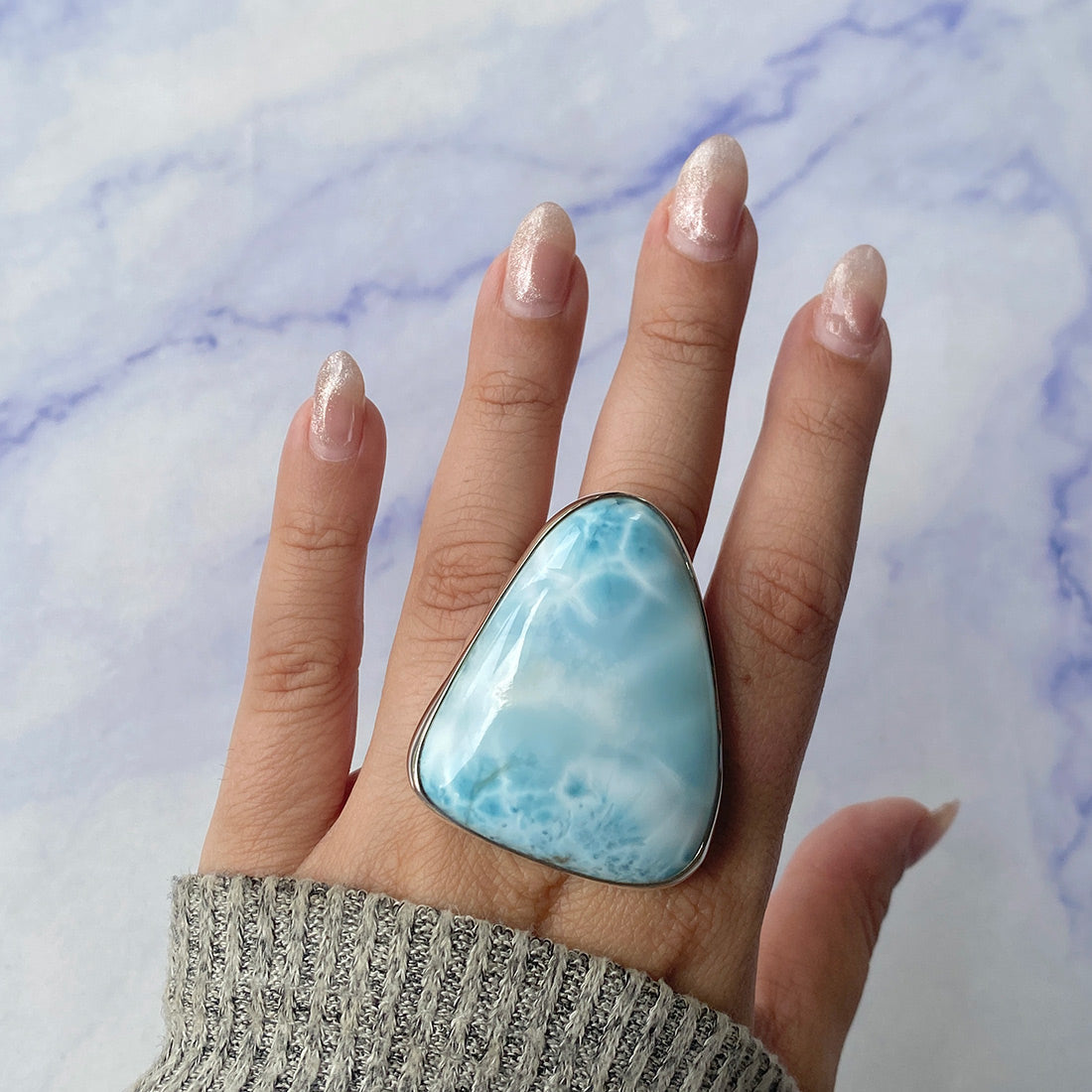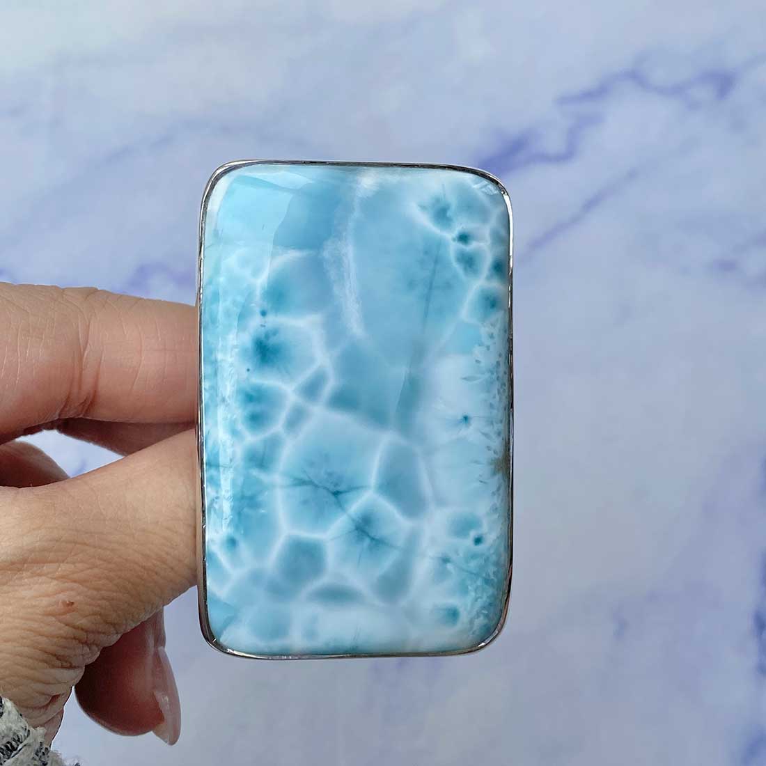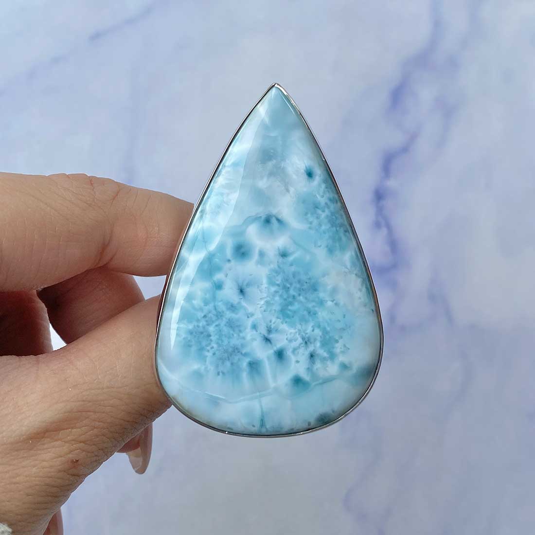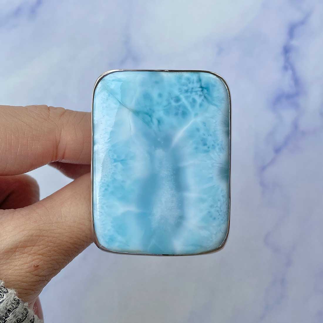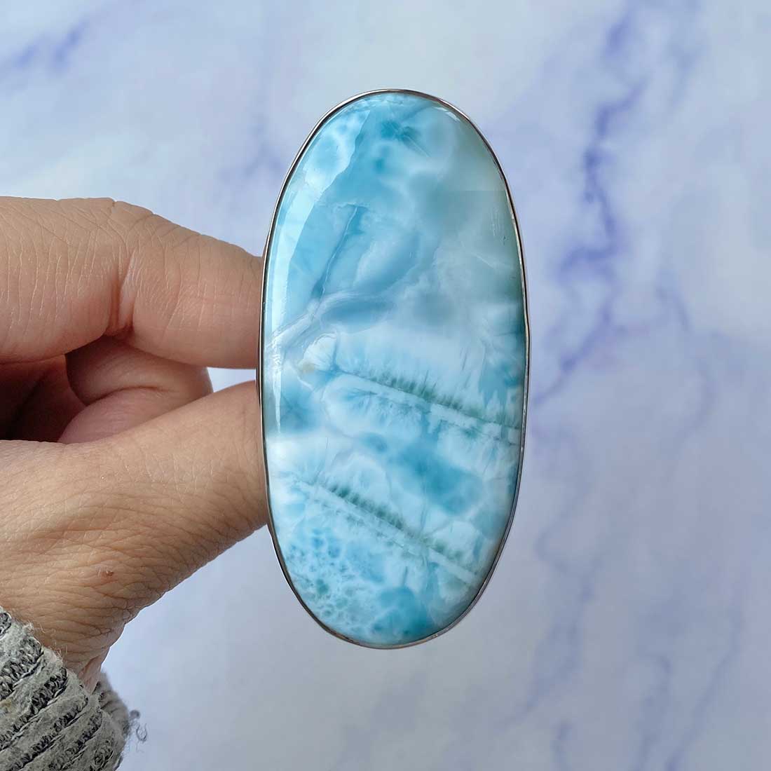 Larimar rings are thought to provide a number of therapeutic benefits. It is claimed to give relaxation and lessen tension and anxiety in the wearer by having a calming and soothing impact. Larimar's stunning blue hue is frequently connected to the sky and the ocean, fostering calm and peace. Some people think that wearing Larimar jewelry, such as Larimar bracelets, earrings, Larimar pendants, and necklaces, can aid in calming the mind and promoting inner peace.
