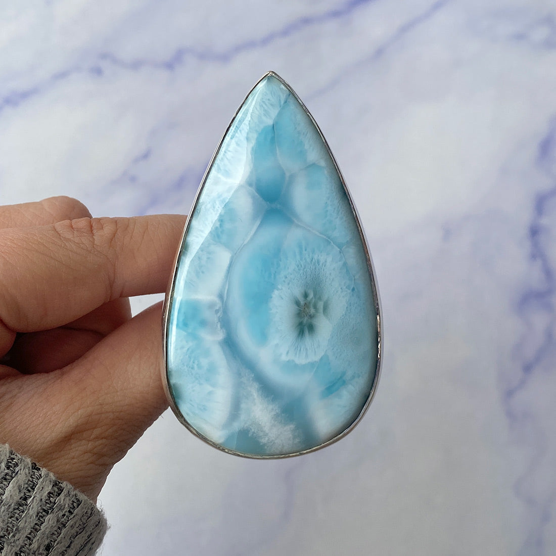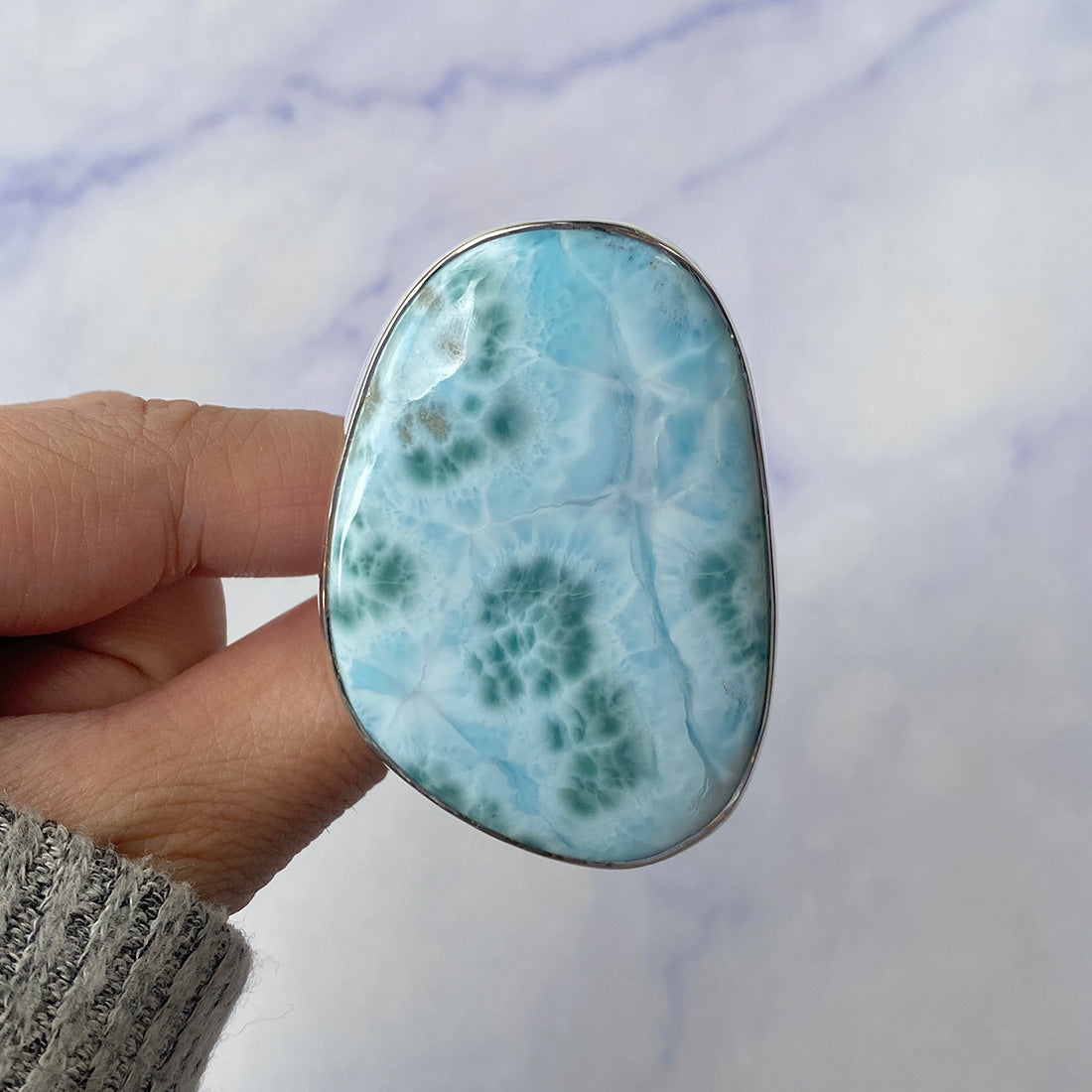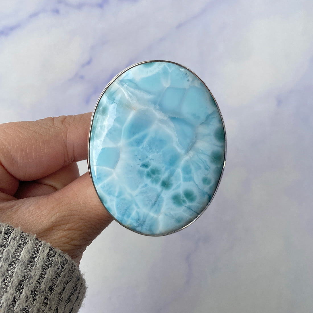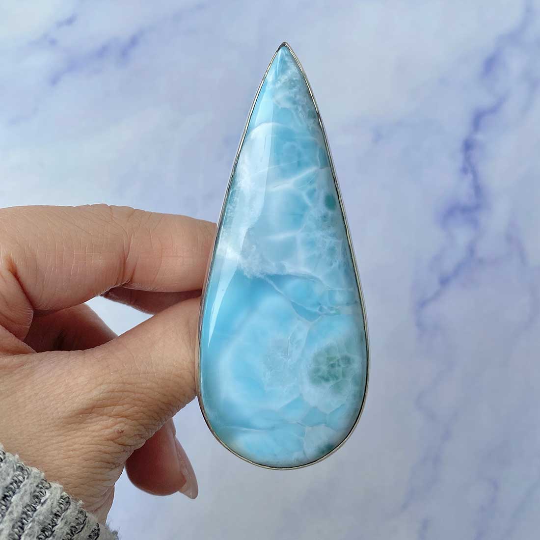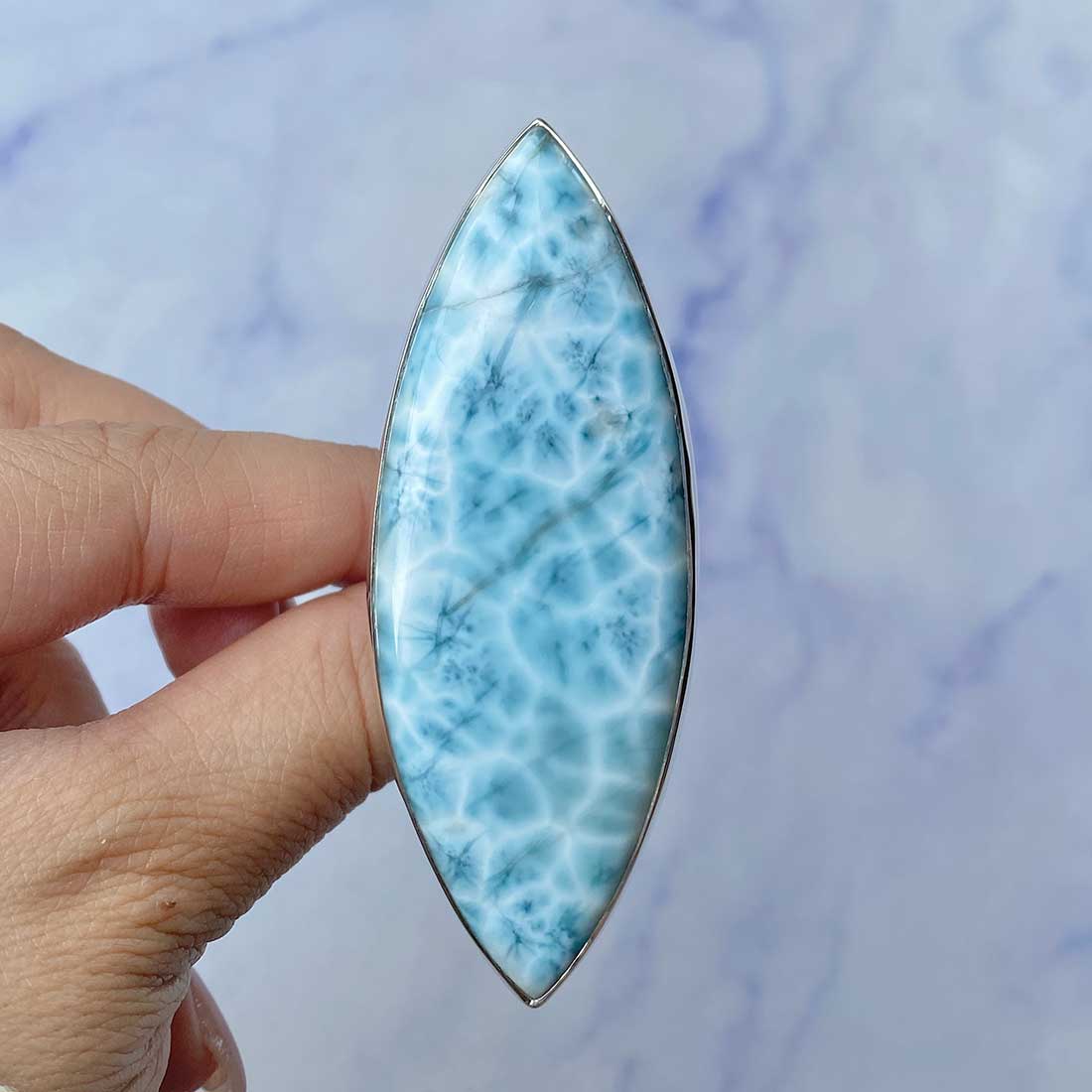 Larimar rings are thought to provide a number of therapeutic benefits. It is claimed to give relaxation and lessen tension and anxiety in the wearer by having a calming and soothing impact. Larimar's stunning blue hue is frequently connected to the sky and the ocean, fostering calm and peace. Some people think that wearing Larimar jewelry, such as Larimar bracelets, earrings, Larimar pendants, and necklaces, can aid in calming the mind and promoting inner peace.